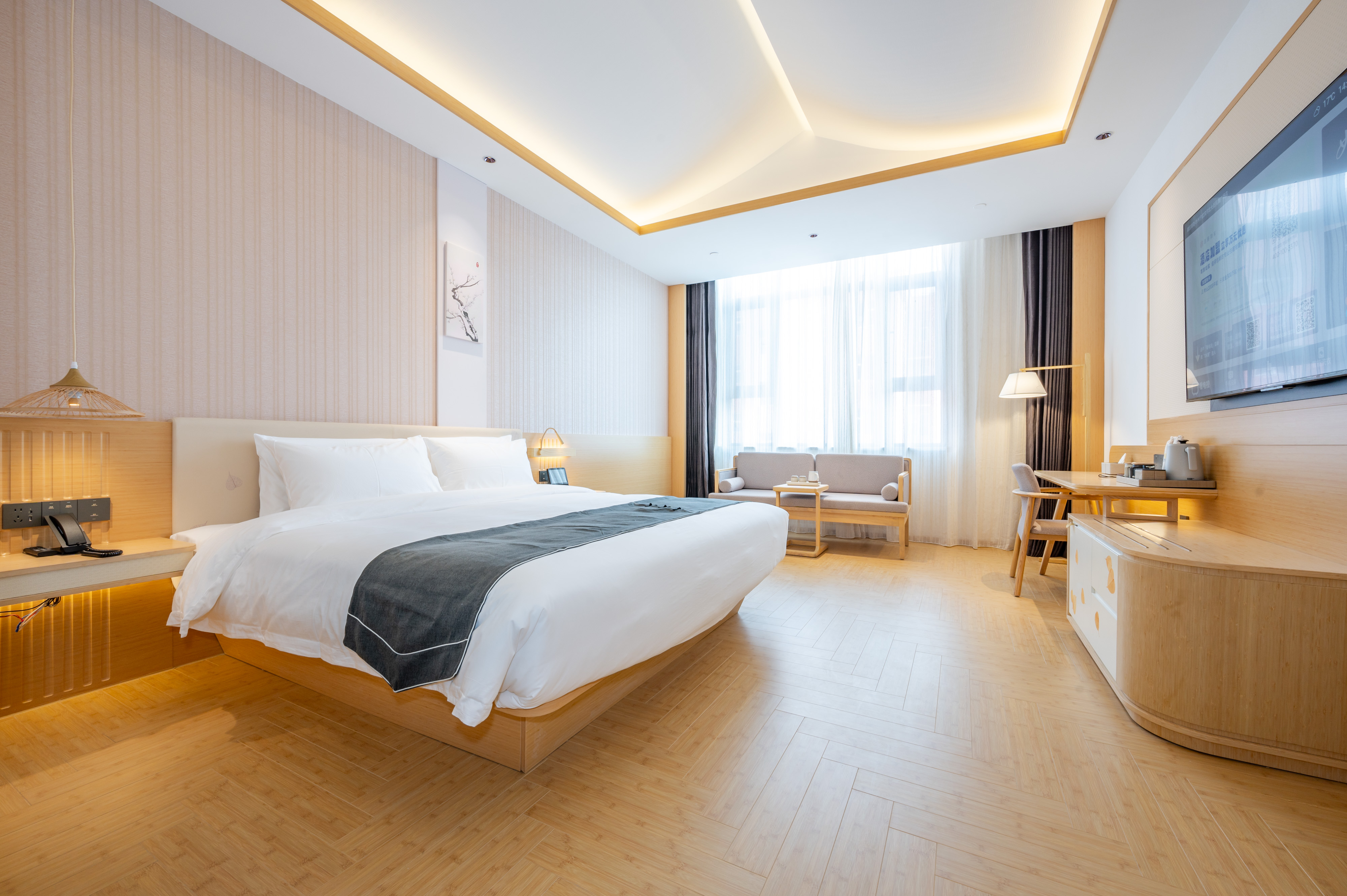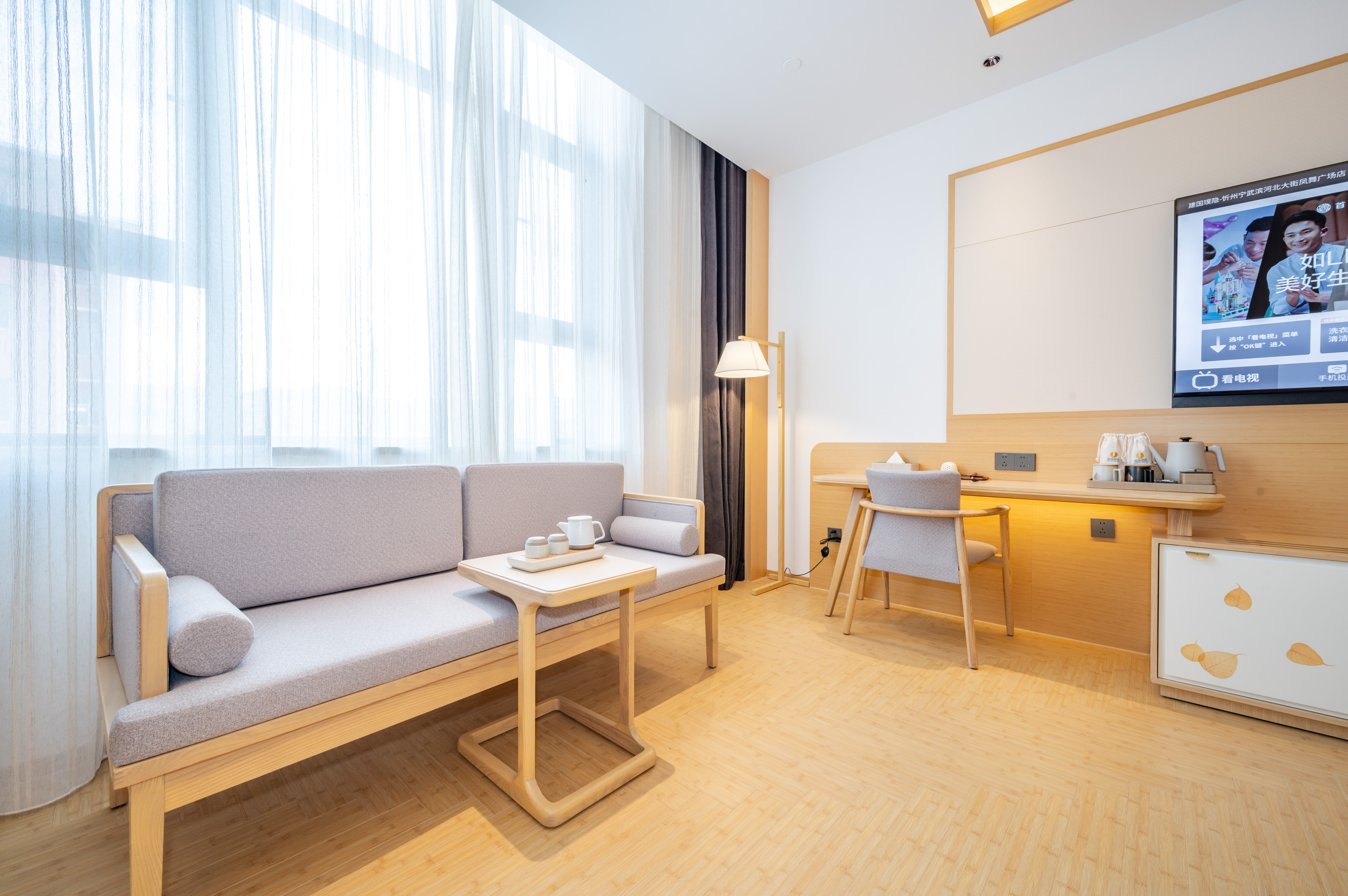 建国璞隐宁武滨河北大街凤舞广场店坐落于忻州市宁武县刘家园村,配备有健身房、洗衣房、会议室、和大型停车场,并提供精致健康的餐食服务。酒店距离芦芽山风景区、万年冰洞18km,交通便利。酒店以中国文化为基础与中式禅意相结合,打造一片在城市中回归自然,宁静祥和的城市隐逸空间,璞隐的建造以自然环保材料为主,主色温润如玉,房间整洁明亮,为您的旅途提供一个舒适、安逸的住宿环境,品味繁华都市下的一份静谧,在充满惊喜的旅途中,打造“居善地以调养身心”的新体验。建国璞隐忻州宁武滨河北大街凤舞广场店全员热忱欢迎每一位远道而来的朋友。我们将为您于拥挤的城市中开辟一片暂时躲开繁杂调养身心的空间,让您在快节奏的生活中切实体验到“行走间,为自己留白”的惬意。让您的旅行从此变得轻松愉悦!