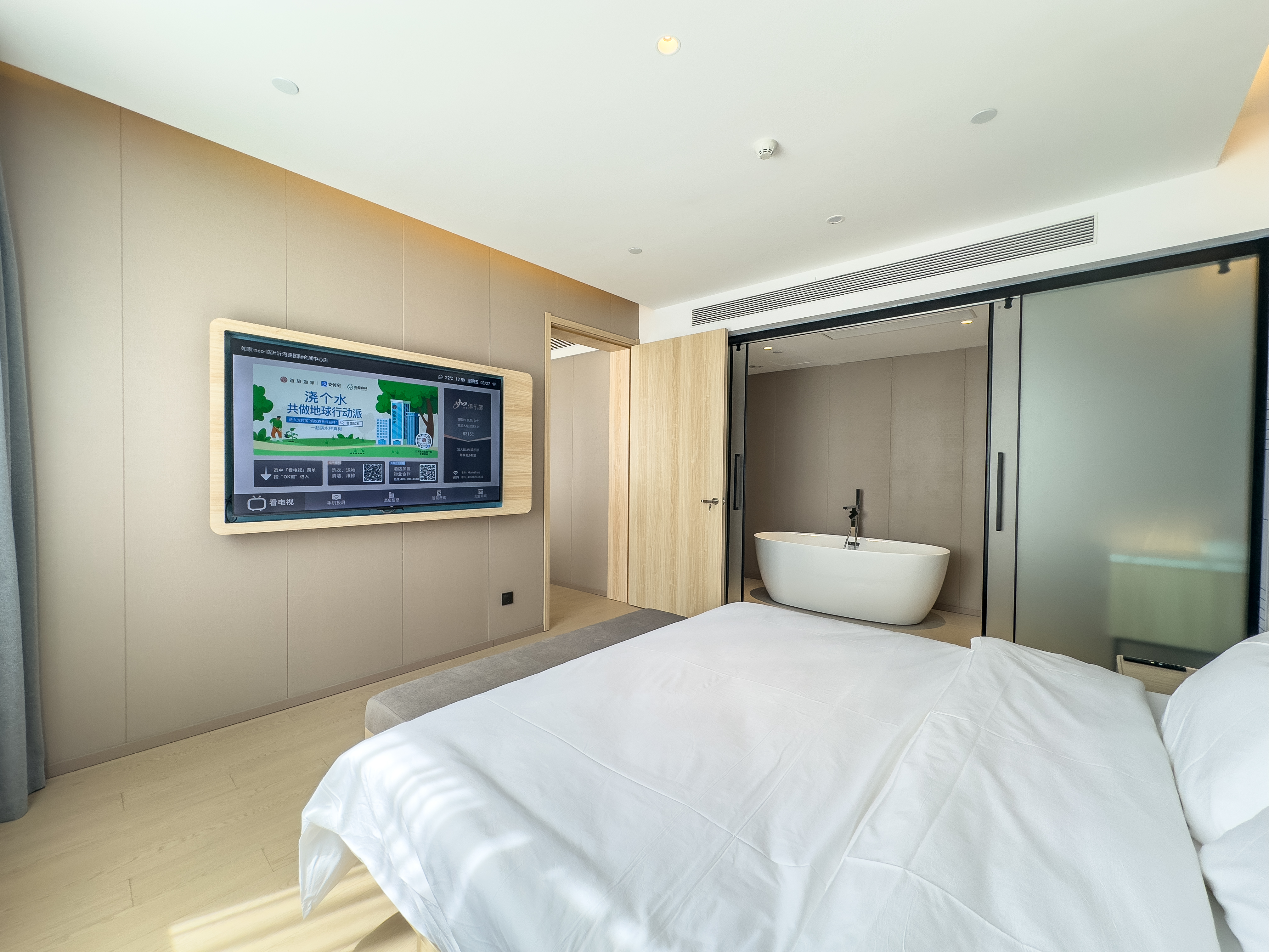 如家neo(临沂沂河路国际会展中心店)是如家酒店集团全新升级的4.0产品,致力于为宾客提供更智能、更舒适、更便捷的住宿体验 · 位置优越,交通便利: 1. 地处临沂市河东区沂河路与海关路交汇处北侧。 2. 紧邻临沂会展中心,步行约10分钟即可抵达(约1公里),是商旅参展的绝佳选择。 3.距临沂机场约4.3公里,车程约12分钟;距临沂火车站约8公里,车程约15分钟。 4. 周边银行(民生银行、临商银行)等配套齐全。 · 设施完善,服务周全: 1. 大型免费停车场,方便自驾旅客。 2. 配备20个充电桩,贴心服务新能源车主。 3. 可容纳100人的大型会议室,满足商务会议需求。 4. 自助洗衣房,为长住或旅途客人提供便利。 · 舒适客房,智能体验: 1. 提供多种房型选择,满足不同需求。 2. 客房采用全国十大品牌之一的“梦百合”记忆棉床垫,部分房型升级为梦百合0压石墨烯厚垫,全面提升睡眠质量。 3. 配备智能电视,支持影视点播与手机投屏。 4. 机器人服务,实现无接触送物,安全便捷。 酒店集地理位置优越、设施齐全、智能科技与舒适睡眠于一体,