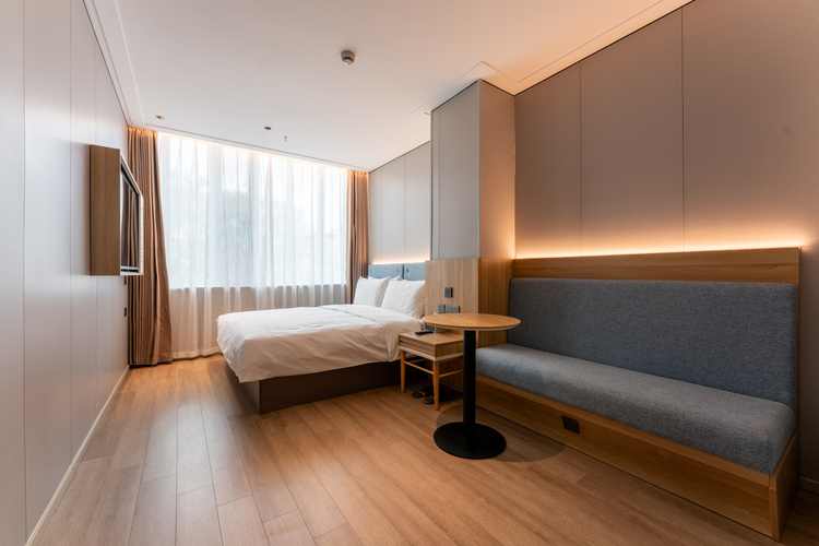 如家驿居五角场国正中心店位于上海市杨浦区政立路487号(近国安路),酒店距离地铁10号线三门路站约6分钟车程,步行10分钟毗邻上海中心城区最大的4A级景区共青森林公园约30分钟,步行6分钟即可直达太平洋生活广场,距离长海医院,杨浦区市东医院,东方肝胆外科医院,安定医院仅需6分钟车程,周边有万达广场,国华广场车程10分钟,周边更有187路,758路,537路、966路、61路 55路等多部公交可直达外滩,城隍庙(豫园),五角场,彩虹湾公园等著名最点。全新迭代的如家华丽蜕变,以现代简约的设计风格,先进的投屏功能结合“年轮“的核心理念,触动每一个宾客的内在灵感,开启一段温馨舒适、愉悦的旅程