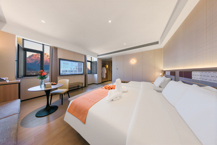 丽江,一个浪漫而充满活力的地方,这里每一处都是诗,每一景都是画,古韵悠悠,石板路蜿蜒,置身于此,清风拂面,仿佛穿越千年。酒店坐落于丽江市古城区西安街道福星路62号,位置优越,毗邻丽江古城北门,附近拥有当地特色美食街古北天街及丽江国际购物广场、狮子山夜市。毗邻“束河古镇”,“黑龙潭”,“玉龙雪山风景名胜区”,“拉市海”等一系列国际景点,交通便捷,方便乘坐101路景区专线,4路公交车直达丽江站,丽江三义机场30公里,机场巴士直达,充分满足您的旅游,差旅,娱乐,亲子,购物,餐饮等需求。 酒店设计采用时尚英伦风,典雅而不失活力,简约却精致,走进本店就能感受到生活的舒适感及仪式感。 酒店提供云南小粒现磨咖啡与精致的下午茶,咖啡带来的商务休闲气息和自由空间,伴随着轻松的音乐,拉近了人与人之间的距离。随着薄暮的轻纱轻轻唤醒古城的脉动,阳光洒在玉龙雪山之上时,在清晨的房间内冲泡一杯手冲咖啡;夜晚,伴随着五彩缤纷的古城夜景,沐浴之后用上酒店精心准备的徕芬高速吹风机,在发丝拂过脸庞的每一刻都能感受到舒适。