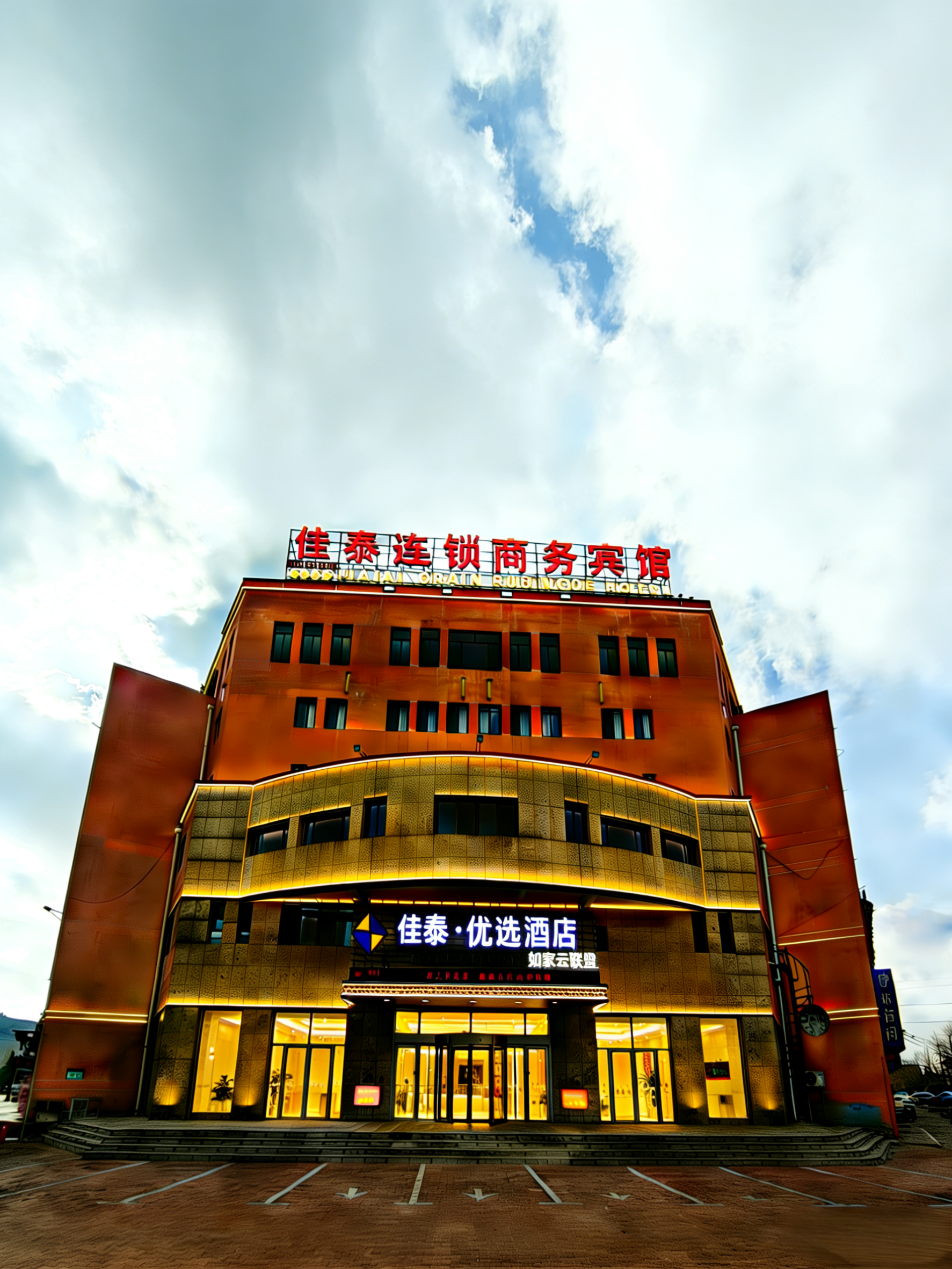 如家云联盟-佳泰优选酒店庄河高铁站店位于迎宾大街和三环大街交汇处,距离庄河客运站200米,距离高铁站3公里,距人间仙境——蛤蜊岛约8公里,距国家4A级旅游风景区、北方小桂林——冰峪沟约35公里,距步云山温泉约40分钟车程,距海岛森林公园、省级风景名胜区的海王九岛、有“蓬莱仙岛”美誉的庄河黑岛约1个小时的车程,临近西山公园,交通便利,四通八达,是市内的交通杻纽,更是外阜进入庄河市的必经之路。 酒店楼高七层,设有大型停车场,24小时专人值守,客房房型多样化,采光良好,拥有24小时热水、百兆光纤、中央空调、国内外直播电话,酒店大厅设有休闲区以及商务区,可满足您的不同需求。酒店秉承服务为本的理念,希望通过热情与贴心的服务让您感受家一般的温暖。