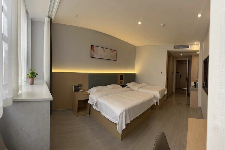 - 派柏云酒店(合肥官亭镇店)四大亮点: 1.?标识醒目好找,自驾超友好。 酒店在楼体三面高墙上都设置了非常醒目的招牌,正面、侧面都清晰可见,开车老远就能一眼认出派柏云的名字,自驾找店特别方便,完全不用绕路。 2.?服务贴心踏实,细节拉满安全感。 从店长到员工都认真负责、热情用心。刚入住时店长亲自带看房;发现车辆一角不在监控范围内,特意从八楼跑下楼,引导把车停到监控全覆盖区域;还亲眼看到店长带着前台工作人员一起在大厅、楼梯间拖地打扫卫生,全员做事踏实认真、让人特别安心。第二天一早还主动送来了单独的晾衣架及其他用品。这家店在店长的带领下,整体服务意识强,有”如家”之感。 3.?房间宽敞舒适,功能分区合理。 楼栋为南北朝向,楼道宽敞通透,房间空间很宽敞明亮。入门区可放置衣物,洗漱区宽敞,卫生间与淋浴间干湿分离;窗边做了三层窗帘(两层纱帘+厚遮光帘),窗帘干净整洁,中间设有大理石高台可放行李箱等,极为重要且方便;房间配置设施齐全、卫生干净,居住体验极佳。 4.?早餐现做标杆,无预制更安心。 餐厅与客房同层,标识清楚,虽面积不大但整洁明亮。全程自制现做,豆浆由老板亲自现磨现榨,花生稀饭熬得绵密