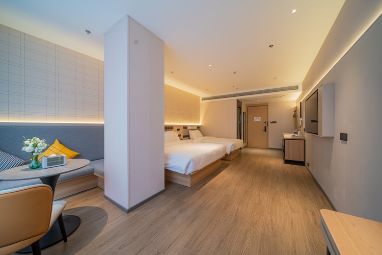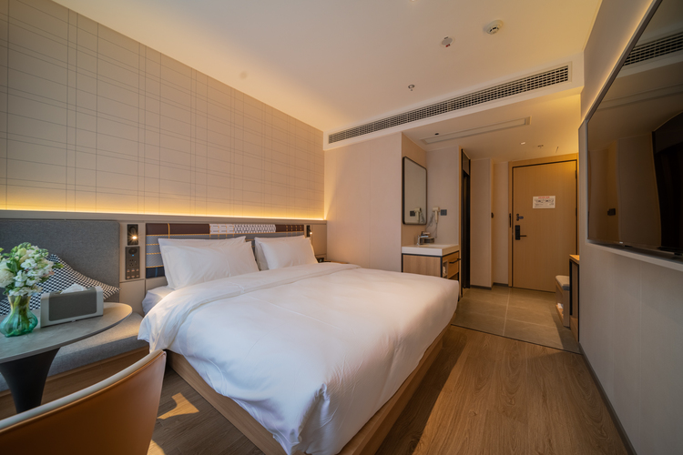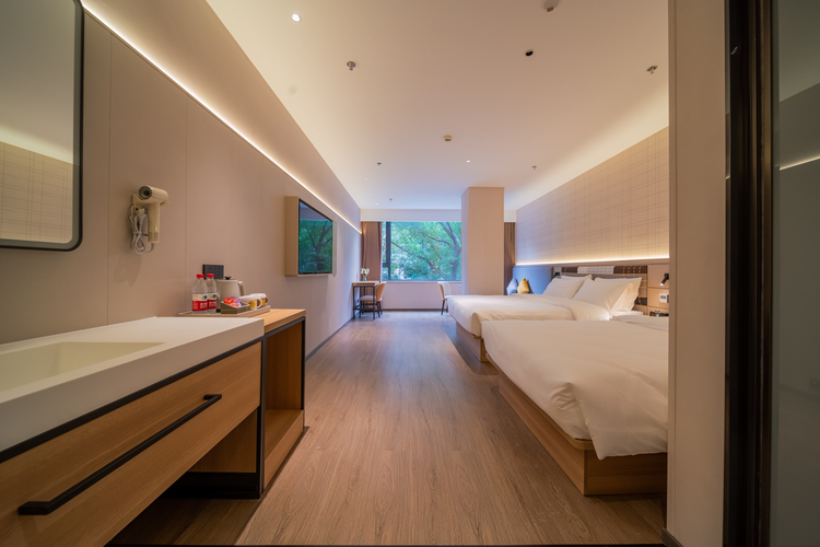 在重庆长寿桃源大道,如家旗下的一颗璀璨明珠——如家云上四季酒店(重庆长寿北站店),静候您的光临。这里不只是一处住宿之地,更是一座融汇舒适、品味与便捷的旅居空间。 酒店精心设计六种房型,从温馨商务大床房、商务高级大床房到宽敞自在的家庭房,满足您不同的入住需求。每间客房均配备通透落地窗,晨光轻抚,将长寿的城市天际线与远山晴空娓娓道来。部分房间更设有沉浸式超大投影,夜幕降临,拉上窗帘,即可拥抱属于您的私人影院时光。 我们注重每一处细节:贴心洗衣服务伴您旅途清新如初,宽敞停车场守护您的出行自由,酒店餐厅则甄选重庆本地风味与南北经典菜肴,以美食抚慰身心。酒店地理位置优越,交通四通八达。距离长寿高铁站仅约6分钟车程,无论是商务洽谈或休闲度假,皆可轻松抵达。周边亦环绕众多风光胜迹:如长寿湖,碧波如玉,泛舟其上可尽享自然宁静;又如菩提山,林翠禅深,漫步山间便能感悟心灵的片刻澄明。 若您正在寻觅一处既舒适便捷、又充满地域魅力的理想下榻之所,长寿如家云上四季酒店诚邀您驻足。在这里,我们愿以细致服务与美好景致,为您开启一段难忘的长寿之旅。 如家云上四季酒店(重庆长寿北站店)欢迎您