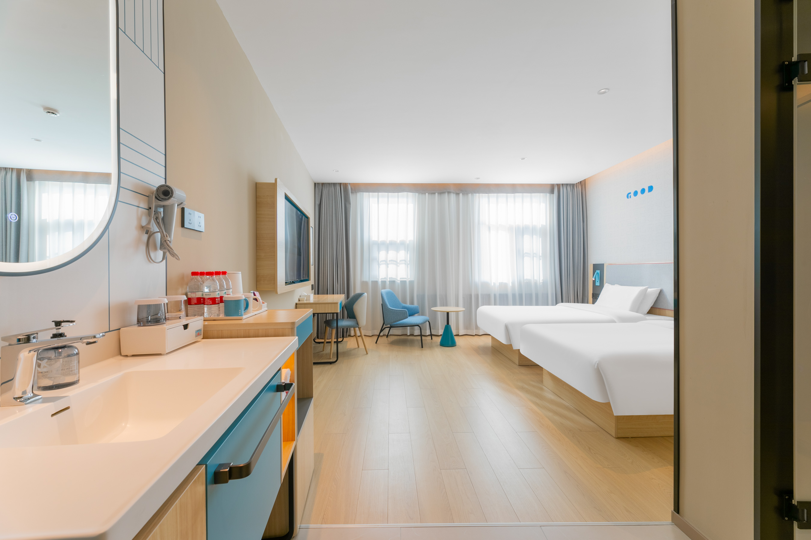 坐落于宁晋县西南核心区域,本酒店以优越的地理位置和完备的配套设施,为商务出行与休闲旅居提供高品质的住宿体验。距离宁晋县周边主要企业仅1.5公里,政务往来高效便捷;周边金融资源丰富,多家金融机构环布,满足宾客的各类财务需求。 酒店毗邻宁晋县最大商业综合体天一购物广场、信合商厦,仅0.5公里的步行距离,让您轻松畅享购物、娱乐、餐饮一站式体验。此外,酒店旁还设有大型生活超市,日常采买极为便利。若想品味地道宁晋风味,著名的西关饸饹近在咫尺,为您的旅途增添舌尖上的满足。 酒店精心打造60间风格现代、设施齐全的客房,涵盖大床房、高级大床房、双床房、高级双床房、安心睡大床房、安心睡双床房及影音房七大房型,可满足单人差旅、家庭出游或团队入住等不同需求。客房内配备高品质寝具0压床品、高速网络及智能卫浴系统,确保每一位宾客尽享静谧与舒适。 二楼配备洗衣机烘干机两套,三楼健身房满足宾客需求。 酒店内设特色餐厅,提供本地风味与经典菜式,早餐时段更有营养均衡的自助餐选择。同时,24小时开放的停车场,为自驾宾客解决后顾之忧。无论是商务会议还是休闲小住,我们以细致周到的服务,为您打造宾至如归的体验。