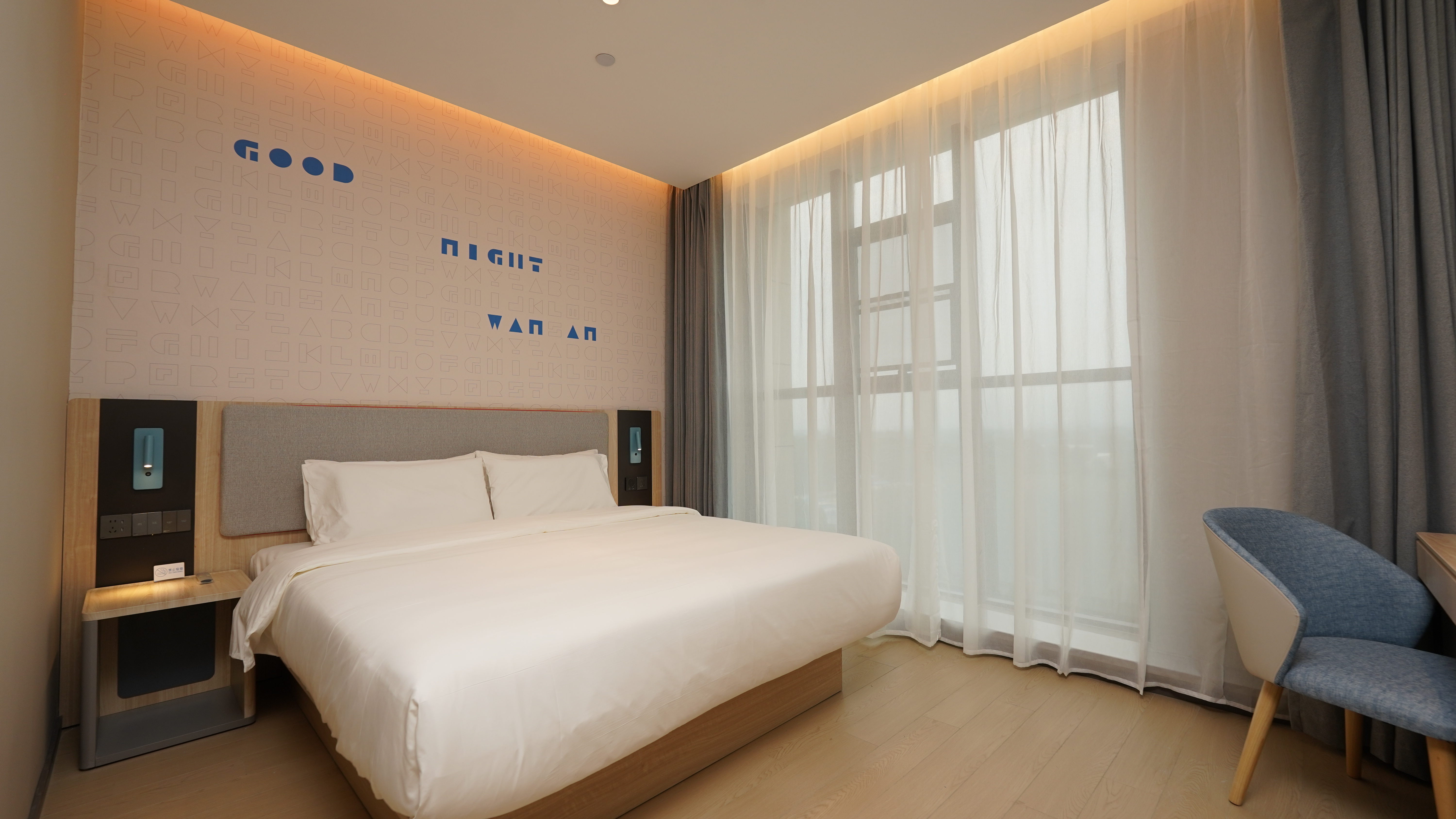 全新升级的如家酒店4.0在视觉呈现上既延续了活力靛蓝的品牌基色,也通过搭配时尚枣红、直线与圆弧等恰到好处的线条组合,使得酒店内部空间更潮流时尚,更契合当下年轻消费群体的喜好与审美。 靓丽的酒店外立面,大气时尚的开放式岛台、兼顾商务和休闲功能的潮流公区……全新升级的如家酒店在设计上凸显了活力、年轻、时尚又不乏商务质感的品牌调性。每一处细节都体现出如家酒店高颜值的“面子”与高品质的“里子”。 作为客人休息区的客房,温馨舒适的空间氛围仍是如家的基础,新一代的如家酒店也进行了全新设计,实木质感的家具和地板、高品质的床品、静音房门和加厚隔音玻璃再加以淡蓝色装饰点缀,让整个房间显得温馨简洁的同时,也为宾客带来了沉浸的高质量睡眠体验。 这就是全新一代如家酒店4.0临汾高铁西站店