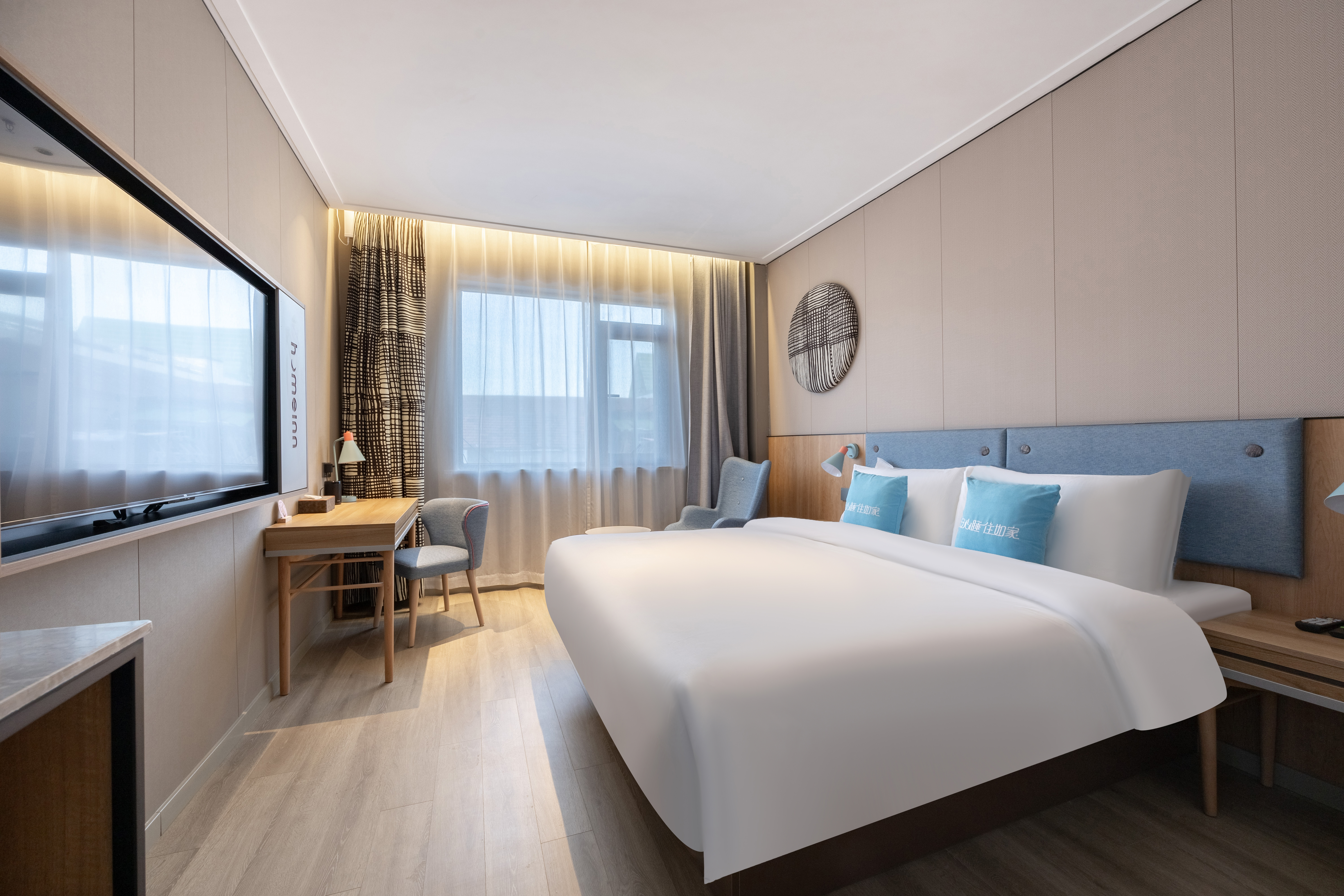 如家·neo-徐州丰县刘邦广场店位于解放大道与向阳路交汇处,距丰县汽车总站1.4公里,4分钟车程,距县中心约5分钟车程,门口就有公交站台,共享电动单车,丰县象征刘邦广场就在酒店门口;酒店附近餐饮、银行、医院、学校、公园等配套设施齐全,交通方便,地理位置优越,随时带您走遍丰县的每个角落。酒店距凤鸣金街步行仅需10分钟,距丰县人民医院约7分钟车程;距丰县中医院1.2公里,约5分钟车程;酒店单独WIFI,通过清新淡雅的现代设计诠释经典品牌,另设有自助早餐厅;自助洗衣房;客房内提供免费洗漱用品,超大屏数字液晶电视,喜临门记忆床垫,品牌卫浴等硬件配套设施;以标准化的产品,管家式的服务,触动每一位宾客的灵感,既满足您商务出行的需求,亦能为居家旅行带来温馨的享受。
