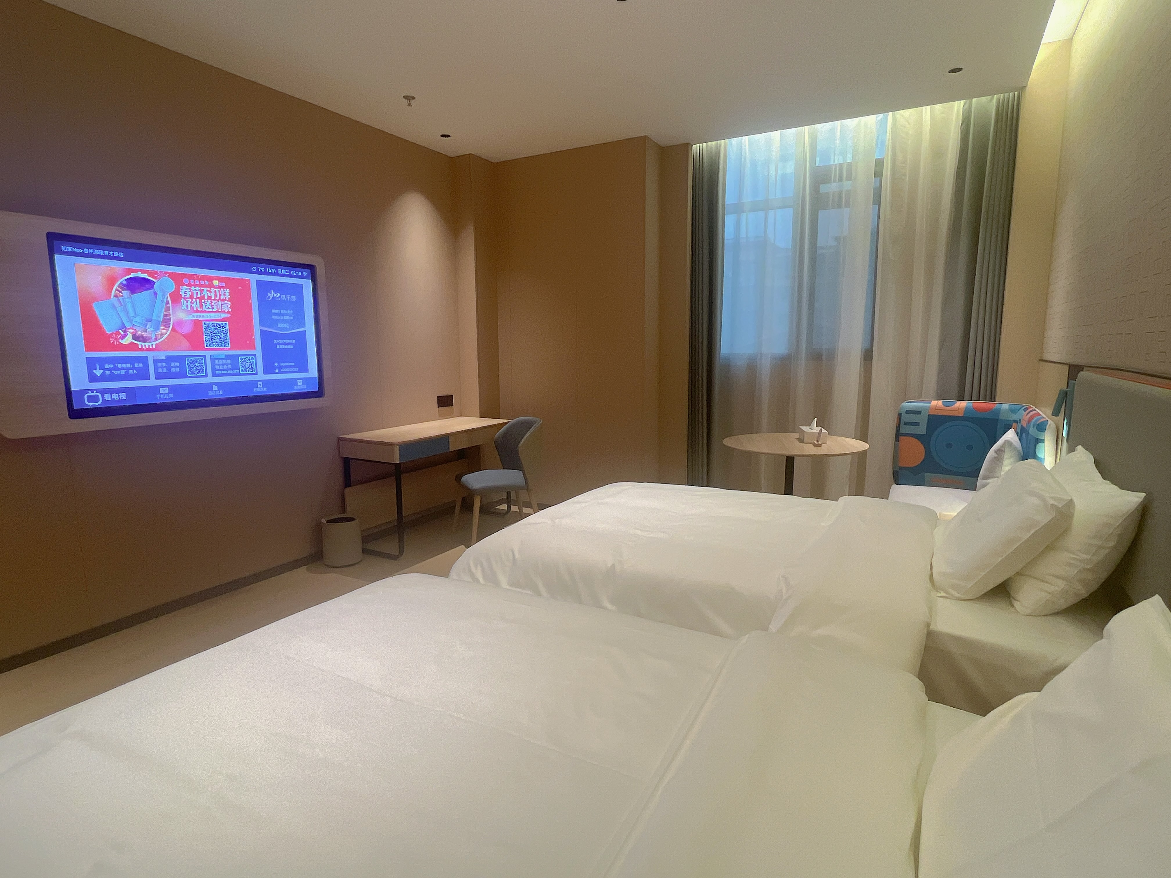 如家Neo-泰州育才路店是如家4.0新版本装修风格,酒店位于育才路知春路交叉口,周边特色小吃,美好24小时超市,罗森,大型商超等一应俱全,距离中骏世界城5分钟车程,当地特色早茶丰德园10分钟车程,泰州老街10分钟车程,泰州学院7分钟车程,每个房间都是智能化设备,且配备了品牌床垫,品牌吹风机,高品质的洗浴用品,24小时热水,WIFI,24小时商用洗衣,烘衣机等完善的设施,给您的出行带来高品质的住宿体验,门口自有停车场,自驾,打车,绿色出行都十分便利,是您度假,走亲访友,商务出行的不错选择。