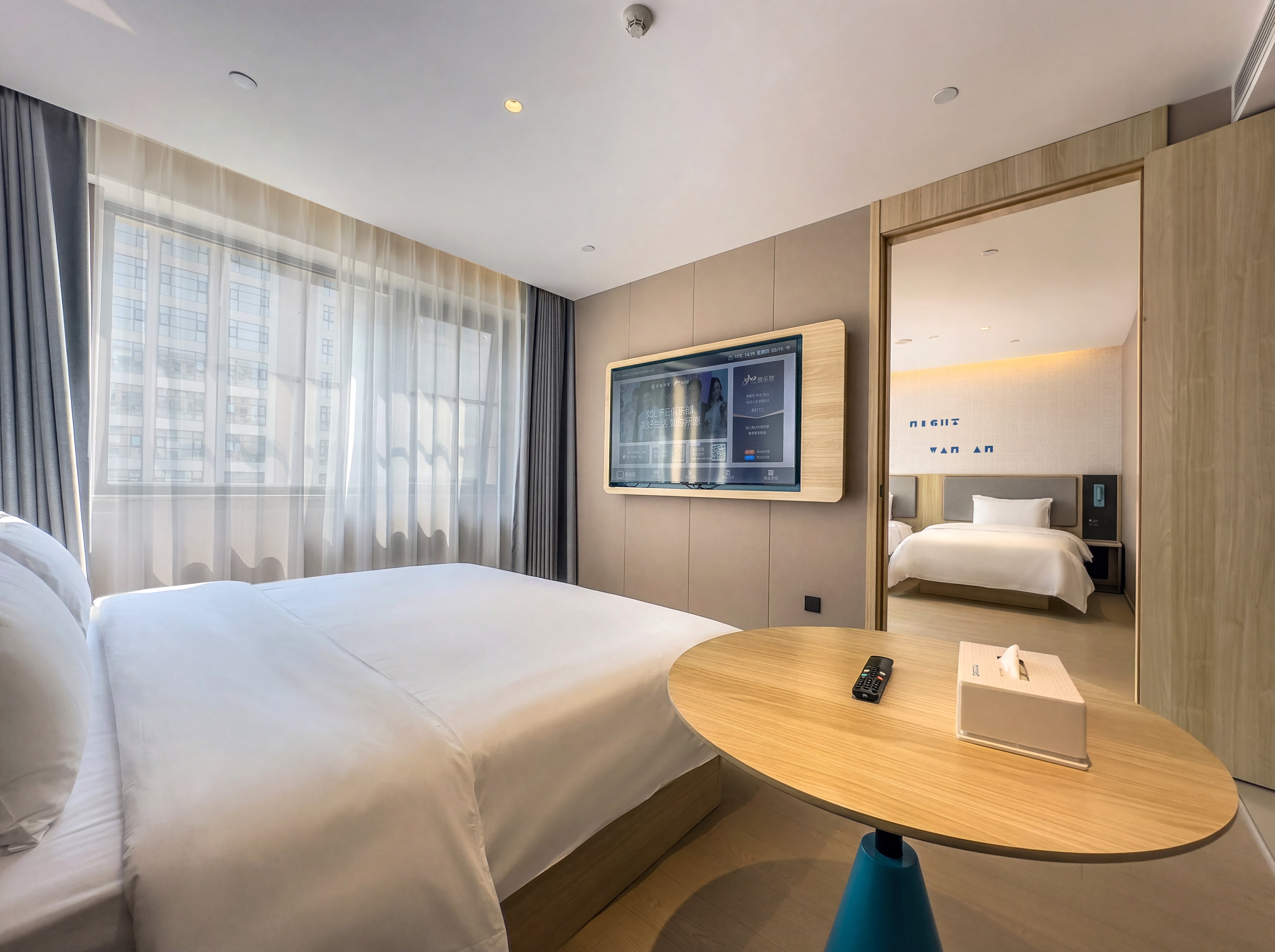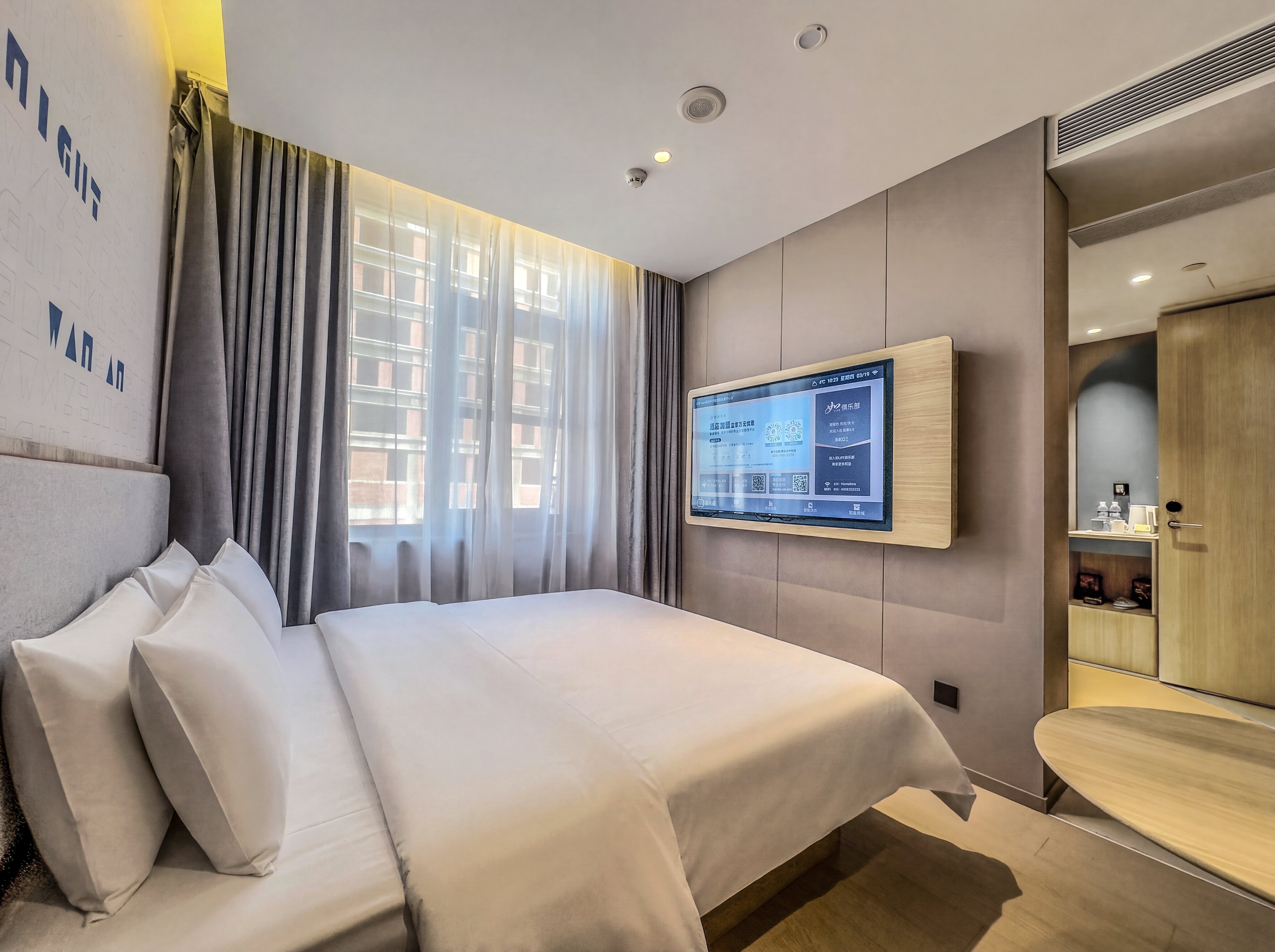 如家neo(临沂沂河路国际会展中心店)是如家酒店集团全新升级的4.0产品,致力于为宾客提供更智能、更舒适、更便捷的住宿体验 · 位置优越,交通便利: 1. 地处临沂市河东区沂河路与海关路交汇处北侧。 2. 紧邻临沂会展中心,步行约10分钟即可抵达(约1公里),是商旅参展的绝佳选择。 3.距临沂机场约4.3公里,车程约12分钟;距临沂火车站约8公里,车程约15分钟。 4. 周边银行(民生银行、临商银行)等配套齐全。 · 设施完善,服务周全: 1. 大型免费停车场,方便自驾旅客。 2. 配备20个充电桩,贴心服务新能源车主。 3. 可容纳100人的大型会议室,满足商务会议需求。 4. 自助洗衣房,为长住或旅途客人提供便利。 · 舒适客房,智能体验: 1. 提供多种房型选择,满足不同需求。 2. 客房采用全国十大品牌之一的“梦百合”记忆棉床垫,部分房型升级为梦百合0压石墨烯厚垫,全面提升睡眠质量。 3. 配备智能电视,支持影视点播与手机投屏。 4. 机器人服务,实现无接触送物,安全便捷。 酒店集地理位置优越、设施齐全、智能科技与舒适睡眠于一体,