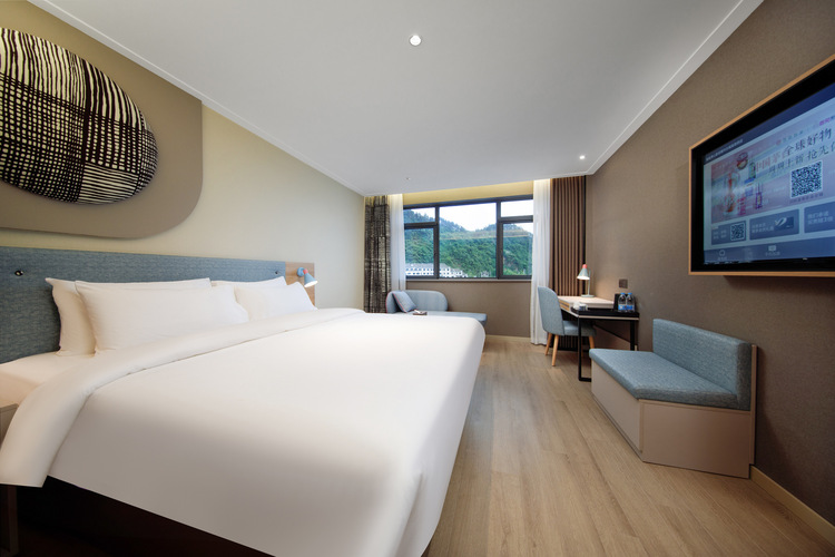 - 酒店的位置对于旅行的有可能有一丢丢远,去古城或者渔梁可以在酒店门口骑共享电动车,大概2元就能到。 停车门口停车位不算多,是跟周边小区共享,有时候来晚了就没地方停,可以把车停在周边单位的停车场,步行到酒店也就五六分钟。 房间设施,虽然是从高级大床房升级的景观大床房,但是跟之前住的高级大床房没啥区别啊,并且之前的高级大床房在三楼洗脸池在淋浴房一起,六楼的干湿分离,洗脸池台盆那块做的很丑,尤其是台面…还不如放卫生间里。服务员说这样设计能让淋浴间大一点,说实话,没感觉大多少。 早饭凑合吃吧,下次还是去旁边吃个渔梁两棵树。某宜早饭比这个味道好点,种类也多。(别说某宜贵一点,之前某宜120多140多都住过,你家也经常会是160+。。。)