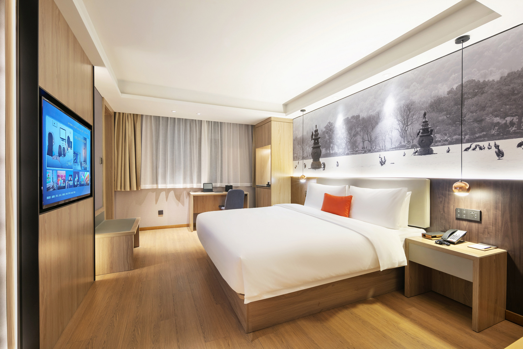 和颐至尊湖滨步行街店 夜幕之下,璀璨星河,望运河美景,枕西湖如梦; 假如西湖是杭州一首流动的诗,从酒店视角无疑就是欣赏这首诗的最佳位置; 距湖滨步行街仅一路之隔,西湖音乐喷泉、美食街、湖滨in77、武林夜市、德寿宫等地标建筑近在咫尺。 周边西湖、运河、钱江三大特色板块都藏着超多惊喜,这是一次旅行,更是一种生活的艺术。 杭帮菜餐厅满足您的味蕾,外婆家、绿茶、新白鹿、新周记、知味观等众多餐厅,有麻油笋干、龙井虾仁、东坡肉、西湖醋鱼等特色美食,为您提供丰富多彩的菜品,让您品尝到地道的杭州味道。 优越的地理位置,交通便利,地铁1号线、龙翔桥公交站步行5分钟,可抵达杭州各大景点。 酒店整体风格简约而不失高雅,每一处细节都彰显着品质与用心。 漫步西湖十步景,转身繁华烟火里,一次相遇,满是温情;一段旅程,皆是回忆。愿和颐至尊酒店成为您旅途中温暖的港湾。