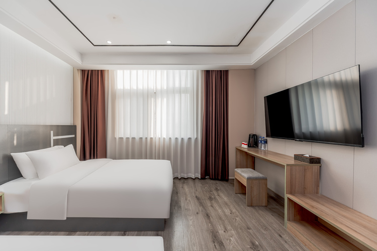 带你避开喧嚣来一场“心动”的酒店体验 处繁华而独辟清幽之境,居闹市而无车马之喧,喜欢在某一时间,恰逢其会,偶然相会,共赴一场城市上空之旅! 地理位置 酒店位于杭州萧山市心北路288号在建设四路与市心北路交叉口,靠近地铁2号线建设三路A出口,毗邻萧山机场、杭州南站,离奥体博览城4公里、地铁直达,至萧山医院仅5分钟车程。 景区 杭州西湖景区、杭州湘湖景区、G20会展中心景区、奥体博览城、珠宝城。 客房 酒店拥有大床房、商务大床房和双床房等多种房型,每间房均配有观景外窗,三层全遮光窗帘,55寸液晶电视,还有特色影院房,柔软舒适的高级床品,营造最舒适的睡眠环境,SPA式沐浴体验,瞬间缓解一天疲惫。 餐饮 酒店设有自助早餐厅,餐厅与当地特色结合,提供多种中式、西式等美味佳肴,乐享舌尖之旅。 哪里才为心安之所 我想 在这儿! 便是心安之处。