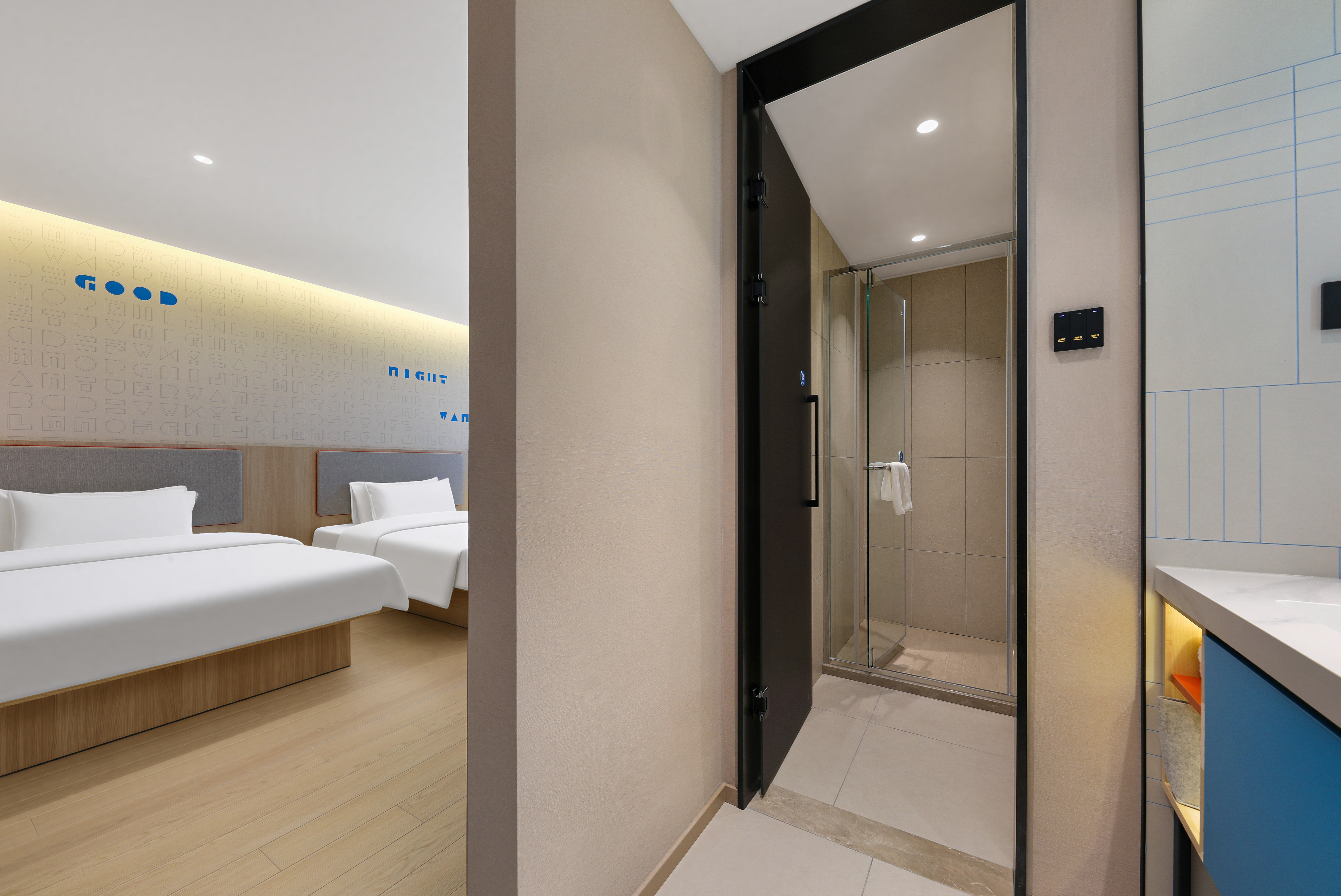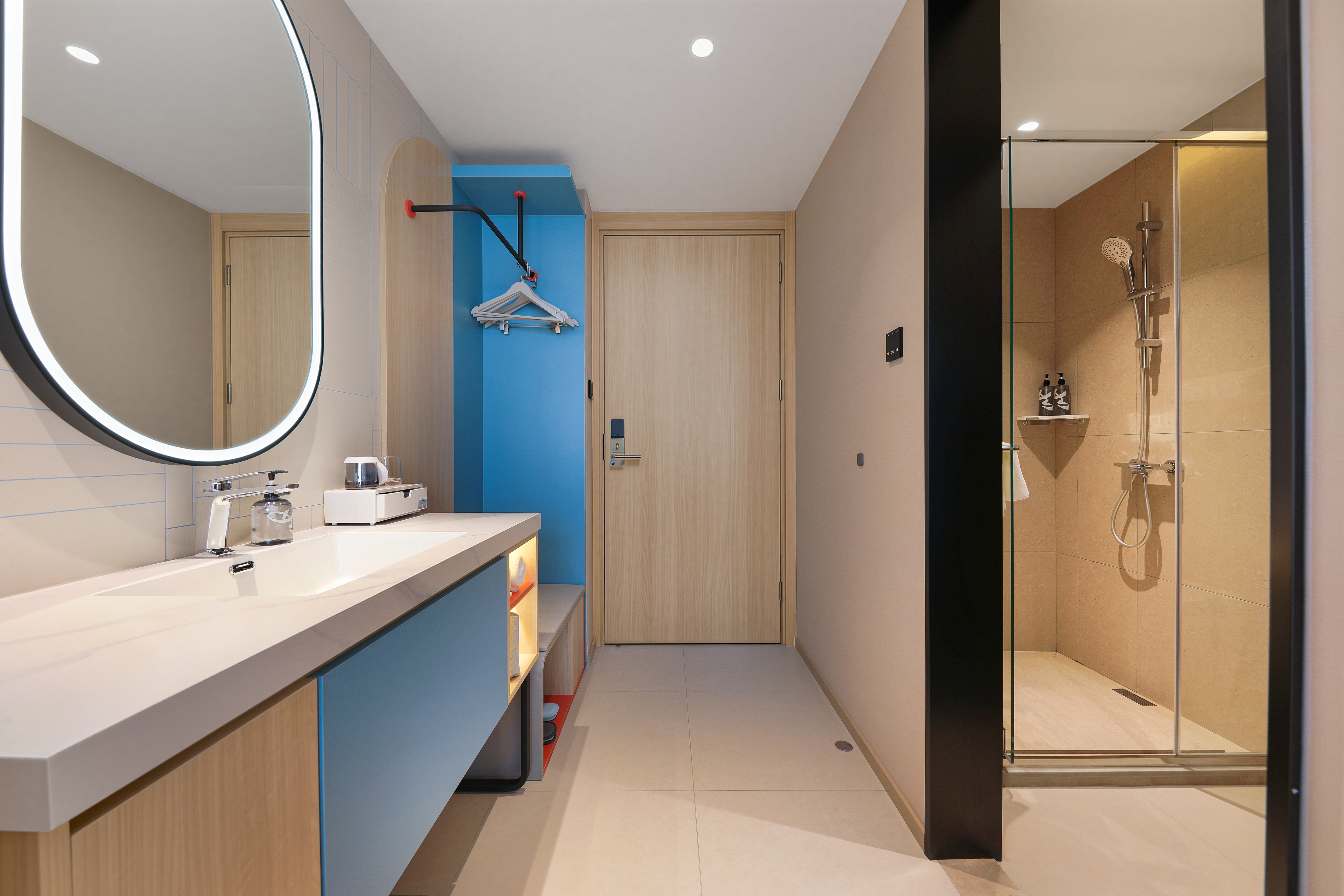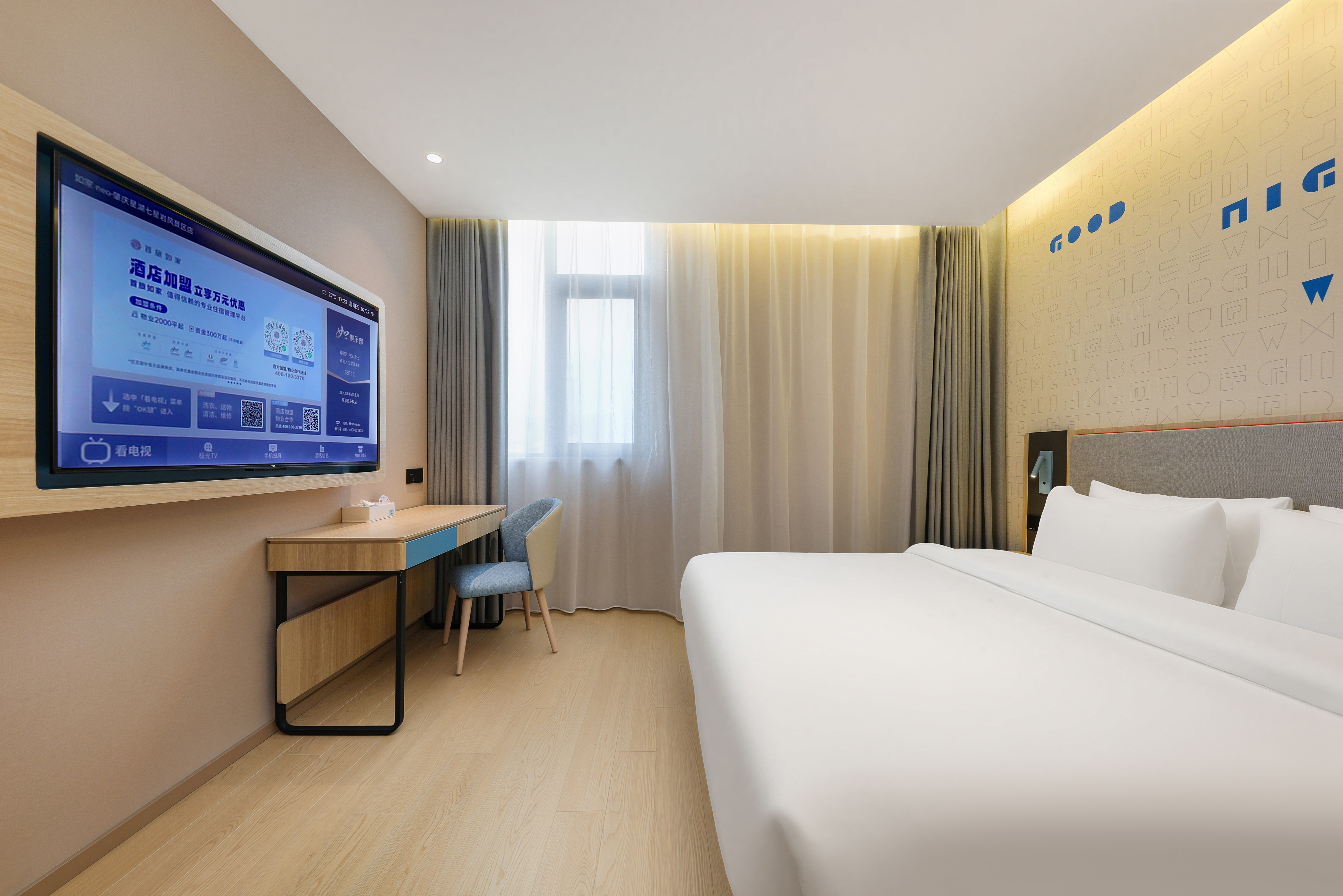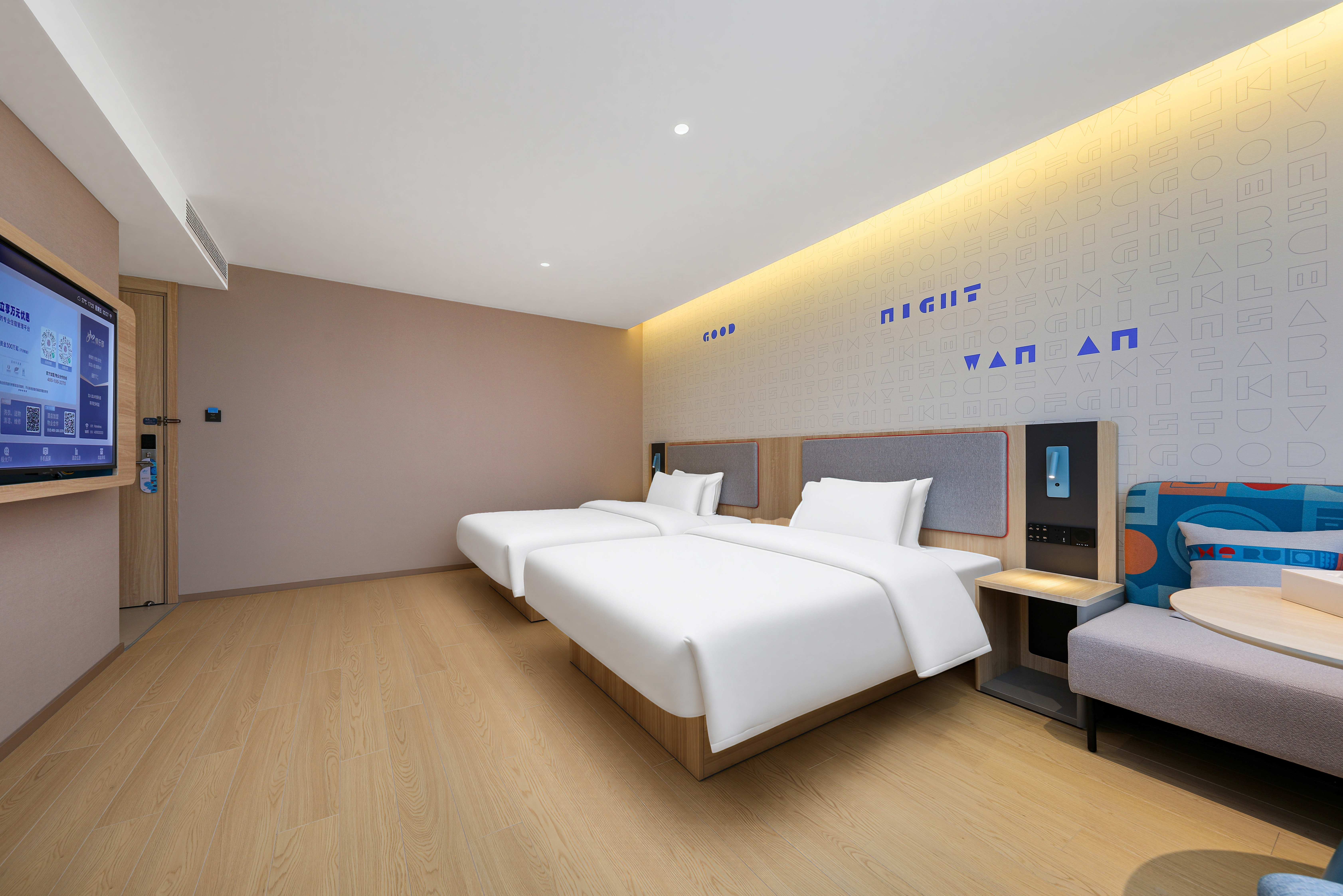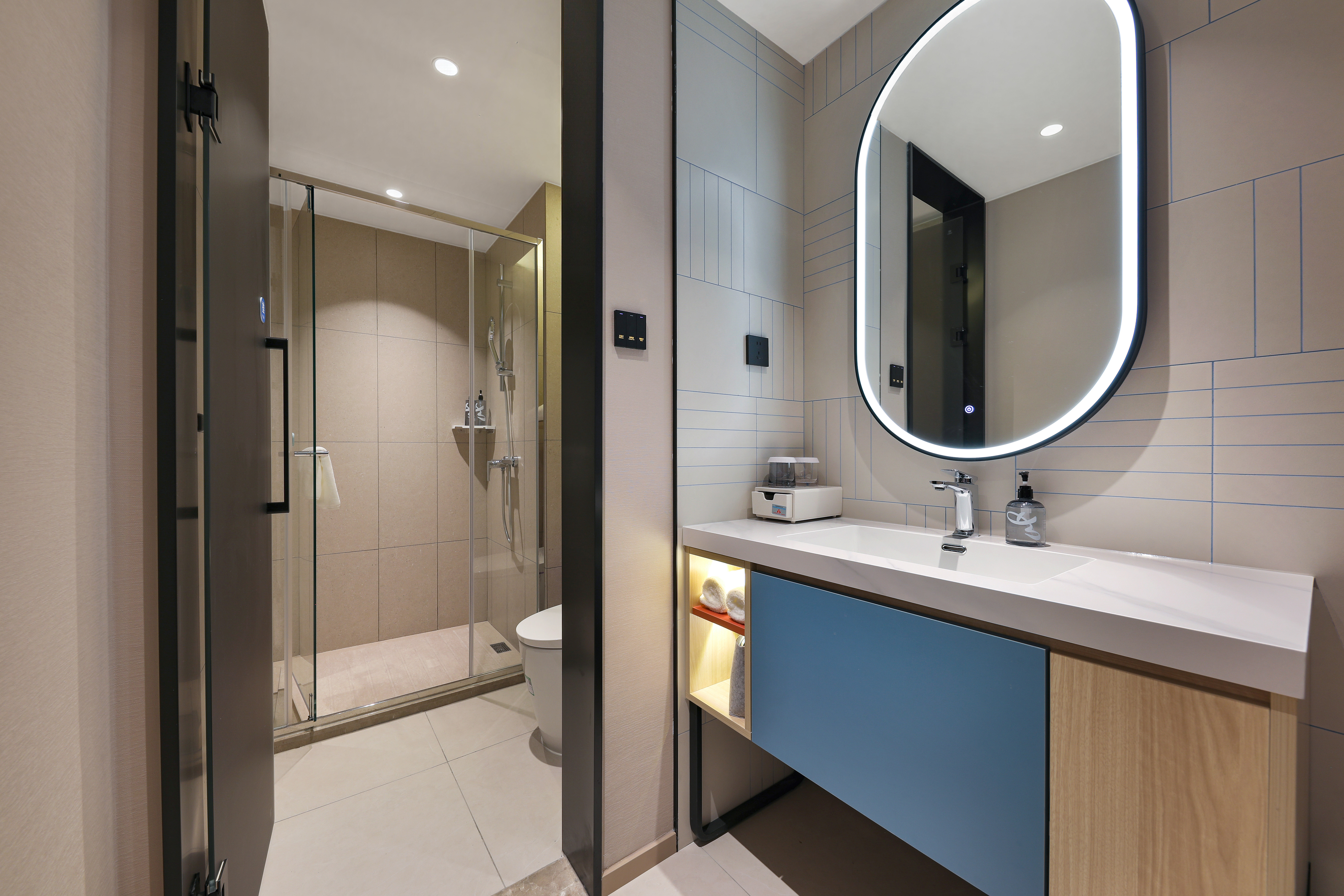 本店位于肇庆市端州区建设二路,地处城区核心地段,交通便利,周边生活配套成熟,是商务与休闲旅客的理想下榻之选。酒店毗邻肇庆火车站、高铁站及广佛肇高速路口,出行畅达,轻松衔接湾区各大城市;距肇庆著名景点七星岩风景区、牌坊广场、岩前休闲半岛约10-15分钟车程,既可探访自然山水,也能感受城市人文气息。酒店周边环绕多个商圈,步行可达泓强康复医院、益华国际广场、肇庆市第二人民医院、农商银行、中国人民银行和建设银行等,满足购物、餐饮、医疗等多元需求。此外,智联梦工场近在咫尺,汇聚咖啡、奶茶、餐饮、酒吧等休闲场所,让您轻松享受当地悠闲生活。地处城东核心区,靠近端州一路与砚都大道,周边有肇庆学院、广东理工学院等高校及多个产业园区,是商务差旅与休闲度假双重场景兼备的理想居停之所。酒店配备自助洗衣房、健身房、智能送物机器人及自助餐厅,客房全面接入“小度”智能语音系统,配备梦百合零压床垫,致力为宾客营造舒适安心的睡眠环境。整体设计以年轻时尚的蓝色为主色调,搭配木饰面,既凸显商务感,又营造出亲切温馨的空间氛围。于繁华之中为您守住一方宁静,是您在肇庆旅居的理想起点。