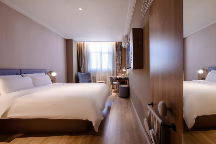 银川鼓楼店位于银川市中心繁华的鼓楼步行街商圈,距离鼓楼仅100米,依托鼓楼-新华街商圈,与著名古建筑鼓楼、玉皇阁咫尺相望。 毗邻鼓楼尚街美食小吃街,方便领略宁夏众多美食小吃。交通便利,距离机场大巴鼓楼站点步行2分钟,距离火车站11公里、市医院步行仅10分钟、河东国际机场25公里、汽车南站15分钟车程、银古高速路口收费站3公里。门前多条公交线路通行;周边有新华百货购物中心,万达影城、百年老店老毛手抓、德隆楼、全聚德、仙鹤楼等一系列众多购物美食抬腿即到。酒店交通极为便利,是您商务出行和旅游住宿的首选。银川火车站乘坐1路、11路等公交车于鼓楼下车即到。银川河东机场乘坐出租车30分钟即可到达,或乘坐机场大巴至鼓楼下车步行2分钟即到。 酒店周边购物(华润万家、新华百货)、餐饮(老毛手抓、德隆楼、全聚德、迎宾楼)、娱乐(万达广场、童话KTV)场所一应俱全;光明广场、宁夏人民大会堂、宁夏体育馆、中山公园步行8分钟即可到达,距离宁夏国际会展中心仅10分钟车程。沙湖、镇北堡西部影城、西夏王陵等5A级国家著名旅游景点分布城市周边,酒店附近多条旅游专线可直达景。所有入住宾客须有48小时内有效核酸检测报告可住