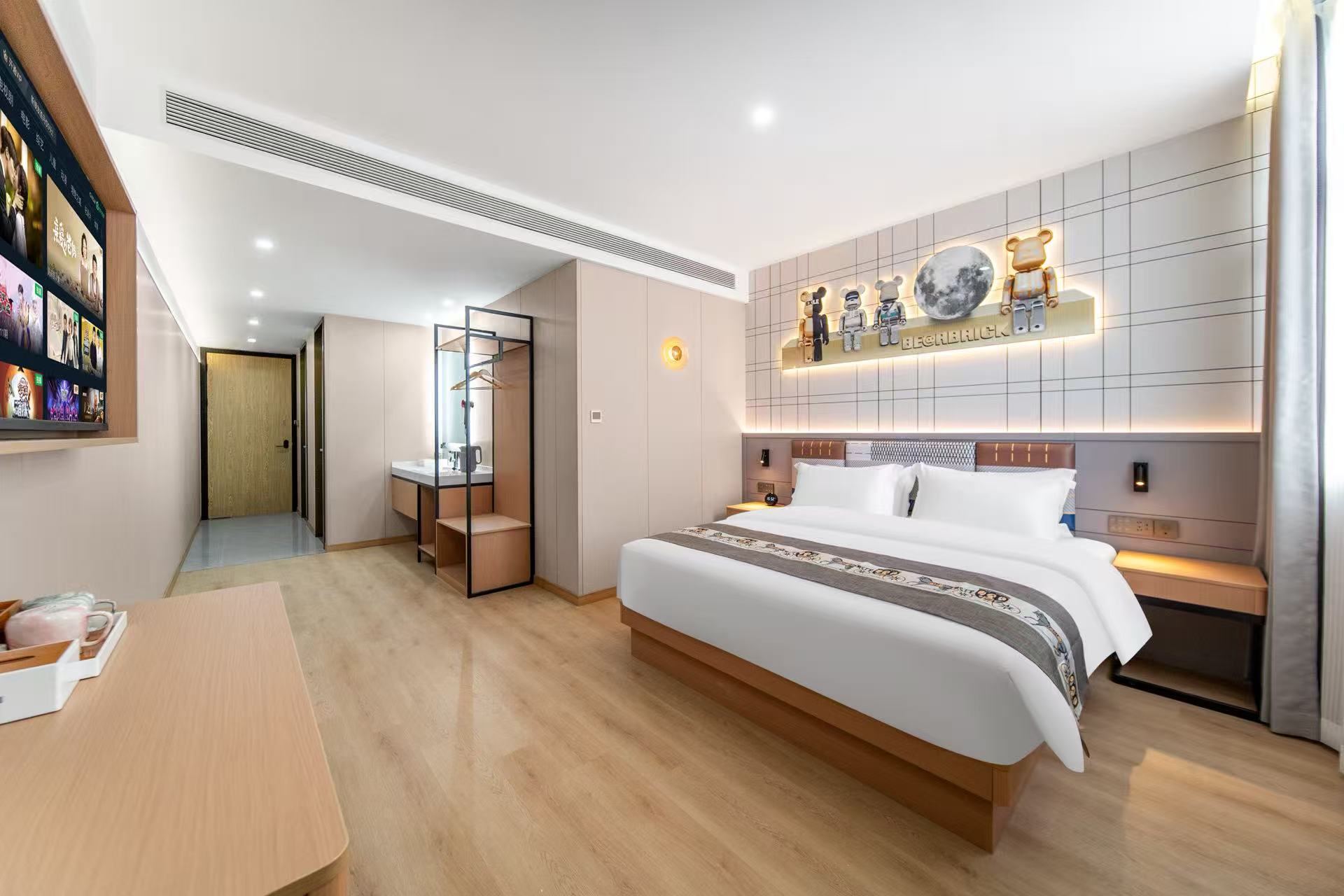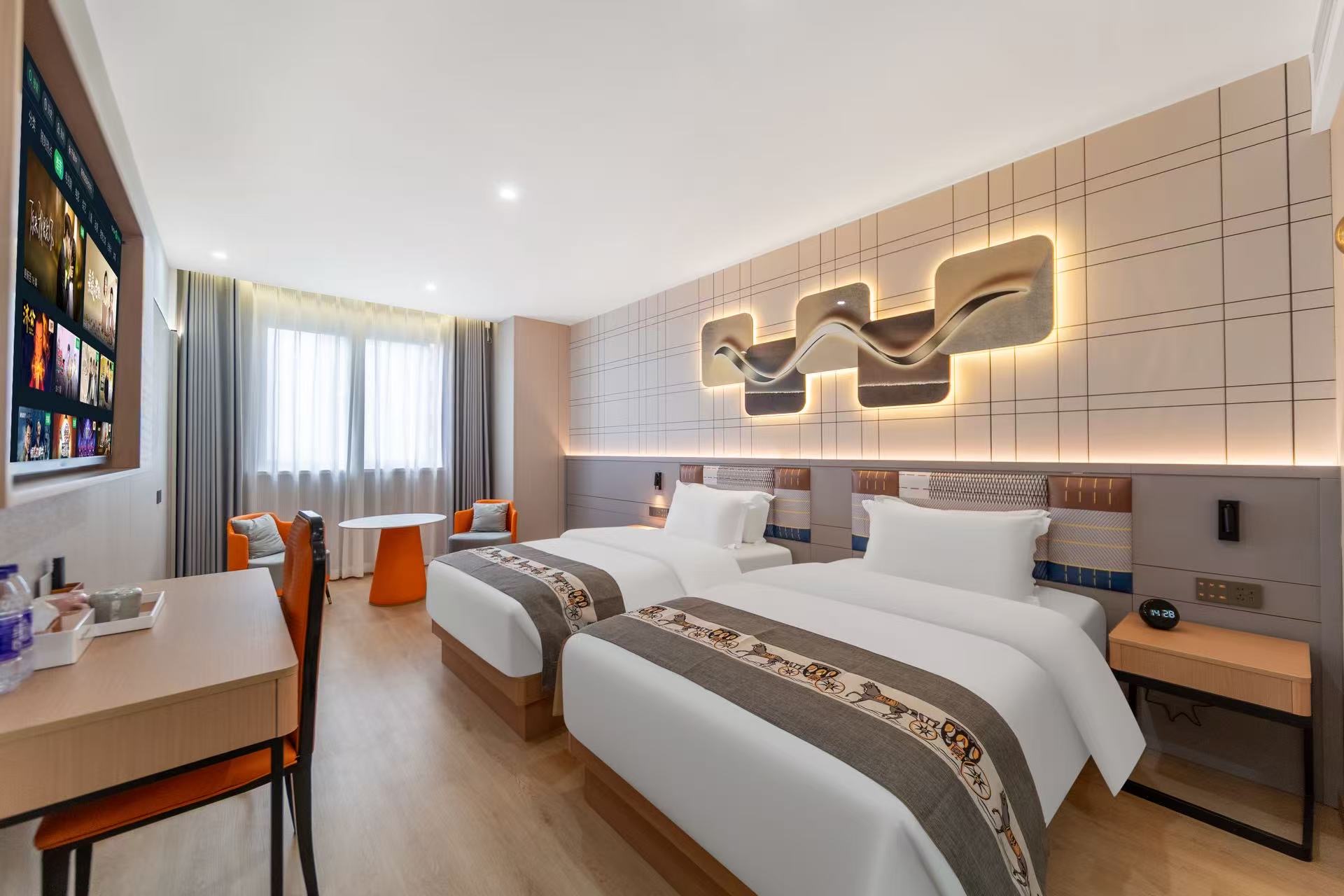 如家艾扉南京长江大桥澳林广场店:地理位置优越,周边景点丰富,能为游客带来多样的游玩体验。 酒店与奥林广场相邻,奥林广场是一座综合性商业广场,集购物、餐饮、娱乐于一体,有众多品牌店铺、特色餐厅和电影院,能满足游客的日常消费和休闲需求。 从酒店出发,前往南京长江大桥十分便捷,步行即可到达。南京长江大桥是中国桥梁史上的重要里程碑,横跨长江,连接南京鼓楼区和浦口区,上层为公路桥,下层为铁路桥。游客可以步行或驾车登上大桥,感受其雄伟壮观,远眺长江的浩瀚风光。在大桥南堡公园内,还有一条玻璃栈道。它是长江首座高空玻璃观景平台,悬浮于80米江面之上,能让游客体验“踏浪观桥”的震撼,还可在栈道中段以270度无死角视角,同时拍摄长江大桥双层结构。 此外,周边还有桥北滨江生态公园,适合散步、观江景,游客可以在这里近距离欣赏长江的美景,还能远眺南京长江大桥的全貌。如果您对历史文化感兴趣,下关火车主题公园是个不错的选择,园内的蒸汽火车头与三节绿皮车厢,充满了复古氛围,仿佛让人回到了民国时代。 从酒店出发,乘坐公共交通还可便捷前往中山陵、梧桐大道、玄武湖、鸡鸣寺等著名景点。