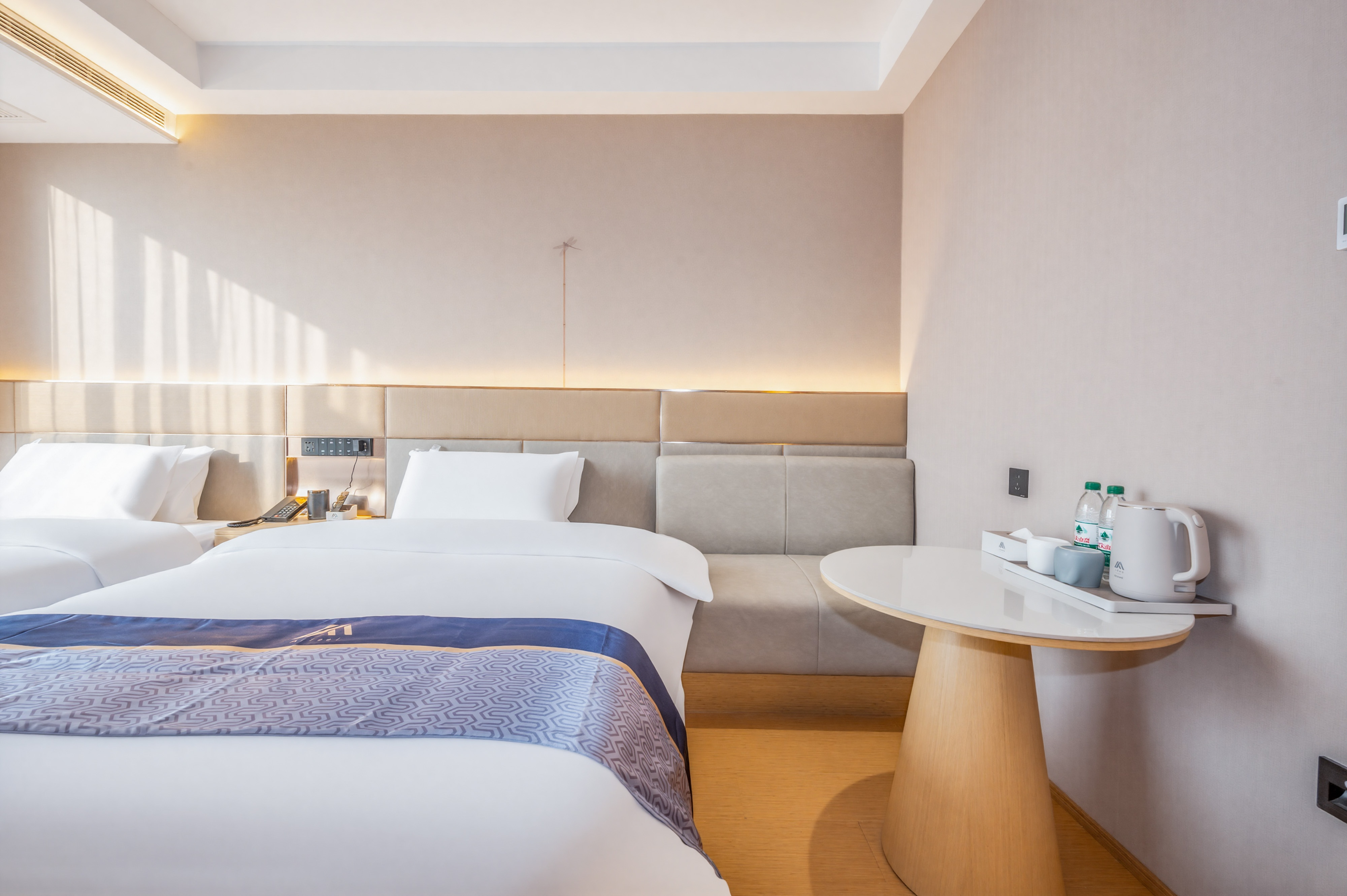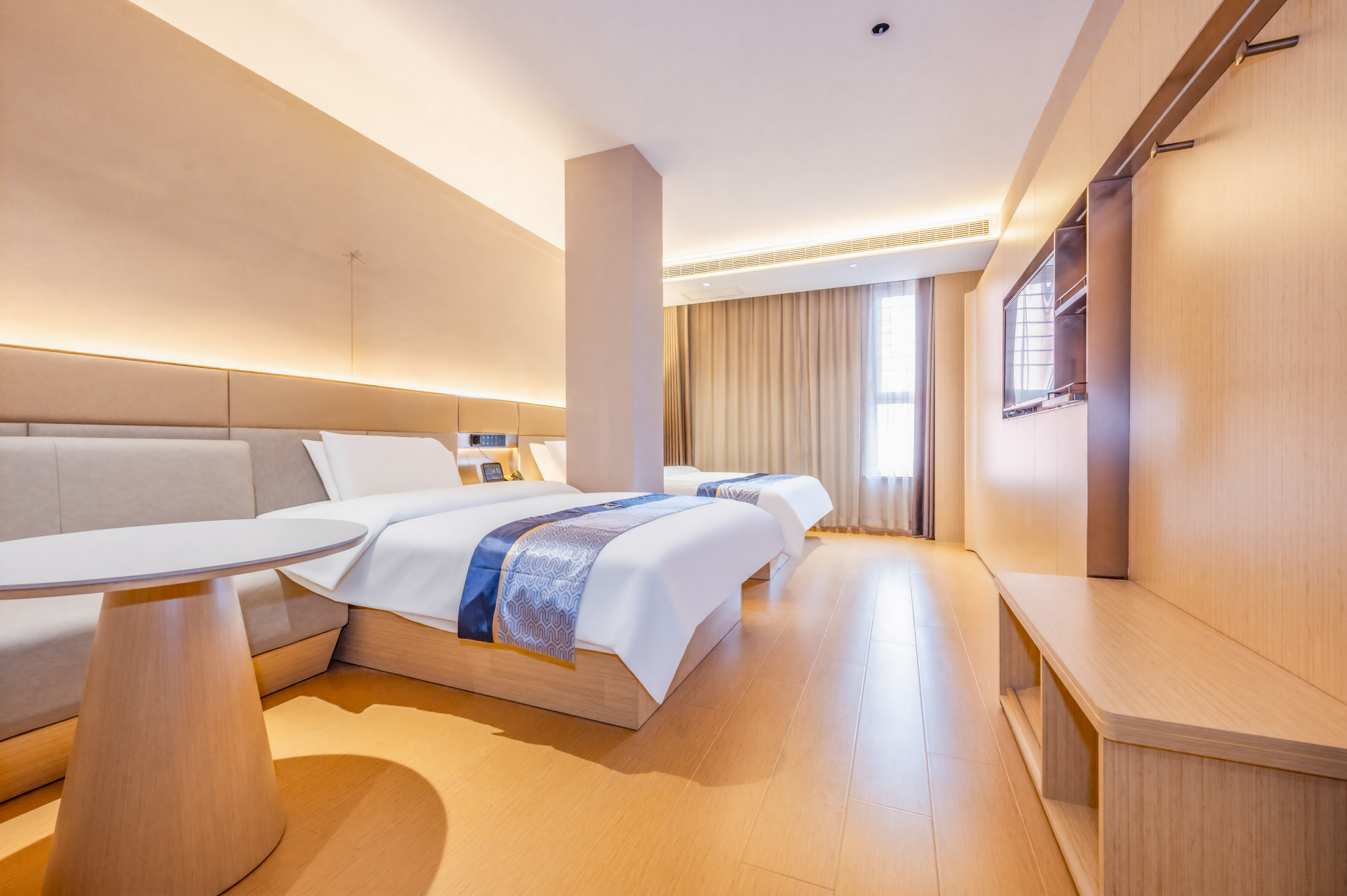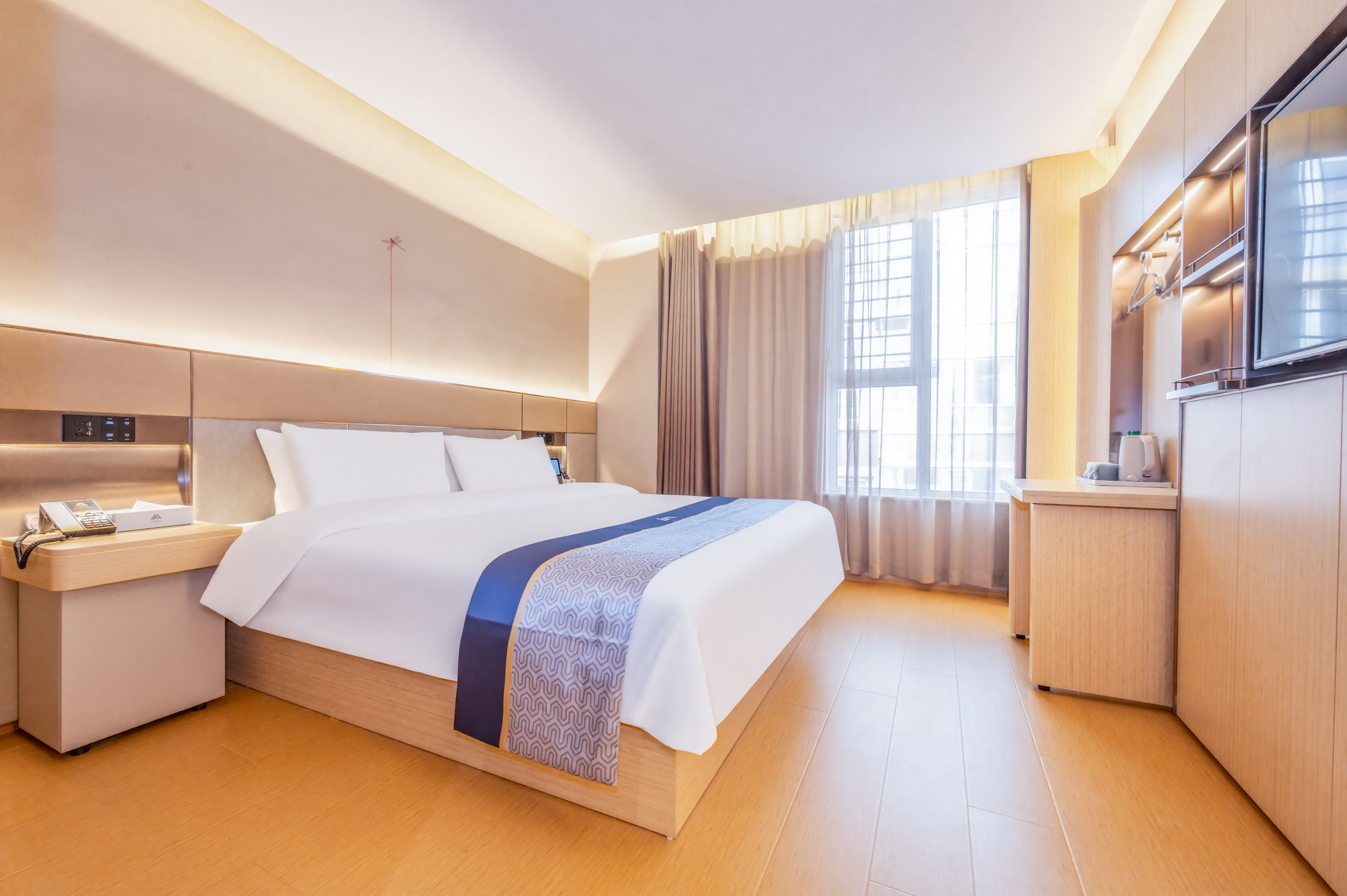 酒店地处小店区综改区真武路与正阳街交汇处,地处小店区CBD商圈,商贾云集。 [交通。便利]紧邻公交站870(直达火车站),距高铁南站及武宿国际机场12分钟车程。 [光纤。网络]公区全WIFI覆盖,每房独立WIFI,上限速度为7.23MB/秒,播放速度7.22MB/秒,缓冲速度7.23MB/秒,电信IPTV网络视频点播,卫视直播无需缓冲。 [周边。景点]距圆照寺步行2分钟,老车文化博物馆,巴克创奇梦工厂1.5公里,距晋祠博物馆18公里,程25分钟。 [娱乐。购物]距离通达商城,昌盛万达广场仅一条街之隔,距小吃一条街725米,万马仕商业中心步行8分钟。 [停车]酒店正门有多个VIP专属车位,后停车位多个; [医疗。健康]距离十七局医院,中心医院,小店区人民医院,车程约8分钟。 [商务。出差]距离江铃重汽,蒙牛乳业,富士康,九州通药业,康美徕医药,亚宝药业,比亚迪汽车有限公司,移动通信集团,联通通信集团,路程10分钟