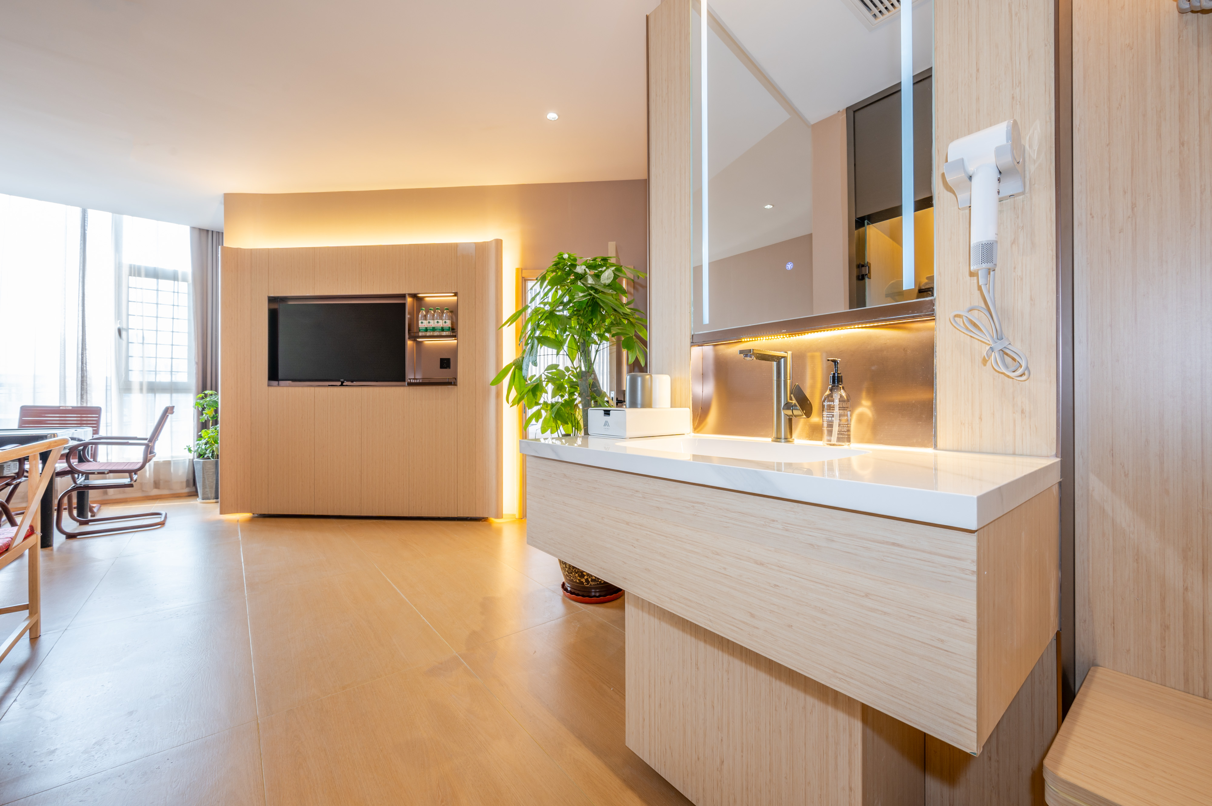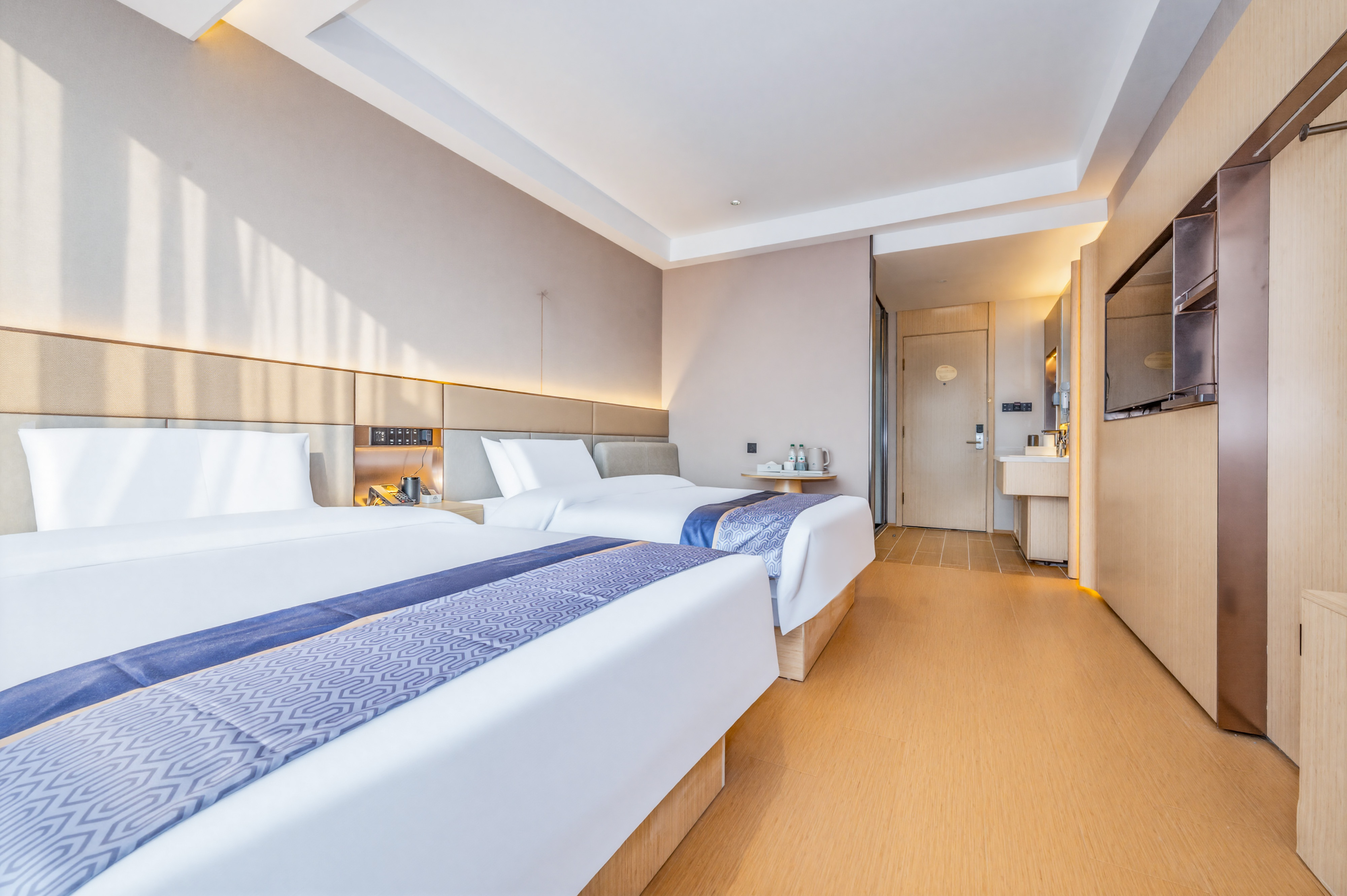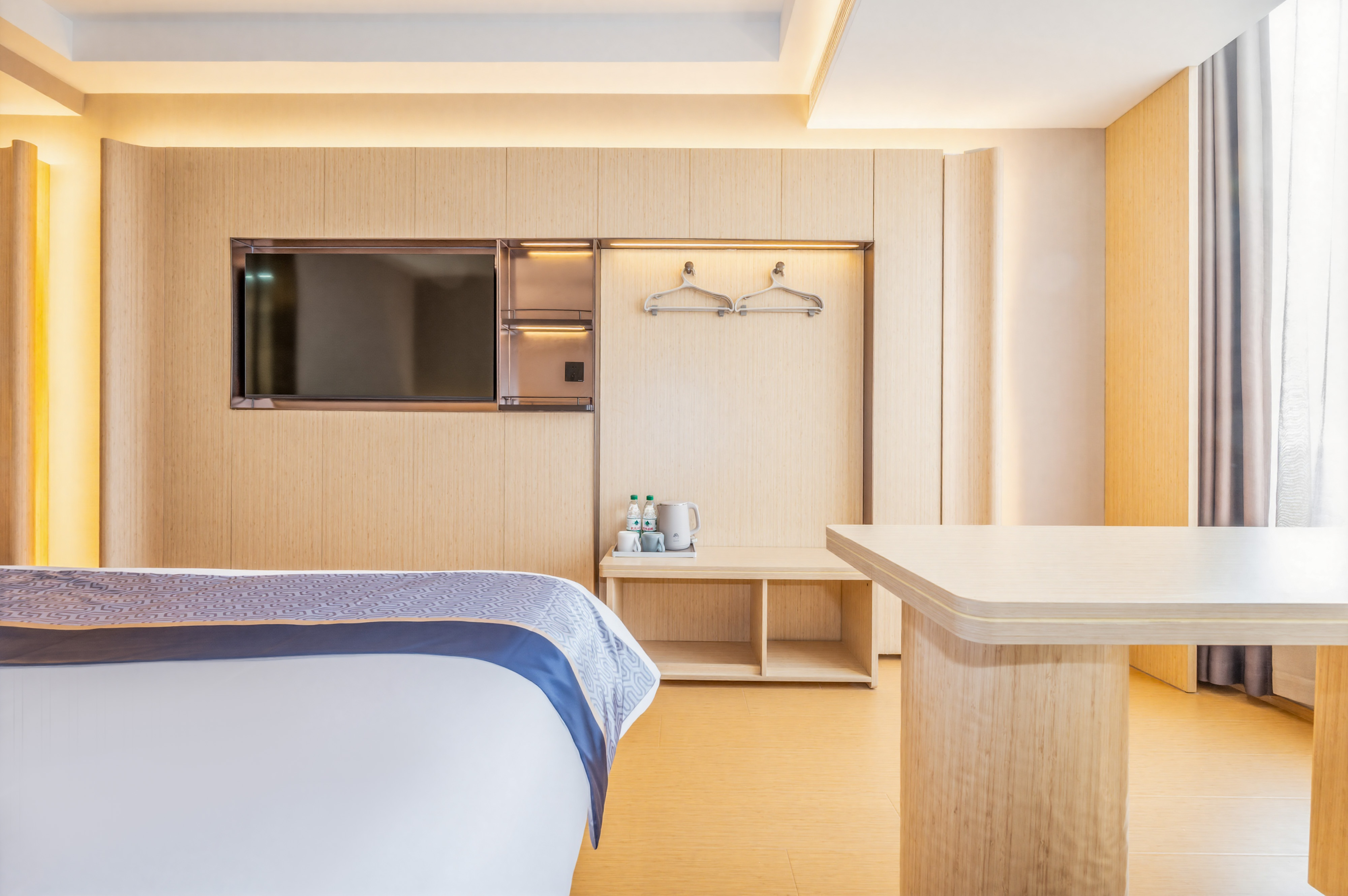 酒店地处小店区综改区真武路与正阳街交汇处,地处小店区CBD商圈,商贾云集。 [交通。便利]紧邻公交站870(直达火车站),距高铁南站及武宿国际机场12分钟车程。 [光纤。网络]公区全WIFI覆盖,每房独立WIFI,上限速度为7.23MB/秒,播放速度7.22MB/秒,缓冲速度7.23MB/秒,电信IPTV网络视频点播,卫视直播无需缓冲。 [周边。景点]距圆照寺步行2分钟,老车文化博物馆,巴克创奇梦工厂1.5公里,距晋祠博物馆18公里,程25分钟。 [娱乐。购物]距离通达商城,昌盛万达广场仅一条街之隔,距小吃一条街725米,万马仕商业中心步行8分钟。 [停车]酒店正门有多个VIP专属车位,后停车位多个; [医疗。健康]距离十七局医院,中心医院,小店区人民医院,车程约8分钟。 [商务。出差]距离江铃重汽,蒙牛乳业,富士康,九州通药业,康美徕医药,亚宝药业,比亚迪汽车有限公司,移动通信集团,联通通信集团,路程10分钟