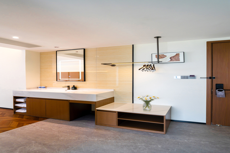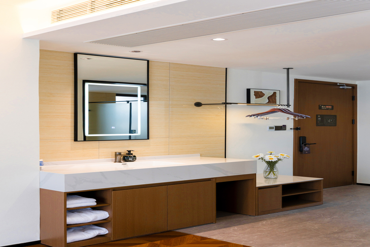 - 1.酒店不对公共区域进行禁烟,导致一直有人在走廊抽烟,烟味飘到房间里; 2.浴室未进行清洗,全是细小沙石; 3.房间设施一般,感觉东西像老的酒店留下来的,也没有智控,灯光也没有总成开关,不像是新酒店的样子(定位还是中高端); 4.房间装修完的气味也还在; 5.窗户无纱窗,有蚊虫; 6.优点就是房间面积较大,床也还算干净。 但是根据新开业的特价来说还算是中规中矩的水平,如果按原价来说就是不合适,感觉也不太符合中高端的定位,比如家NEO稍微好一点,没有如家精选的水平