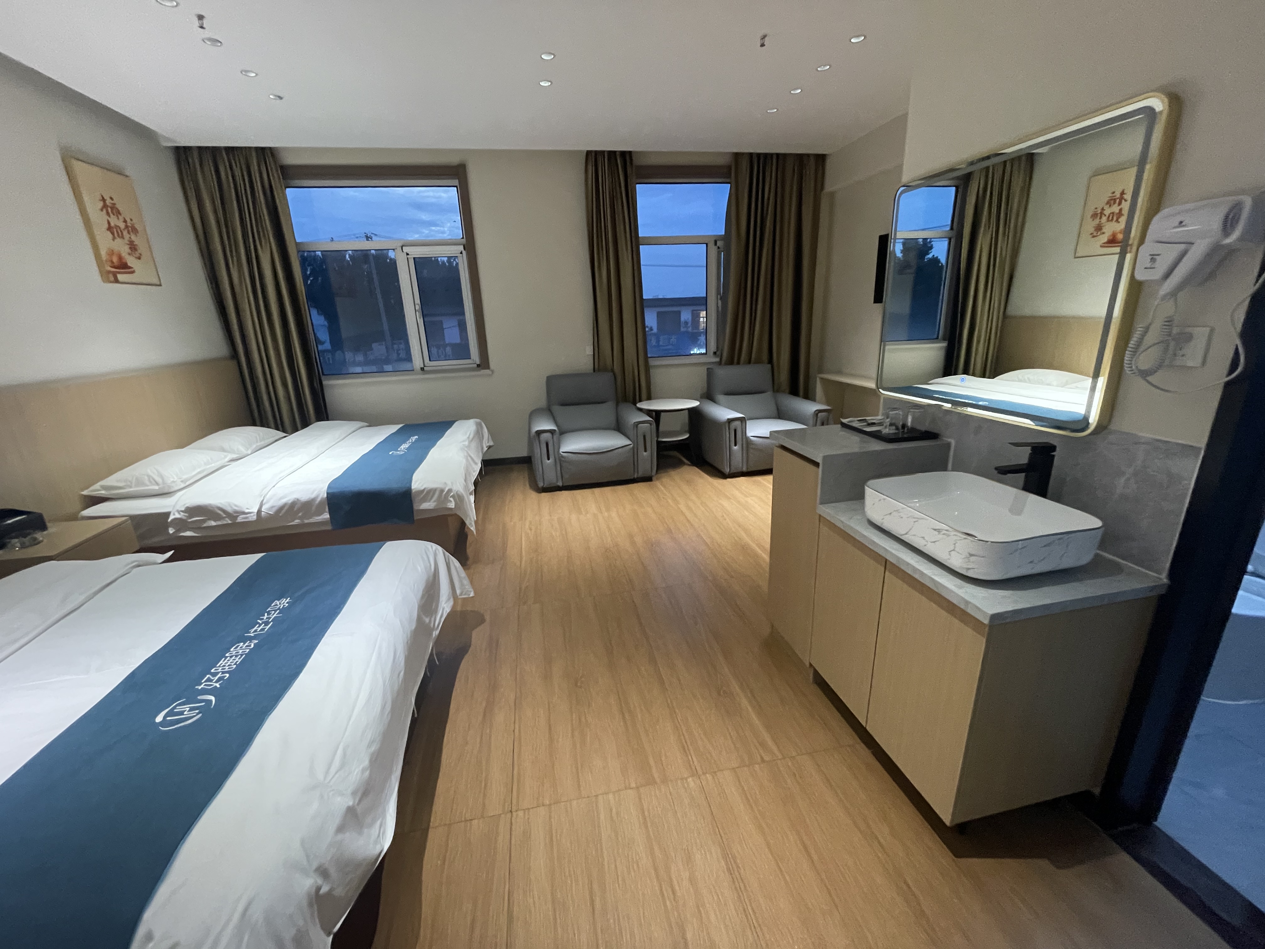 本酒店棣属于如家酒店集团旗下华驿酒店,位于山东省枣庄市薛城区薛城区永福中路329号,紧邻京沪高速出口两公里, 酒店环境优雅,停车方便,房型众多,巨幕影音房,电竞客房,家庭套房,房间都配有智能控制。装修非常有质感,充满魅力又不失居家般的随心舒适。客房内柔和的灯光、独特的家具设计和时尚的配色将您带入另一个美妙的世界。您可以自由地处理工作、尽情地放松娱乐。 本店让您出门在外也有家一般舒适、安心。 酒店是以现代简约元素打造,融合了年轻、时尚生活为主题,打造了多套风格客房,房间干净卫生、服务优质、设施配备齐全、床上棉品及卫生用品都是高水平处理、配备有24小时热水、高清电视还有24小时管家服务,您有任何问题可咨询前台,我们会马上为您解决,希望您在美丽的古城感受到别样的风格与温暖,期待您的入住!
