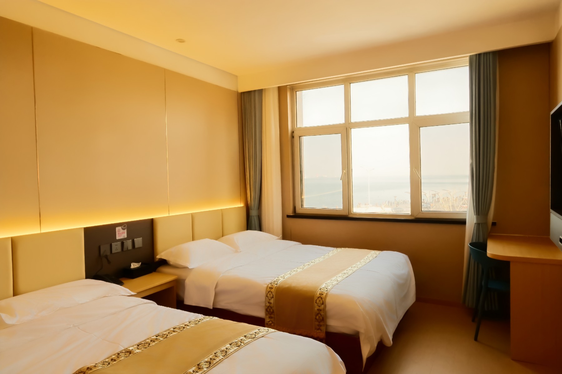 • 酒店位置无敌了,出门就是大海,沿着海岸线逛过去,蓝天白云大海,还有海鸥,美美的,心情都变好了,酒店新装修酒店,很干净卫生,条件很好,前台服务也很到位,耐心且热情。来烟台首选。