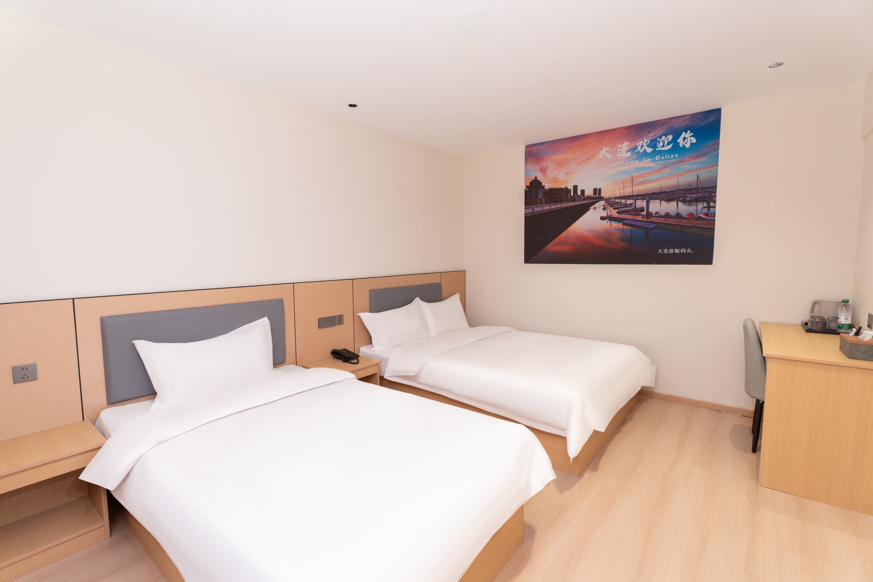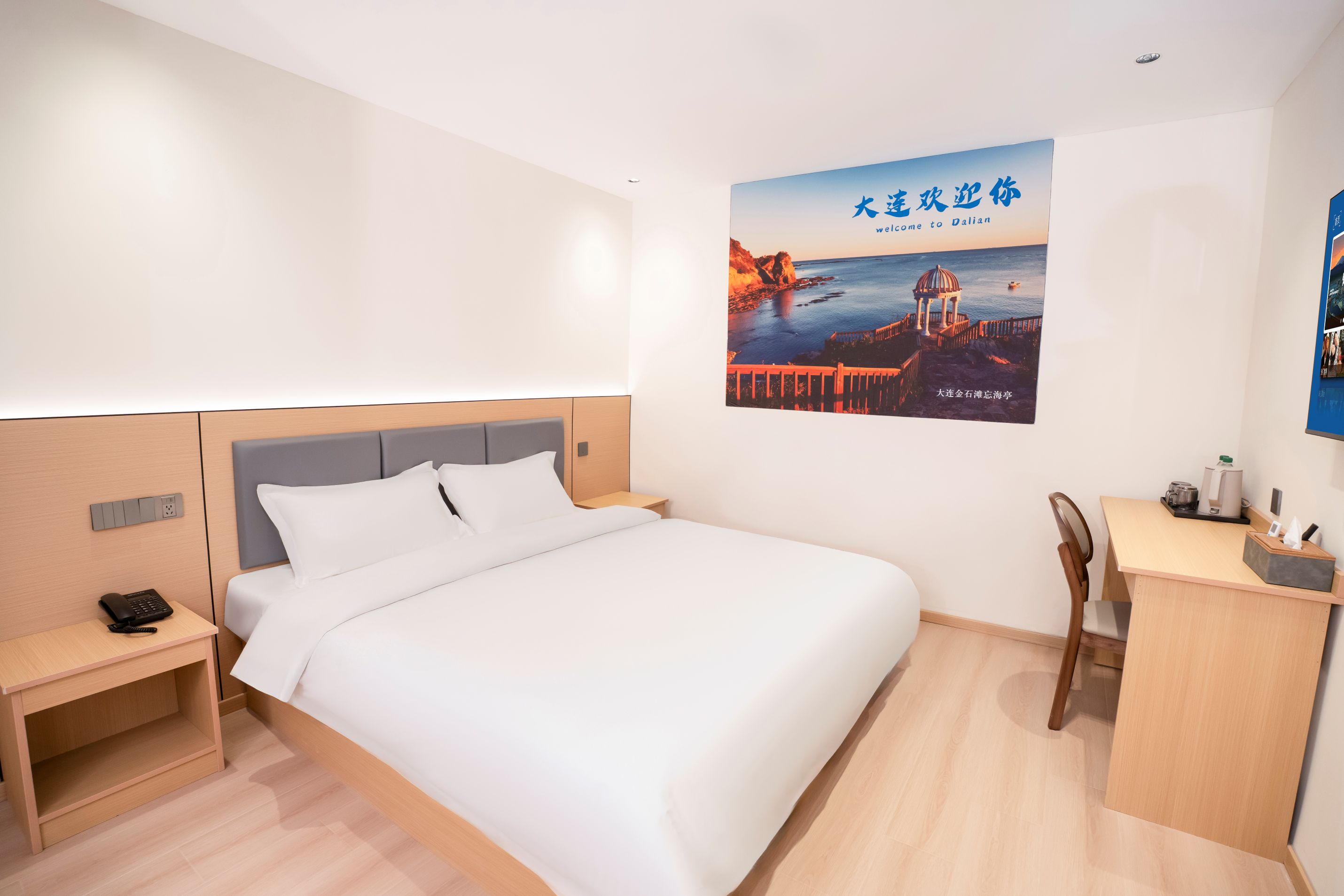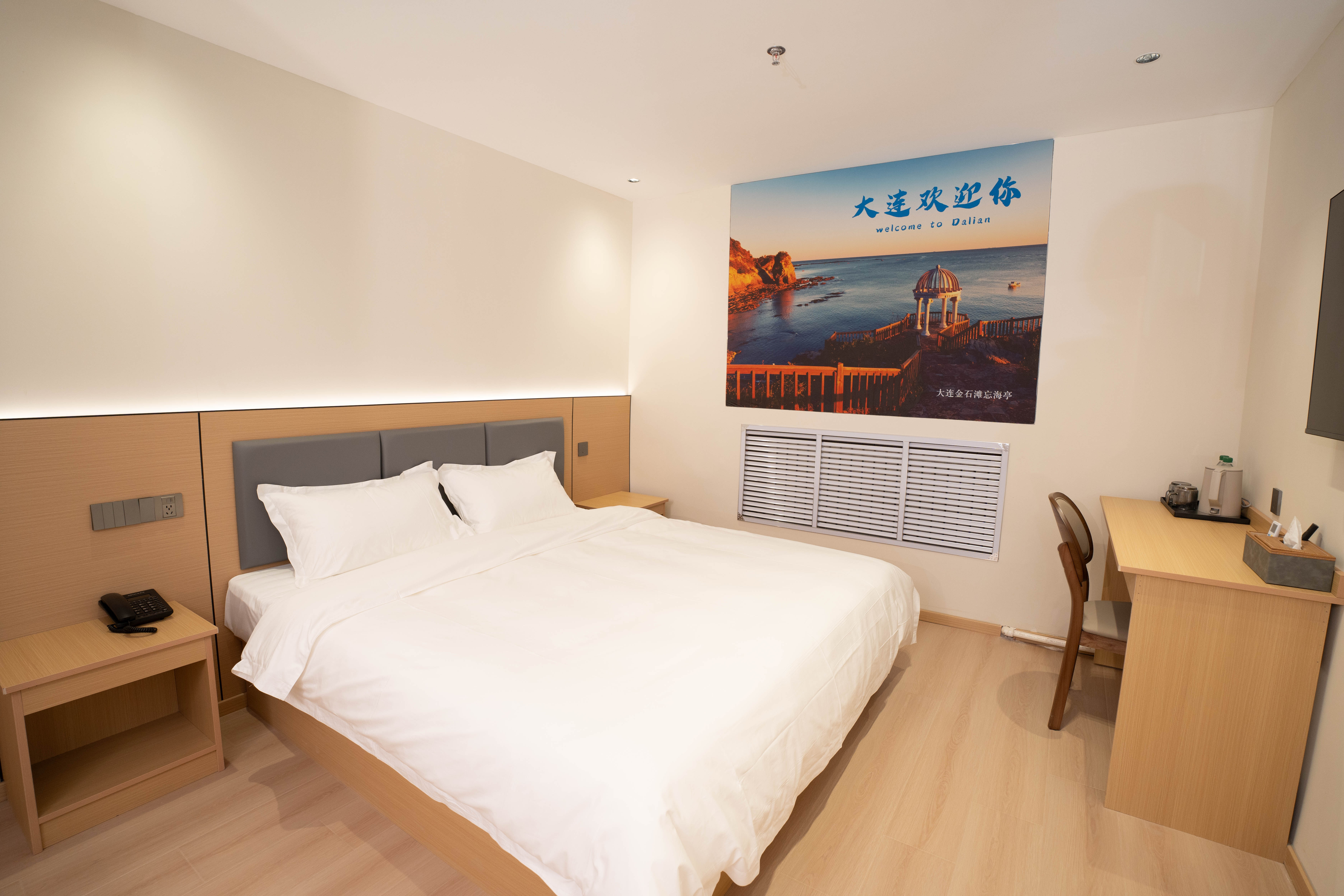 【酒店地址】 辽宁省大连市中山区大众街46号,出门沿大众街到港湾街直行1.2公里即达港湾广场地铁站,步行3分钟可达二七广场,距大连站约3.2公里,距大连周水子国际机场约15公里,出行四通八达。 【附近餐厅】 距品海楼(二七店)550米,大连地道海鲜风味十足,海胆水饺、清蒸鲍鱼口碑绝佳;距大连老菜馆(三八店)480米,本地家常烹饪娴熟,锅包肉外酥里嫩,咸鱼饼子风味独特。 【网红打卡】 距港东五街打卡点2.6公里,大连东港最具画面感的“通海大道”,全长1.5公里,坡路顺势入海,尽头可望巨轮驶过,是新晋网红打卡地;距中山广场约2公里,百年欧式建筑群落,尽显大连城市浪漫风情。 【附近景区】 距东港威尼斯水城2.8公里,欧式水城夜景璀璨,乘船游览氛围感十足;东港音乐喷泉广场1.8公里,吹着东港的海风,看着水柱随着音乐高低起伏,这一刻的大连真的好温柔; 【附近商场】 距凯丹广场1.0公里,潮流餐饮、休闲娱乐一站式体验;距大连时代广场1.5公里,轻奢品牌齐聚;距新玛特购物广场(中山店)3.6公里,本地人气商超,日用百货齐全。 【交通出行】 距地铁2号线港湾广场站约700米,步行10分钟,可换乘1/3号线通达全城;距大连站3.2公里,打车10分钟即达;距大连北站13.5公里,地铁2号线换乘1号线便捷直达。 【酒店服务】 华驿酒店二七广场东港会议中心店房间配备一次性洗漱用品、一次性拖鞋,纯棉吸水毛巾、浴巾、防滑地垫,给您便捷舒适的入住体验;所有房间均有独立走廊窗户,通风良好,部分房型可窗览城市街景;无论您是游客出行、商务差旅、亲子出游,全体员工都热忱欢迎您的光临。