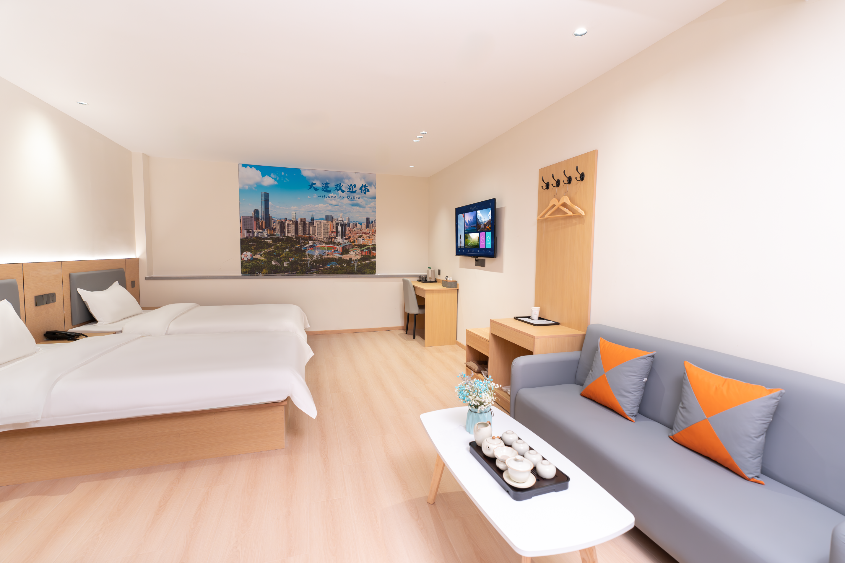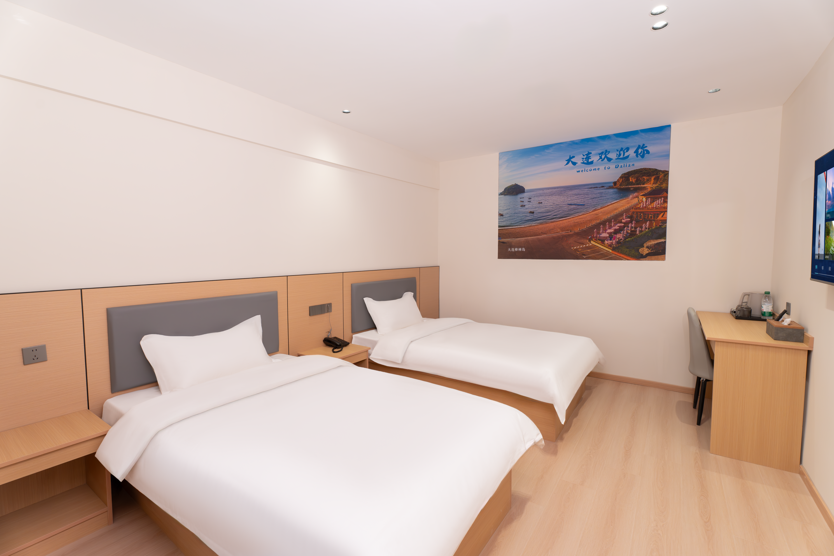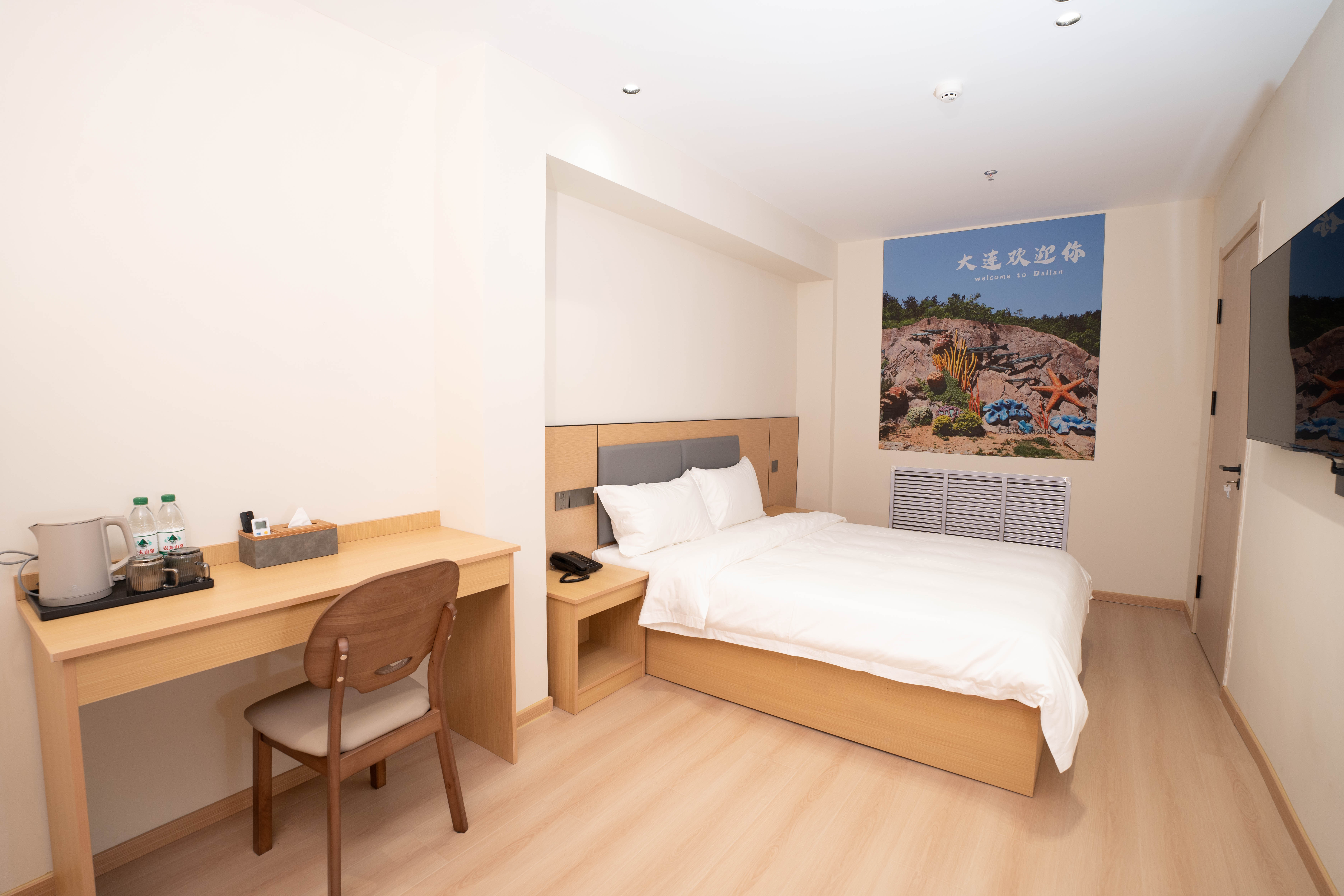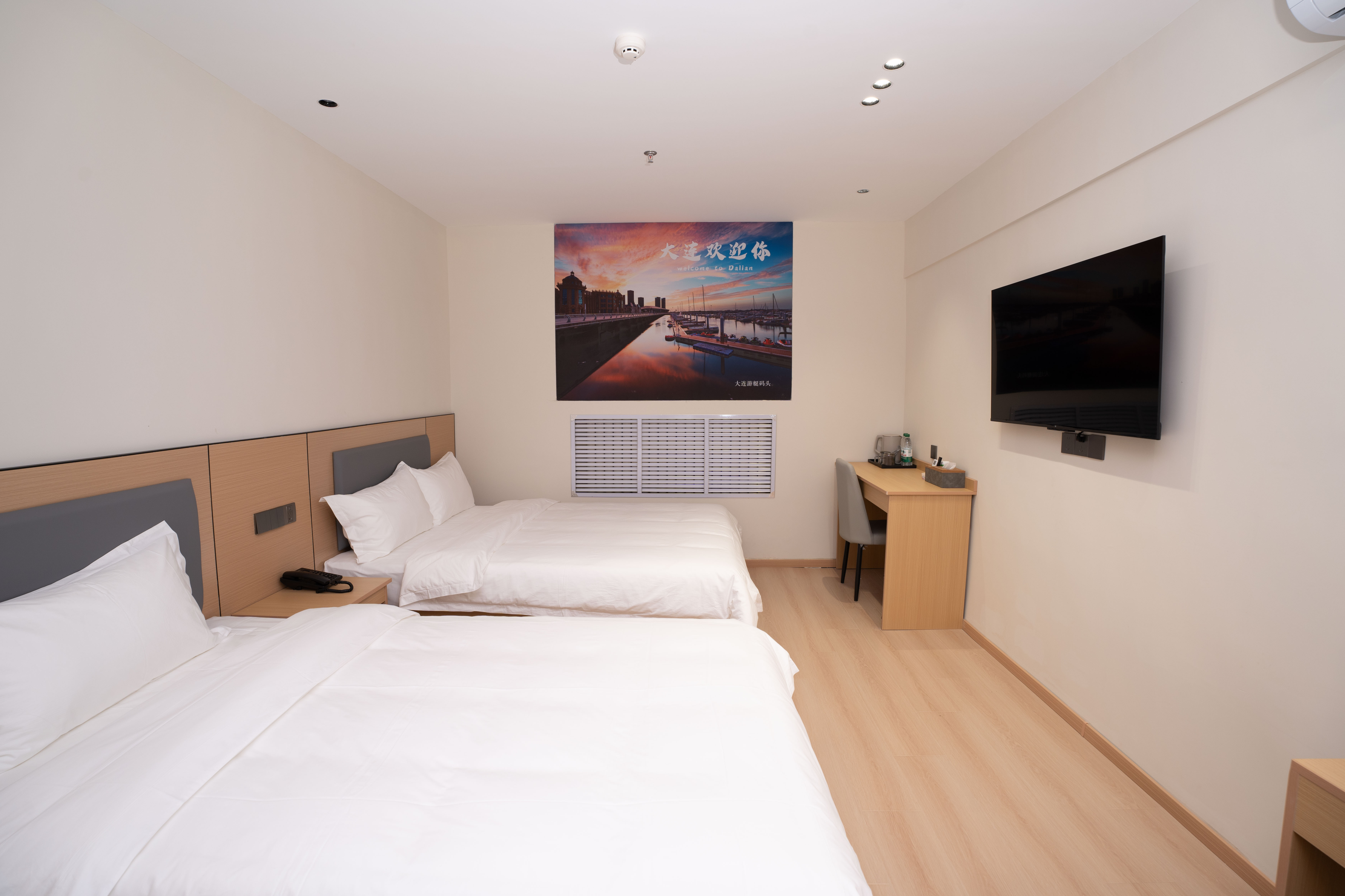 【酒店地址】 辽宁省大连市中山区大众街46号,出门沿大众街到港湾街直行1.2公里即达港湾广场地铁站,步行3分钟可达二七广场,距大连站约3.2公里,距大连周水子国际机场约15公里,出行四通八达。 【附近餐厅】 距品海楼(二七店)550米,大连地道海鲜风味十足,海胆水饺、清蒸鲍鱼口碑绝佳;距大连老菜馆(三八店)480米,本地家常烹饪娴熟,锅包肉外酥里嫩,咸鱼饼子风味独特。 【网红打卡】 距港东五街打卡点2.6公里,大连东港最具画面感的“通海大道”,全长1.5公里,坡路顺势入海,尽头可望巨轮驶过,是新晋网红打卡地;距中山广场约2公里,百年欧式建筑群落,尽显大连城市浪漫风情。 【附近景区】 距东港威尼斯水城2.8公里,欧式水城夜景璀璨,乘船游览氛围感十足;东港音乐喷泉广场1.8公里,吹着东港的海风,看着水柱随着音乐高低起伏,这一刻的大连真的好温柔; 【附近商场】 距凯丹广场1.0公里,潮流餐饮、休闲娱乐一站式体验;距大连时代广场1.5公里,轻奢品牌齐聚;距新玛特购物广场(中山店)3.6公里,本地人气商超,日用百货齐全。 【交通出行】 距地铁2号线港湾广场站约700米,步行10分钟,可换乘1/3号线通达全城;距大连站3.2公里,打车10分钟即达;距大连北站13.5公里,地铁2号线换乘1号线便捷直达。 【酒店服务】 华驿酒店二七广场东港会议中心店房间配备一次性洗漱用品、一次性拖鞋,纯棉吸水毛巾、浴巾、防滑地垫,给您便捷舒适的入住体验;所有房间均有独立走廊窗户,通风良好,部分房型可窗览城市街景;无论您是游客出行、商务差旅、亲子出游,全体员工都热忱欢迎您的光临。
