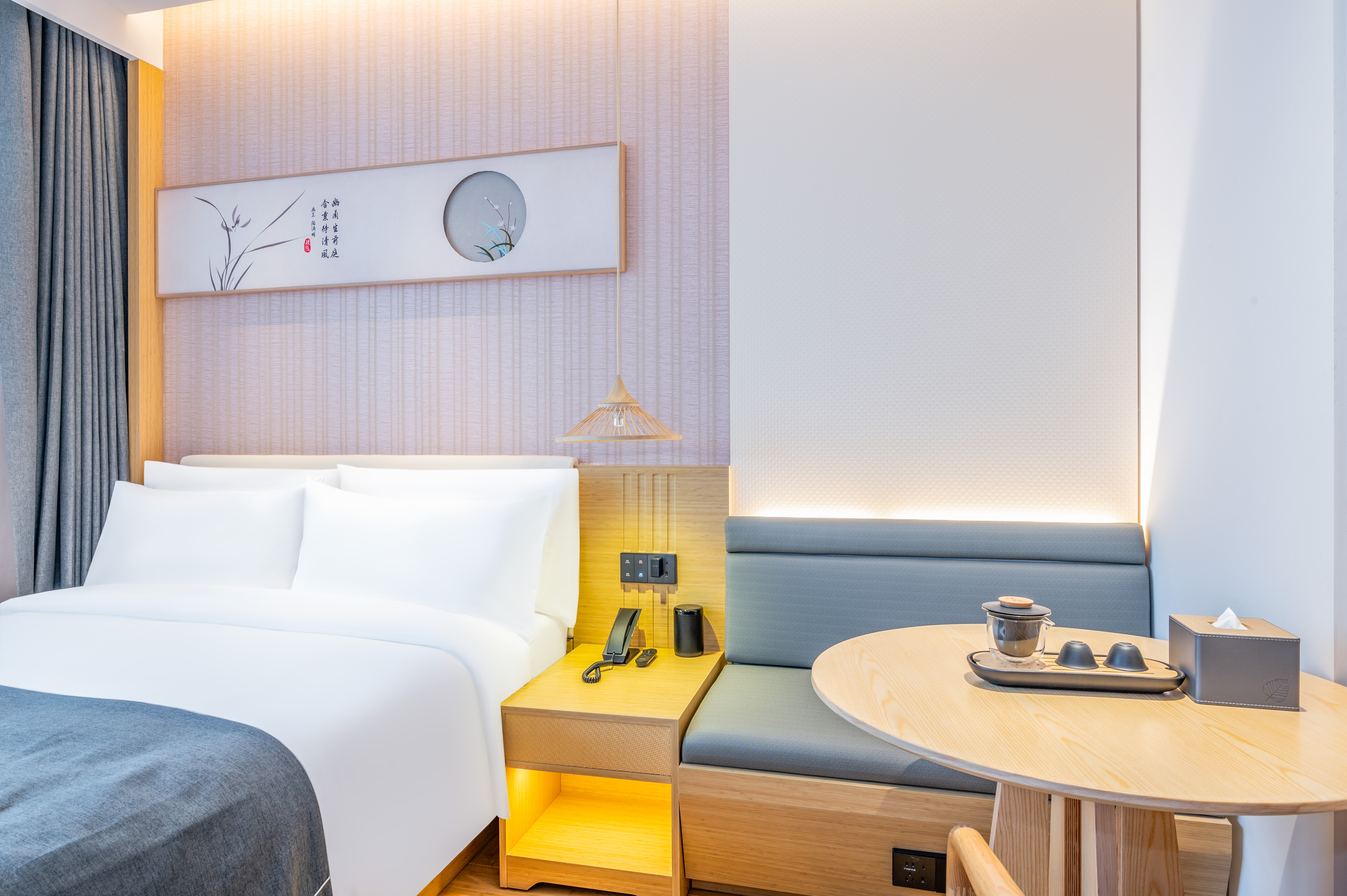 建国璞隐酒店(HIDDEN HOTEL)——“城市隐逸空间”,旨在在您频繁的旅行中,打造“居善地以调养身心”的生活新体验。 建国璞隐酒店取自自然的原材,以璞玉般温润的服务,于拥挤的城市中开辟一片暂时躲开繁杂,调养身心的空间。在璞隐,让您从呼吸、饮食、睡眠、阅读、影像、运动、情绪疏导等多方面,获取生命里的天真之乐。恰似中国山水的留白,阴阳相济虚实相生,气韵充盈生动。璞隐酒店渴望让您——“在行走间,为自己留白”。 建国璞隐-北京国贸双井地铁站店,是首旅如家旗下中高端酒店,拥有客房179间,酒店餐厅、会议室、健身房及自助洗衣房服务设施齐全。地处于东三环国贸双井商圈核心,酒店所处的双井地段,堪称交通的黄金枢纽。东三环主干道近在咫尺,公交网络纵横交错,多条公交线路在周边停靠,轻松畅达城市各处。若您钟情于地铁出行,几步之遥便是地铁10号线与7号线的换乘站——双井站。搭乘这两条地铁线,无论是去历史底蕴深厚的故宫、天安门,还是奔赴中关村、金融街等商务核心区,都能高效抵达。北京潘家园古玩城和眼镜城、龙潭湖公园、天坛公园更是步行可达,让您的出行便捷又从容。 建国璞隐酒店周边配套丰富,生活所需一应俱全。购物休闲方面,富力广场、合生汇、乐成中心等大型购物中心环绕,满足您的购物欲;逛累了,还有众多美食等您品尝,地道京味小吃与各国风味佳肴琳琅满目,让味蕾开启环球之旅。银行、药店、便利店等生活服务设施星罗棋布,为您的日常生活提供全方位保障。 酒店的最大亮点,是其高层客房带来的震撼景观体验。楼层高,视野开阔,透过窗户,繁华的国贸全景尽收眼底。白天,能将林立的高楼大厦、车水马龙的街道收入眼帘;夜晚,华灯初上,国贸被璀璨灯光点亮,霓虹闪烁,如梦如幻的夜景令人陶醉,为您的旅途增添一份浪漫与惬意。 在建国璞隐-北京国贸双井地铁站店,无论是商务出行还是休闲度假,都能尽享便捷与舒适,收获难忘的京城之行。爱在京城,住在璞隐!