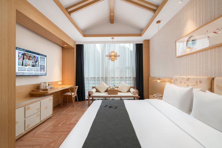 建国璞隐(西安钟楼永宁门王府井店)作为首旅如家旗下中高端品牌,秉承“城市隐逸空间”理念,将简约美学与中国文化底蕴相融合,致力于为行旅之人打造一处回归自然、静享安宁的住宿空间,让每一次停留都成为一段心灵留白的旅程。 酒店坐落于碑林区南关正街66号王府井百货南馆7层,拥有129间精心设计的客房,囊括幽篁居、清莲居大床房与甘棠居套房,为不同品味的旅客提供理想居所。旅居体验不止于宿,从中式养生早餐,到氧吧、茶吧、瑜伽室等多元设施,再到会议室与自助洗衣房,我们以悉心考量的多维场景,为您营造周全而优雅的旅途时光。 酒店地处西安文化核心区域,毗邻永宁门,紧靠钟楼商圈,周边聚集SKP、王府井百货等高端商业综合体。信步可达明城墙、护城河、碑林博物馆与书院门,感受历史脉动;轻松漫步即至钟楼、鼓楼,品味回民街地道美食;亦可踱步探访小雁塔,穿越古今意境。约4公里外的大唐不夜城与“长安十二时辰”主题街区,再现盛世长安气象;酒店门外即可欣赏南门迎宾广场《梦长安—大唐迎宾盛礼》的华美演出。公共交通便捷,距地铁2号线及公交站仅2分钟步程,可快速抵达高铁站,并轻松换乘城际铁路直达机场,是您沉浸古今、尽览长安风华的理想下榻之所。