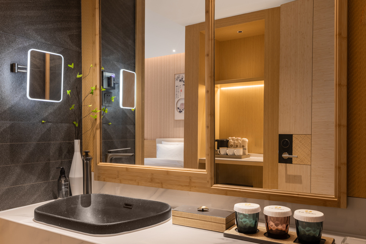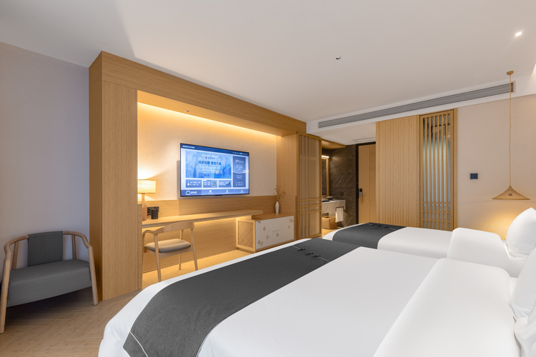 建国璞隐品牌,起源于拥有辉煌历史的北京建国饭店,目前属于首旅酒店集团旗下的高端酒店品牌。一花一世界、一叶一菩提;返璞归真,隐于自然。作为中式经典酒店的原创之作,旨在在您频繁的旅行中,打造“居善地以养身心”的生活新体验。建国璞隐衡水枣强店位于衡水市枣强县北外环路(枣强宝桂园房地产项目),交通十分便利,毗邻枣强商业中心新天地、信誉楼百货,距离枣强县汽车站驾车仅需8分钟车程,距离枣强县火车站驾车9分钟车程,距离衡水北站驾车仅需40分钟车程,酒店距离282省道驾车仅需3分钟。作为枣强县新的地标建筑,大堂最高挑高近8米,尽显奢华设计风格。大堂吧、中餐厅、24h健身房、24h洗衣房、会议室、停车场、充电桩等配套设施齐全,可承接各类大中型会议。酒店硬件设施优良,全屋智能化设计,梦百合零压系列床品。酒店还供应精致的养生健康早餐,以四季相对应的养生食材与五谷相结合,以谷养生,吃出健康,回归古人养生之道。 闲暇之余可以尽情享受中国空调博物馆、枣强董子公园、衡水湖等旅游景点,相信建国璞隐酒店将是您商务旅游休闲的首选之地。我们立足于省内标杆、华北一流的服务定位,努力打造衡水市枣强县新地标,引领都市潮流新风尚。