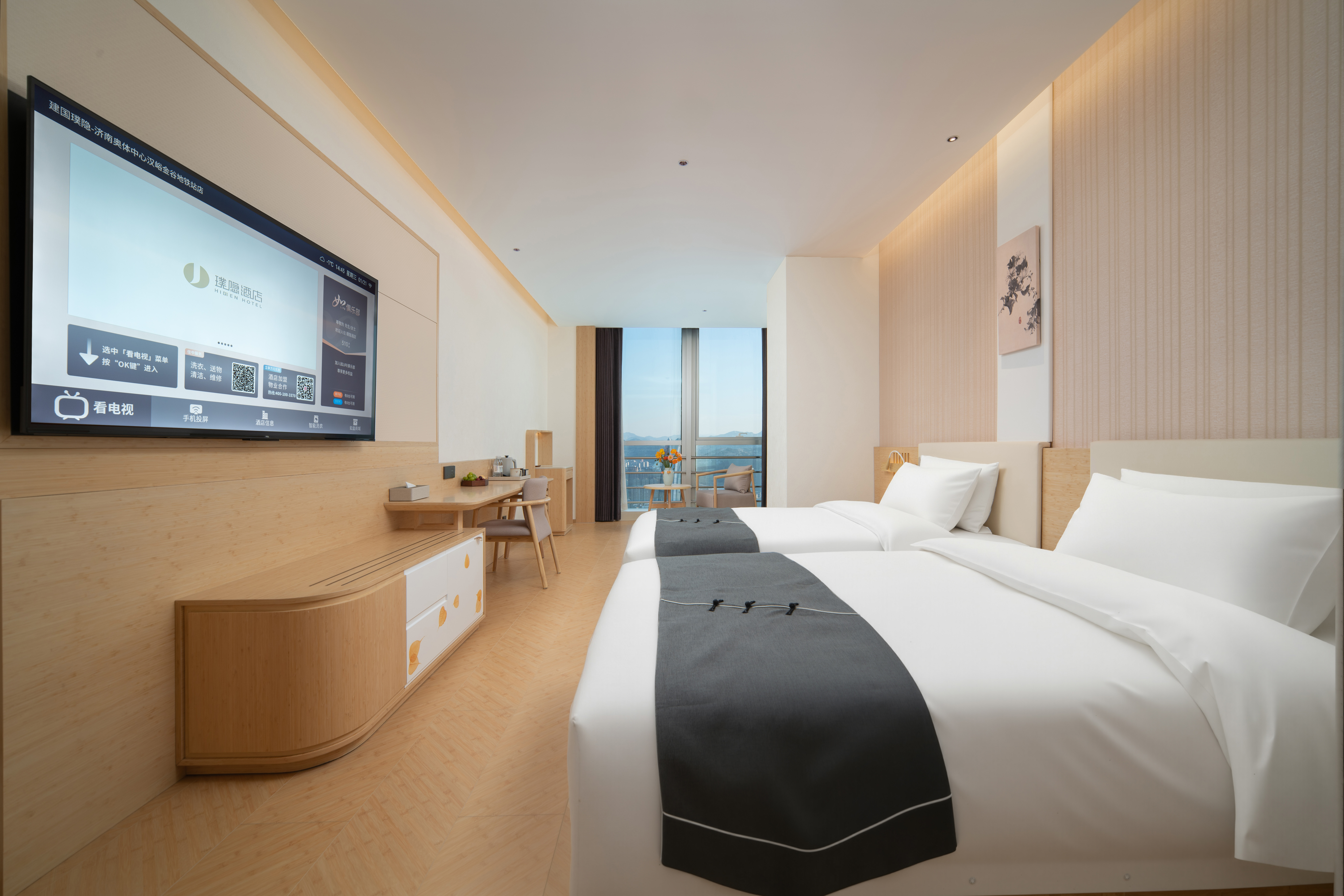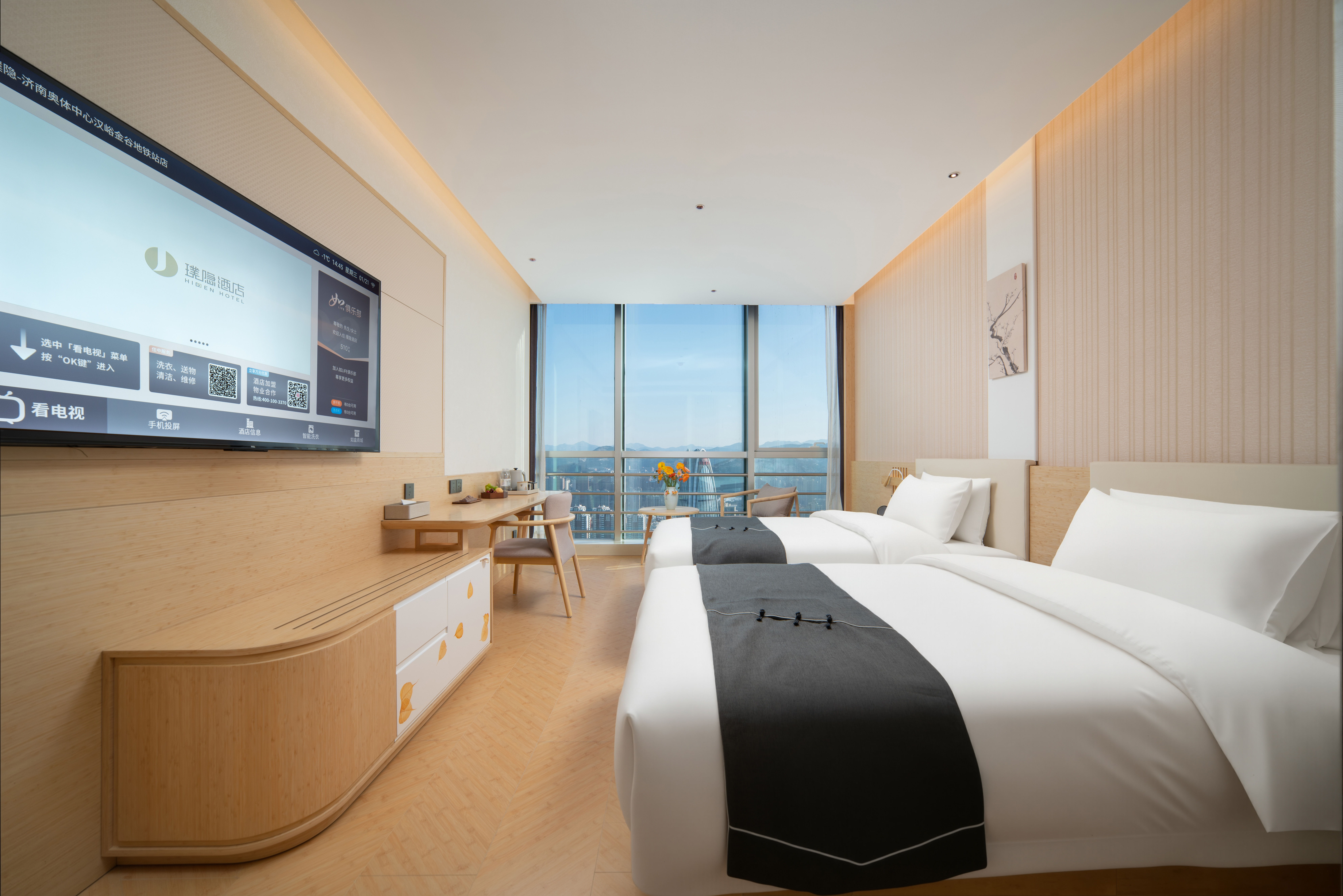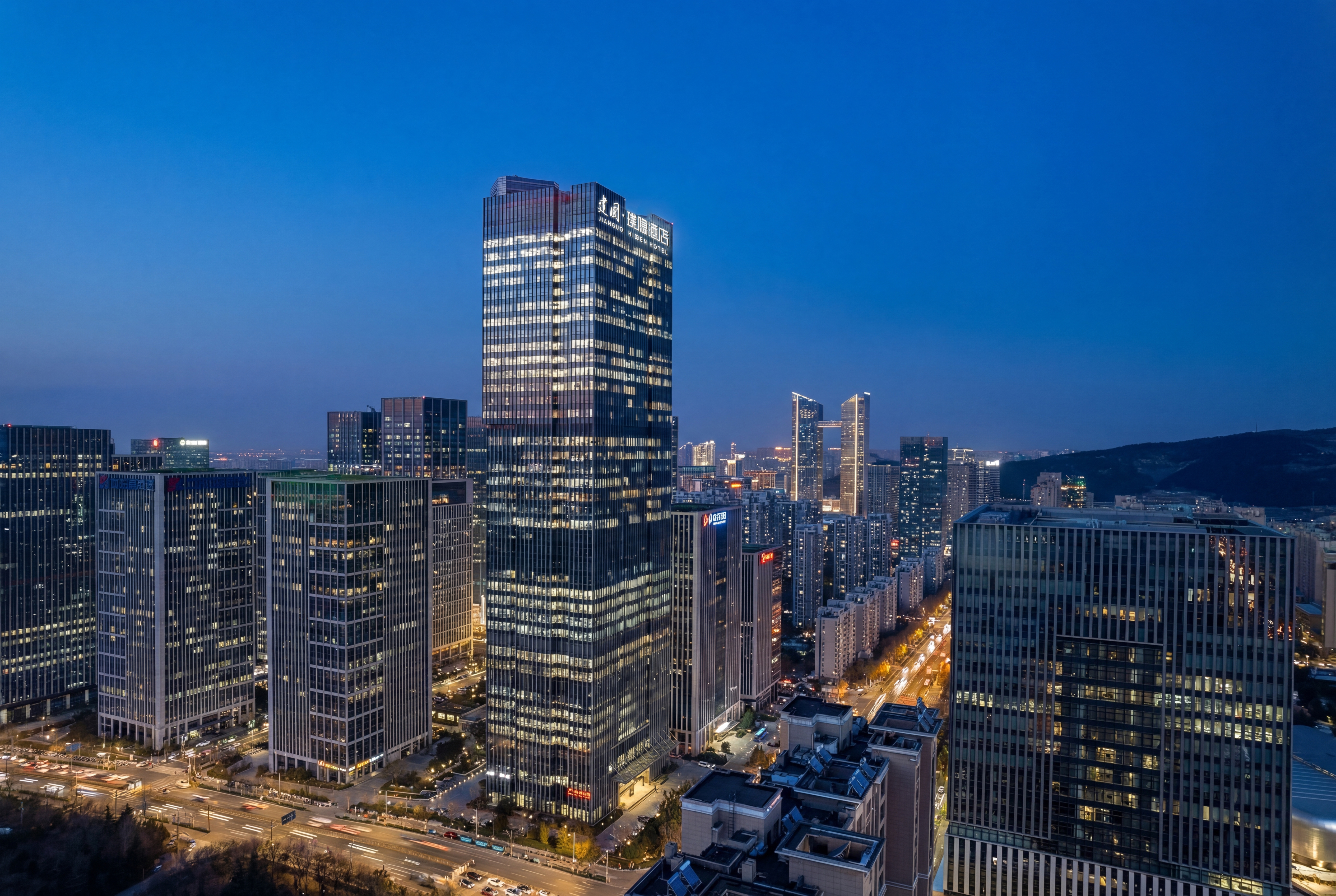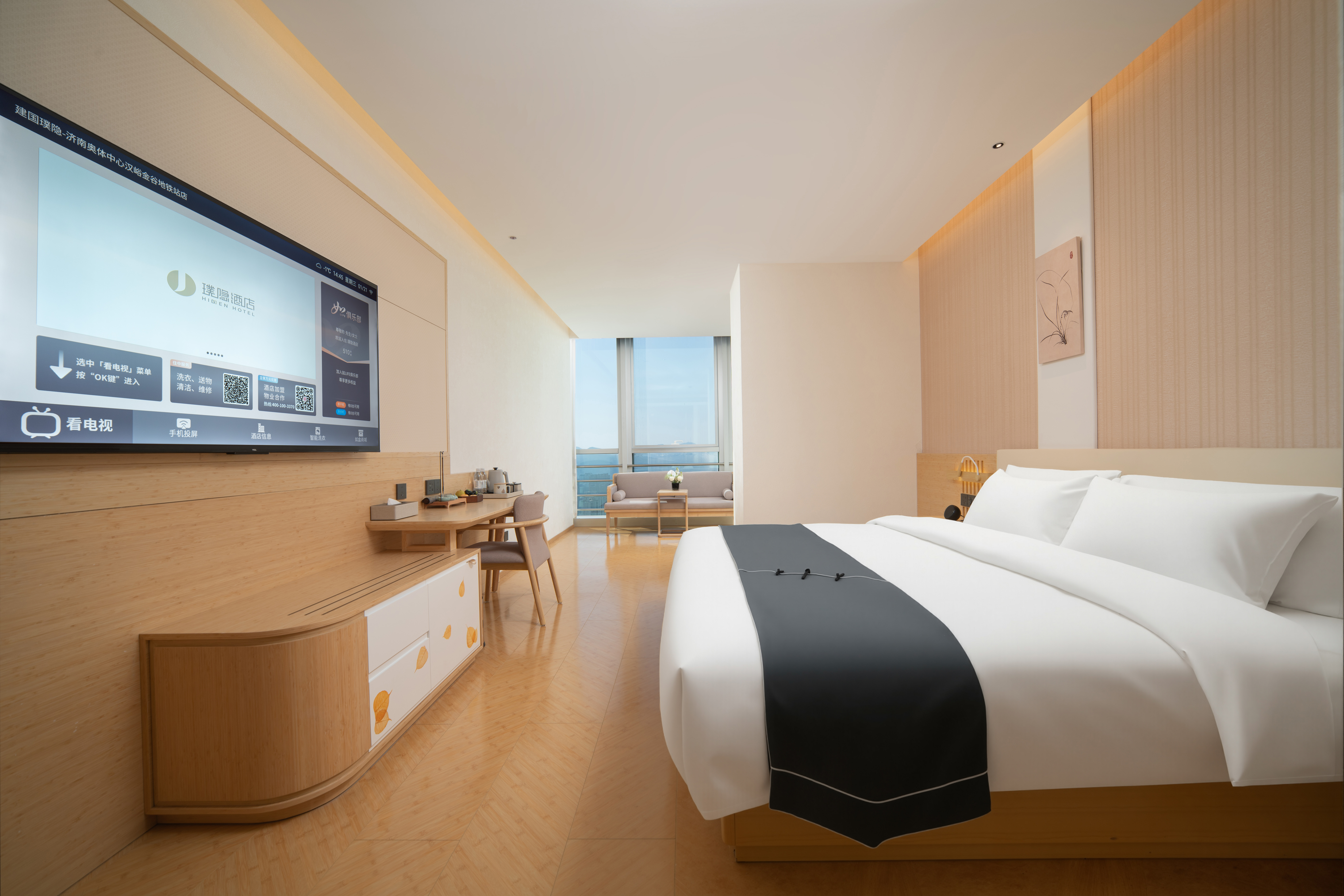 建国·璞隐-济南奥体中心汉峪金谷店,坐落于济南东部奥体政务与金融双核心板块,紧邻汉峪金谷金融商务区,东邻济南奥林匹克体育中心,南接龙奥大厦政务核心区,北靠济南国际金融城,周边汇聚众多高端写字楼、企业总部及大型商业综合体。 酒店客房位于41至45层,可俯瞰城市天际线,感受泉城全景。 前往奥体中心仅需8分钟车程;步行5分钟即可到达地铁4号线舜泰广场站;乘坐地铁4号线换乘3号线可途径济南东站直达济南遥墙国际机场,驾车半小时可达东站、遥墙机场;距离济南西站28公里地铁4号线直达,驾车40分钟,便捷交通多元化交通方式覆盖商务出行与休闲旅游全场景。 雅韵栖心,悦享泉城。济南建国璞隐酒店融合泉城文化元素与东方美学设计,尽显雅致格调与静谧质感。特色餐厅、24小时健身房、自助洗衣房、多功能会议厅、专属停车场设施一应俱全,可精准承接商务洽谈、大中型会议、政企接待及家庭旅居等多元需求。 闲暇之余,您可漫步奥体中心感受运动活力,探访龙奥公园亲近自然,或前往万象城、恒隆广场畅享购物乐趣,亦可奔赴趵突泉、大明湖领略泉城千年底蕴,可北望莲花山,探访汉武帝行宫遗址与“宫山夕照”古景,体验济南历史文化底蕴。相信建国·璞隐-济南奥体中心汉峪金谷店,将成为您济南之行商务办公、休闲度假的优选居所。 酒店以“返璞归真,大隐于世”为理念,为商务与休闲旅客提供静谧居停之所。
