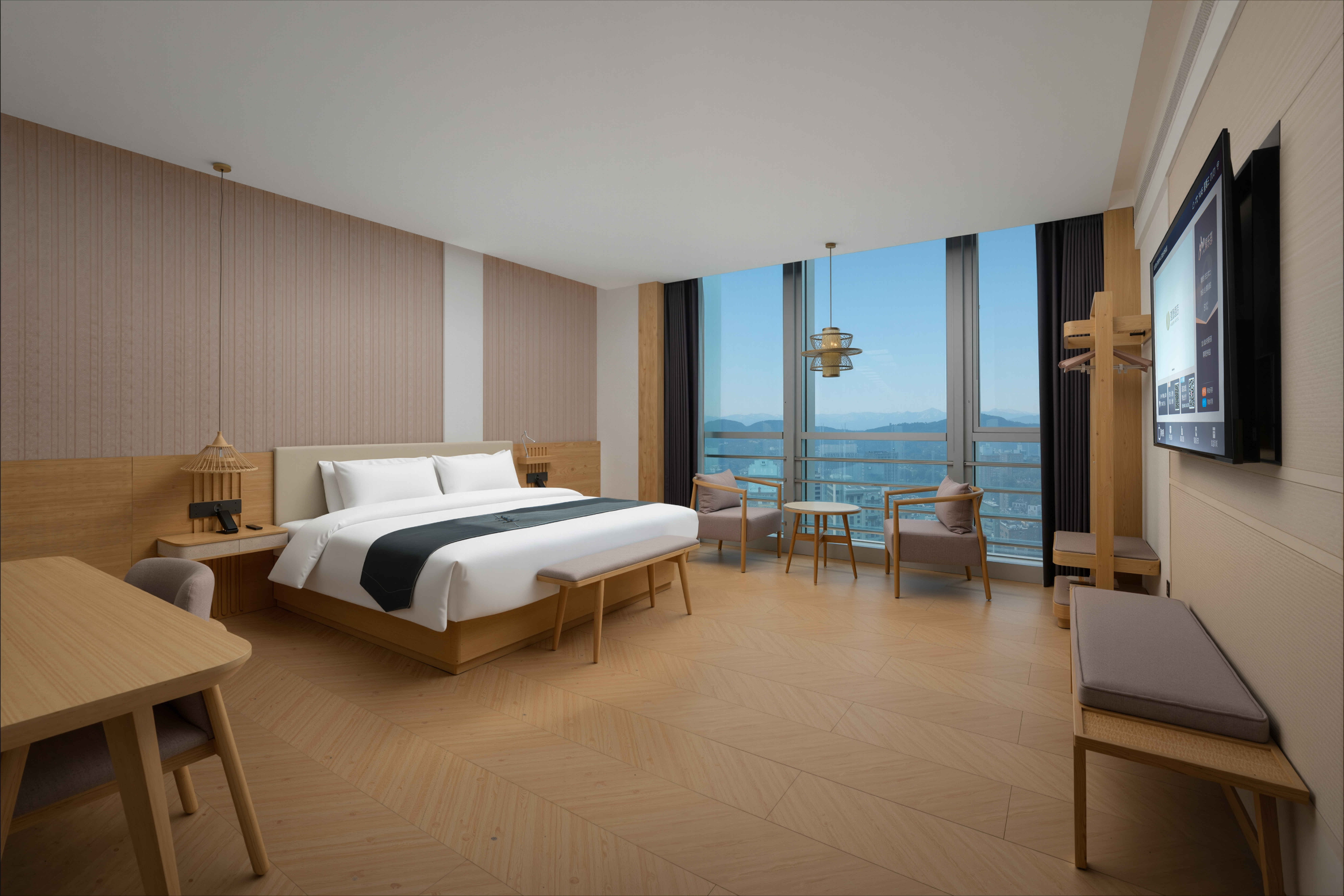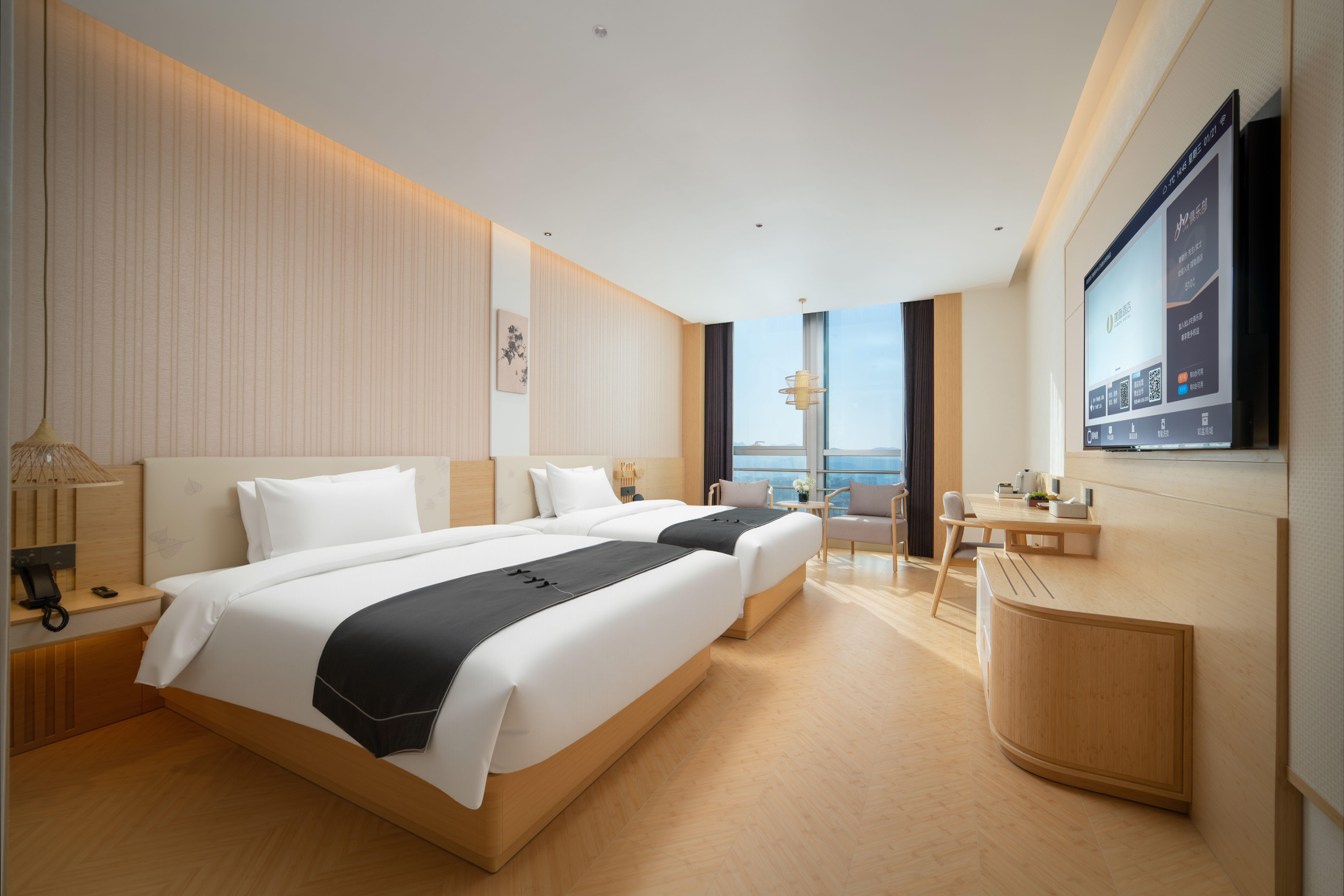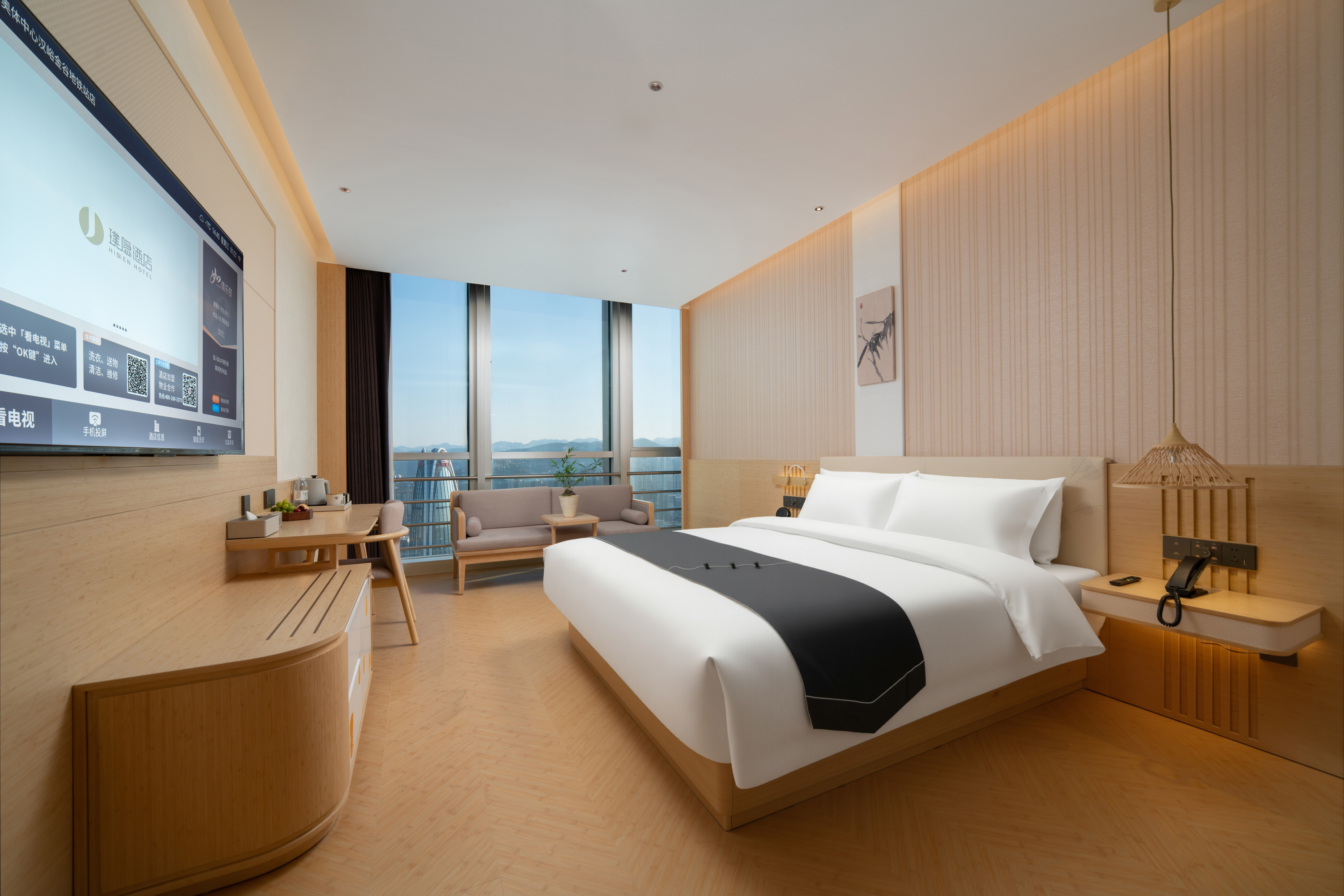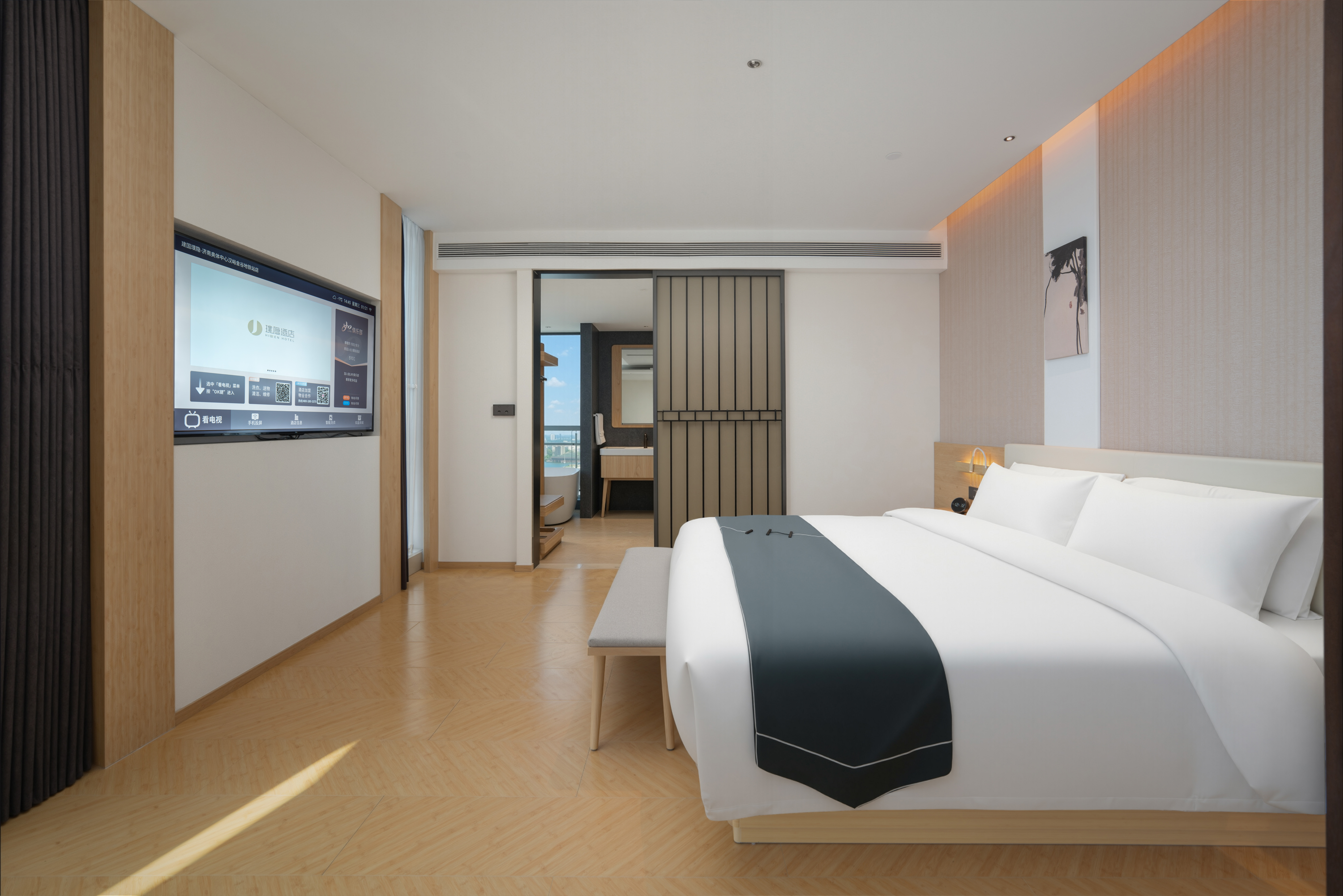建国·璞隐-济南奥体中心汉峪金谷店,坐落于济南东部奥体政务与金融双核心板块,紧邻汉峪金谷金融商务区,东邻济南奥林匹克体育中心,南接龙奥大厦政务核心区,北靠济南国际金融城,周边汇聚众多高端写字楼、企业总部及大型商业综合体。 酒店客房位于41至45层,可俯瞰城市天际线,感受泉城全景。 前往奥体中心仅需8分钟车程;步行5分钟即可到达地铁4号线舜泰广场站;乘坐地铁4号线换乘3号线可途径济南东站直达济南遥墙国际机场,驾车半小时可达东站、遥墙机场;距离济南西站28公里地铁4号线直达,驾车40分钟,便捷交通多元化交通方式覆盖商务出行与休闲旅游全场景。 雅韵栖心,悦享泉城。济南建国璞隐酒店融合泉城文化元素与东方美学设计,尽显雅致格调与静谧质感。特色餐厅、24小时健身房、自助洗衣房、多功能会议厅、专属停车场设施一应俱全,可精准承接商务洽谈、大中型会议、政企接待及家庭旅居等多元需求。 闲暇之余,您可漫步奥体中心感受运动活力,探访龙奥公园亲近自然,或前往万象城、恒隆广场畅享购物乐趣,亦可奔赴趵突泉、大明湖领略泉城千年底蕴,可北望莲花山,探访汉武帝行宫遗址与“宫山夕照”古景,体验济南历史文化底蕴。相信建国·璞隐-济南奥体中心汉峪金谷店,将成为您济南之行商务办公、休闲度假的优选居所。 酒店以“返璞归真,大隐于世”为理念,为商务与休闲旅客提供静谧居停之所。