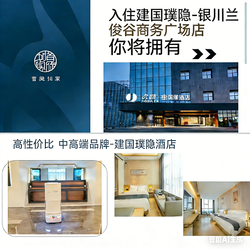 建国·璞隐酒店隶属于首旅如家集团旗下中高端品牌。 酒店设计遵从“城市隐逸空间”的理念,取自自然的原材,以璞玉般温润的服务,于拥挤的城市中开辟一片暂时躲开繁杂,调养身心的空间,打造宾至如归的心灵归属感。 酒店位于银川市兴庆区丽景北街与国商南路兰溪谷商务广场,出行交通便利,生活配套设施齐全。毗邻银川繁华商业街区-阅彩城、悦海新天地、吾悦广场、万达广场等商圈。距离机场高速一公里,门口公交车可直达市中心、机场、火车站和银川著名旅游景点西部影视城、沙湖及网红打卡地怀远观光夜市等。酒店5分钟车程即可到达宝丰医院。15分钟到达鼓楼步行街、新华百货CCmall、王府井百货。周边餐饮配套设施齐全,有各类网红小吃,满足您和家人休闲娱乐购物等需求。 酒店设有餐厅、健身房、瑜伽室、会议室、洗熨烘干自助洗衣房及超大阅读会友书吧,为您提供一个自在、放松的居停空间。阅读、休憩、充电、放松,银川建国·璞隐酒店致力于服务精细化,惊喜化,多元化特为您配备了专业的宾客服务大使,贴心为您提供高标准细致化专业服务。是您商务出行及旅游的上佳选择“游贺兰黄河,享城市隐逸”,建国璞隐酒店欢迎您下榻。