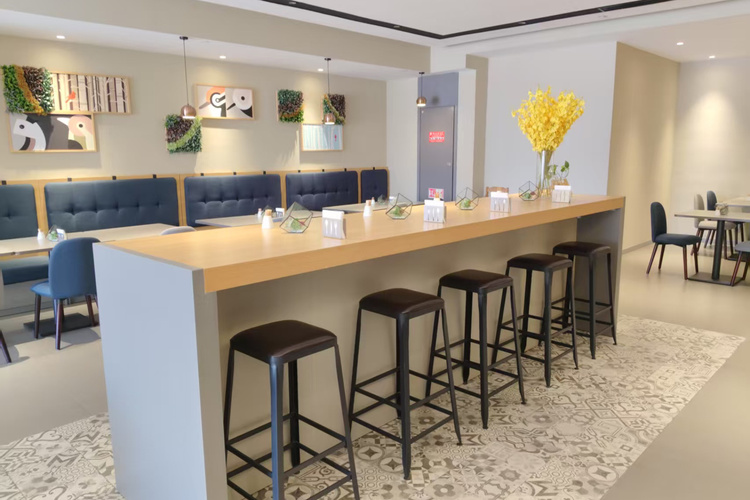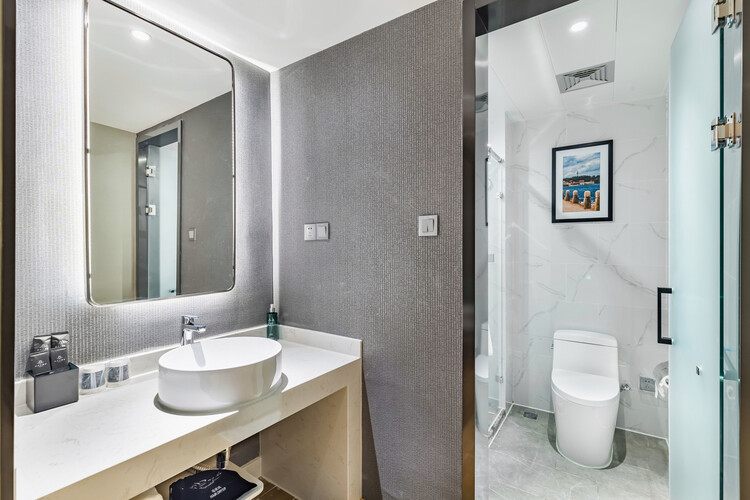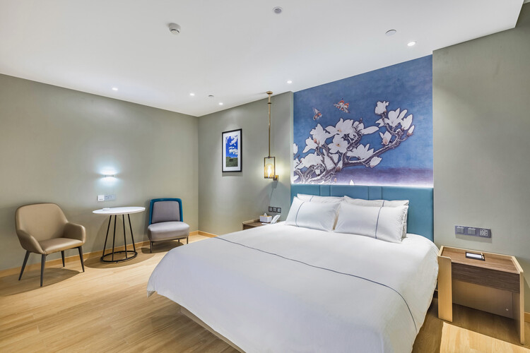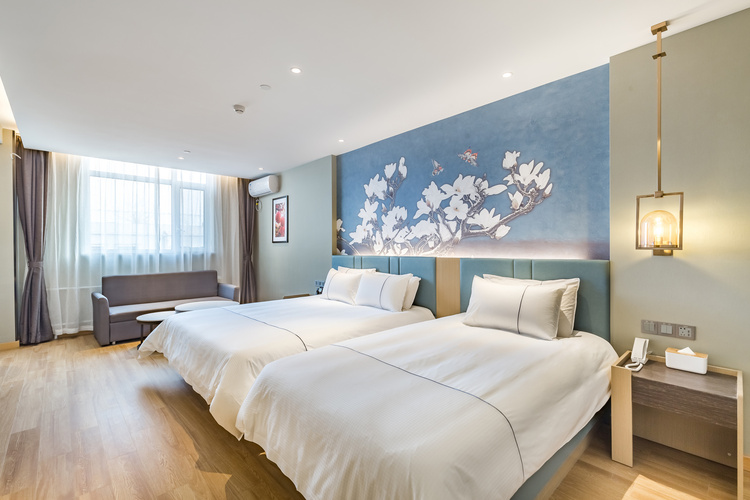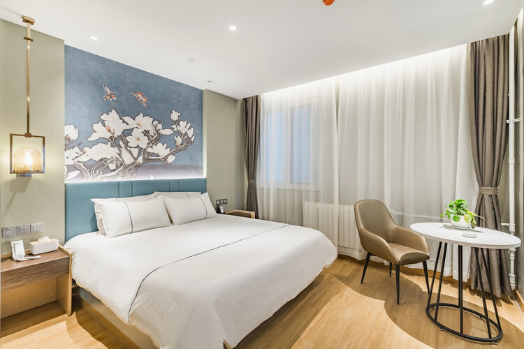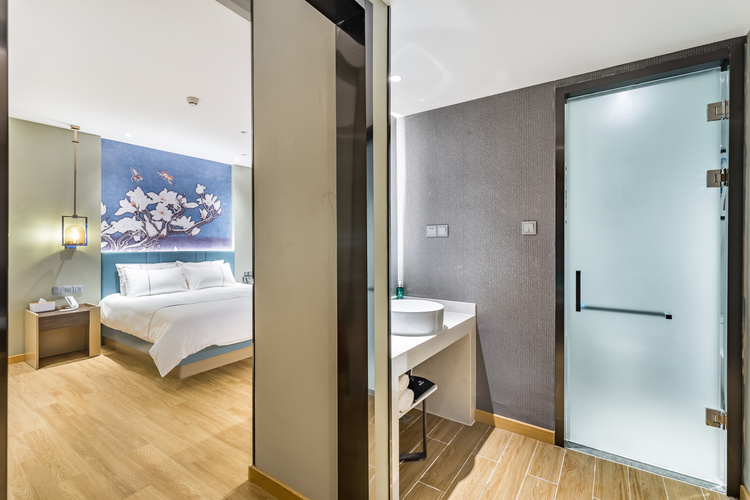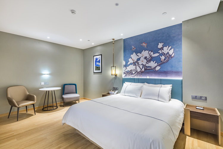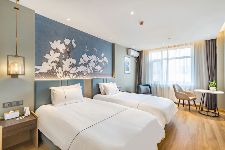 酒店地处烟台莱山区核心商圈,周边商务、旅游、购物、餐厅等设施众多,交通便利。 酒店距离银座购物商城、宝龙广场300米; 烟台振华购物商厦600米; 烟台市人民政府、毓璜顶莱山分院、佳世客、莱山万象汇约5-8分钟车程; 烟台大学、滨州医学院烟台校区、烟台山医院东院区、烟台国际博览中心、烟台国际会展中心、烟台体育馆、烟大小吃街、烟大海水浴场,约10分钟车程; 山东工商行学院、烟台理工学院、黄海明珠、虞美人广场、高铁南站约10-15分钟车 烟台海昌鲸鲨海洋公园、第二海水浴场、海昌渔人码头、千与千寻铁轨,月亮湾、栈桥、东炮台公园约18分钟车程; 酒店配有大型免费停车场,设有近百个车位,内设会议室,配备大型LED高清电视、投影等会议设备,拥有可接待100多人多媒体会议厅,并可提供会议餐服务。 酒店设计采取时尚简约的欧式装修风格,让您在商务和出游之余享受到淡雅清新、舒适静谧的休闲时光。——便捷交通·品质商旅·舒心体验