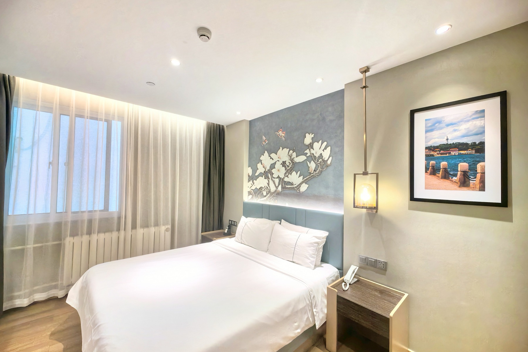 酒店地处烟台莱山区核心商圈,周边商务、旅游、购物、餐厅等设施众多,交通便利。 酒店距离银座购物商城、宝龙广场300米; 烟台振华购物商厦600米; 烟台市人民政府、毓璜顶莱山分院、佳世客、莱山万象汇约5-8分钟车程; 烟台大学、滨州医学院烟台校区、烟台山医院东院区、烟台国际博览中心、烟台国际会展中心、烟台体育馆、烟大小吃街、烟大海水浴场,约10分钟车程; 山东工商行学院、烟台理工学院、黄海明珠、虞美人广场、高铁南站约10-15分钟车 烟台海昌鲸鲨海洋公园、第二海水浴场、海昌渔人码头、千与千寻铁轨,月亮湾、栈桥、东炮台公园约18分钟车程; 酒店配有大型免费停车场,设有近百个车位,内设会议室,配备大型LED高清电视、投影等会议设备,拥有可接待100多人多媒体会议厅,并可提供会议餐服务。 酒店设计采取时尚简约的欧式装修风格,让您在商务和出游之余享受到淡雅清新、舒适静谧的休闲时光。——便捷交通·品质商旅·舒心体验