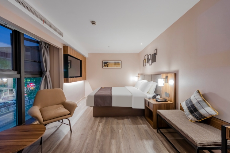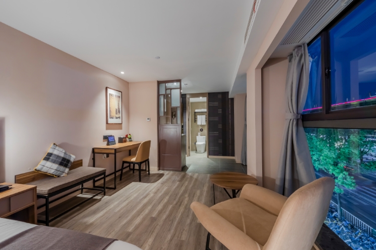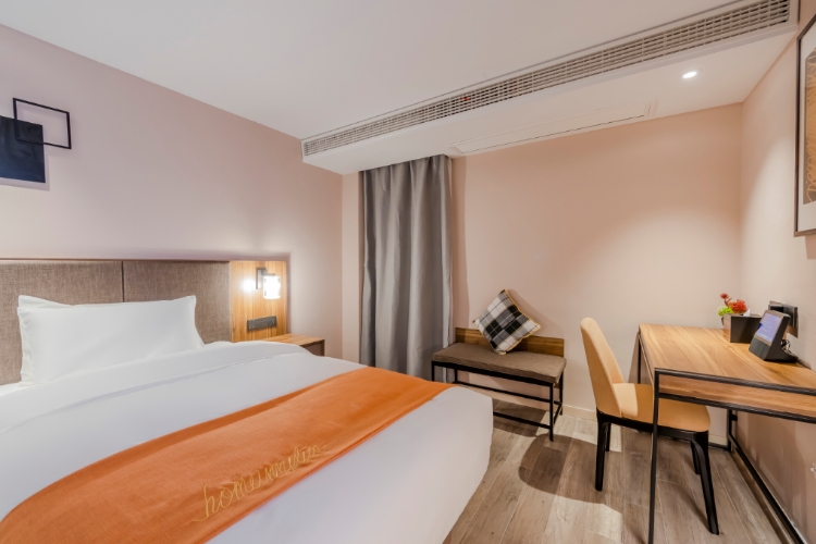 如家精选酒店(上海虹桥国展九亭中心店)座落于松江区九亭镇中心,位于沪亭北路与涞寅路交界处,毗邻大虹桥商务区,至国家会展中心约10分钟车程;酒店紧临九亭中心、金地广场,周边生活配套成熟,美食,购物,娱乐,样样俱全,出行便利。距离地铁9号线九亭地铁站仅1公里,乘坐地铁9号线可直达七宝老街、徐家汇等繁华商圈并至旅游胜地“欢乐谷”、玛雅水上乐园、余山风景区。9号线转11号线直达迪士尼,距离虹桥机场,高铁站、只需15分分钟车程,交通十分便利;酒店采用以英伦时尚的设计,定位于有品位的精选酒店,从洞察商旅人士新兴的出行需求出发,旨在营造高级的英伦生活方式、轻社交的互动概念、品质感的悉心服务,用科技开启高品质的居住体验。自助洗衣房、停车场等配套设施齐全,24小时空调和热水、高速wifi覆盖、舒适的床品,为您提供良好的入住体验。酒店是首旅如家旗下中高端品牌,优质的服务,带领宾客体验酒店新乐趣,是您商务出行、旅游的上佳之选。 温馨提示: 酒店暂不提供早餐服务,给您带来不便,请您谅解。