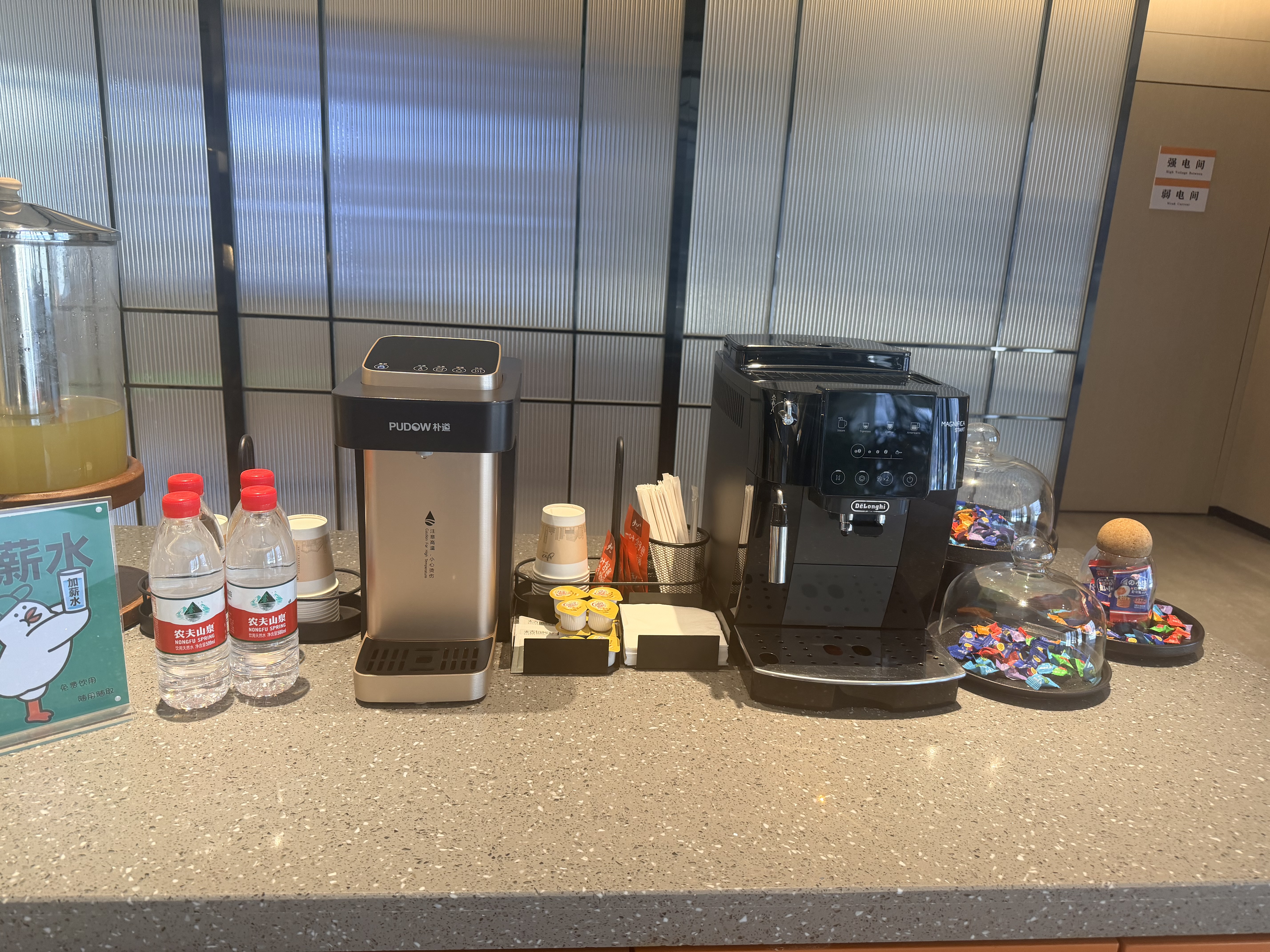 本酒店位于哈尔滨五常市金山大街333号,隶属于五常市政府周边,距离火车站车程5分钟,临近五常实验二小学,五常市第一中学校。酒店全部为智能客房,选用梦百合零压床垫,配备小度,电动窗帘,智能马桶,情景灯光模式等智能家居,大堂设有商务会客区,休闲区,同时免费提供现磨咖啡,茶水,各种小零食,自助洗衣,健身房,机器人送物,自助入住等服务,酒店提供电车充电桩。是您商务出差、旅行、聚会、探亲居住首选,期待您的光临!