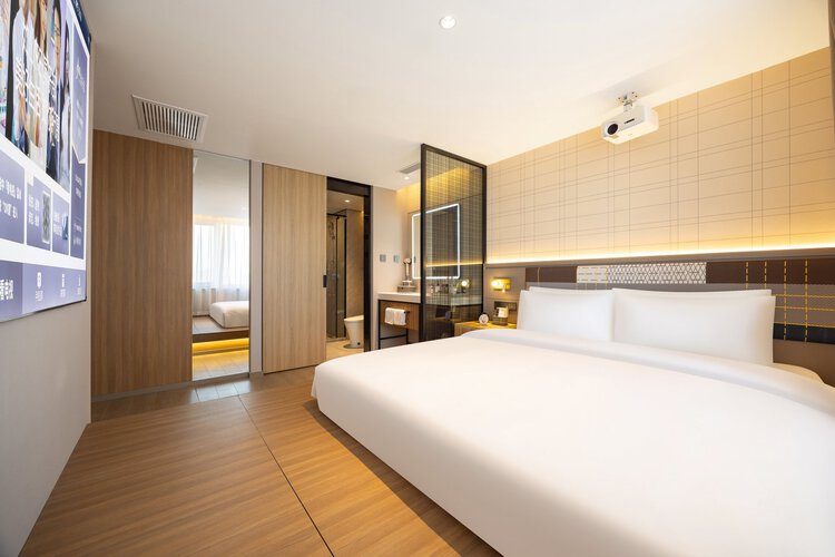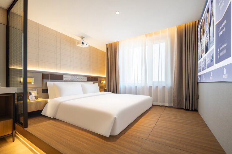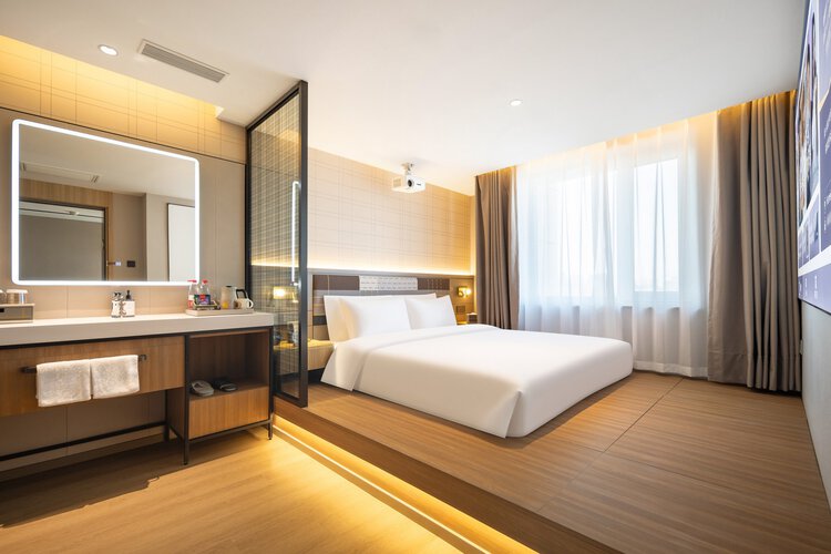 酒店位于哈尔滨市南岗区红军街85号,哈尔滨站南广场正对面,酒店出门即是地铁2号线哈尔滨站地铁口,可直接进入哈尔滨站。地铁可达多个景点。步行300米左右至机场巴士站点,直达机场。 出门左转是龙门大厦贵宾楼, 距离黑龙江省博物馆600米左右,步行即可到达(乘坐地铁二号线仅一站即可到达)。 距离中央大街1.9公里左右(乘坐地铁二号线仅一站即可到达),圣?索菲亚教堂1.7公里左右,道里菜市场1.8公里左右,红专街早市3公里左右,师大夜市5.6公里左右,冰雪大世界9.5公里左右(乘坐地铁二号线五站直达),731部队罪证陈列馆地铁2号线换乘可到达 出门右转即是医大四院,临近中医大二院、黑龙江省医院南岗院区、哈尔滨市第三中学、哈尔滨市第17中学步行可达。距哈尔滨工业大学1.8公里左右。 酒店全部为智能客房,配备小度,电动窗帘,智能马桶,情景灯光模式等智能家居,房间配备了梦百合0压床垫,增设了安心睡房间,为您营造优质睡眠环境。免费提供现磨咖啡,茶水,各种小零食,自助洗衣,健身房,机器人送物,自助入住等服务。 酒店设有餐厅,还有多功能会议室和休闲区,是您商务出差、旅行、聚会、探亲居住选择,期待您的光临!