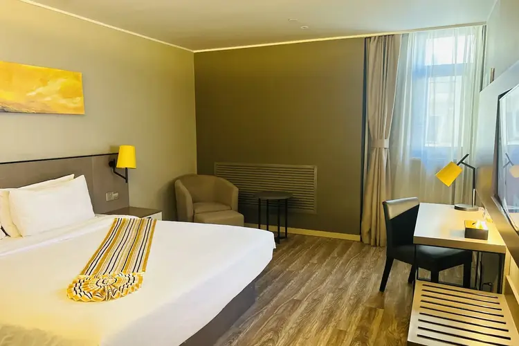 如家精选酒店(东营万达广场店)坐落于东营市西城区核心地段,太行山路与北一路交汇处的黄金坐标,是一座集商务出行、休闲购物、医疗教育配套于一体的现代化商旅综合体。酒店占据城市交通动脉,步行5分钟可达太行山路公交枢纽站,为宾客提供四通八达的出行选择。 酒店周边汇聚东营市顶级生活配套:向西800米的金大地建材城是建材家居采购的首选地;东赵大厦集聚金融、法律等高端服务机构;而3公里范围内的嬉水公园则为家庭客群提供城市绿洲般的休闲体验。医疗资源方面,15分钟车程覆盖胜利油田中心医院与鸿港医院两大综合医疗机构,为住客健康保驾护航。商业配套更是触手可及,黄河路百货大楼与银座商城形成双MALL格局,满足不同客群的购物需求。饮食方面,附近有鸿港夜市,燕山路与济宁路美食一条街,满足客人们的味蕾。