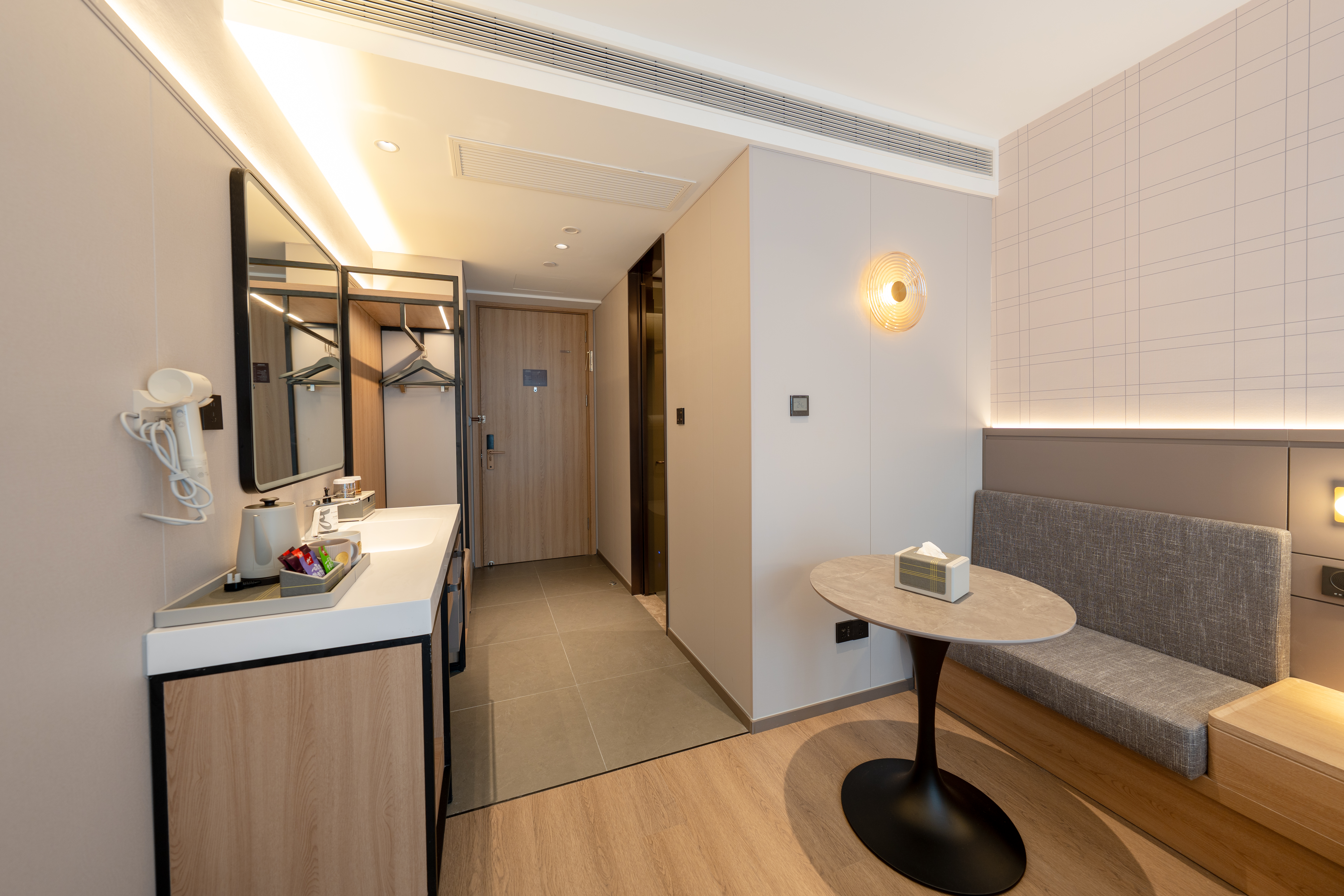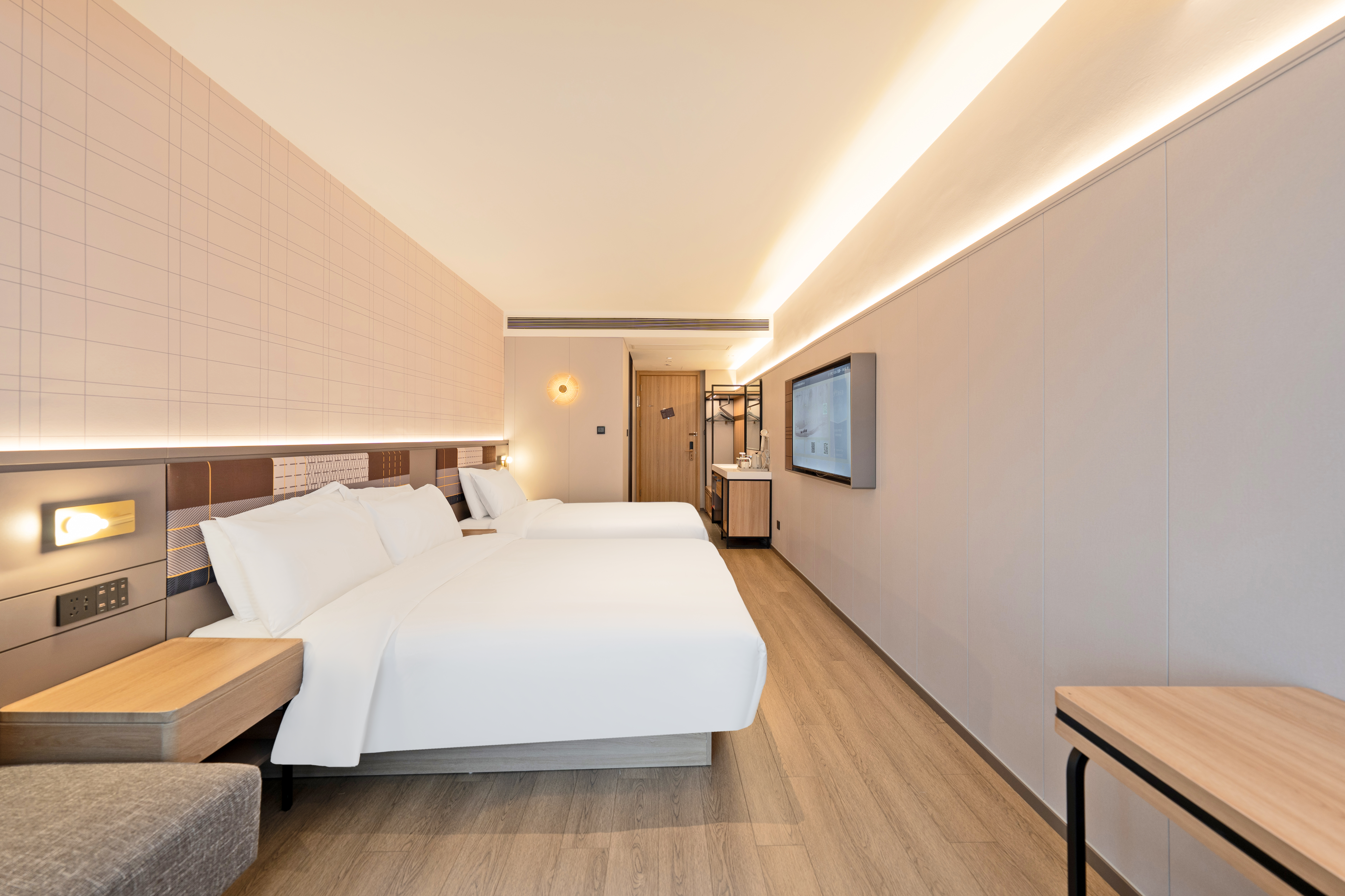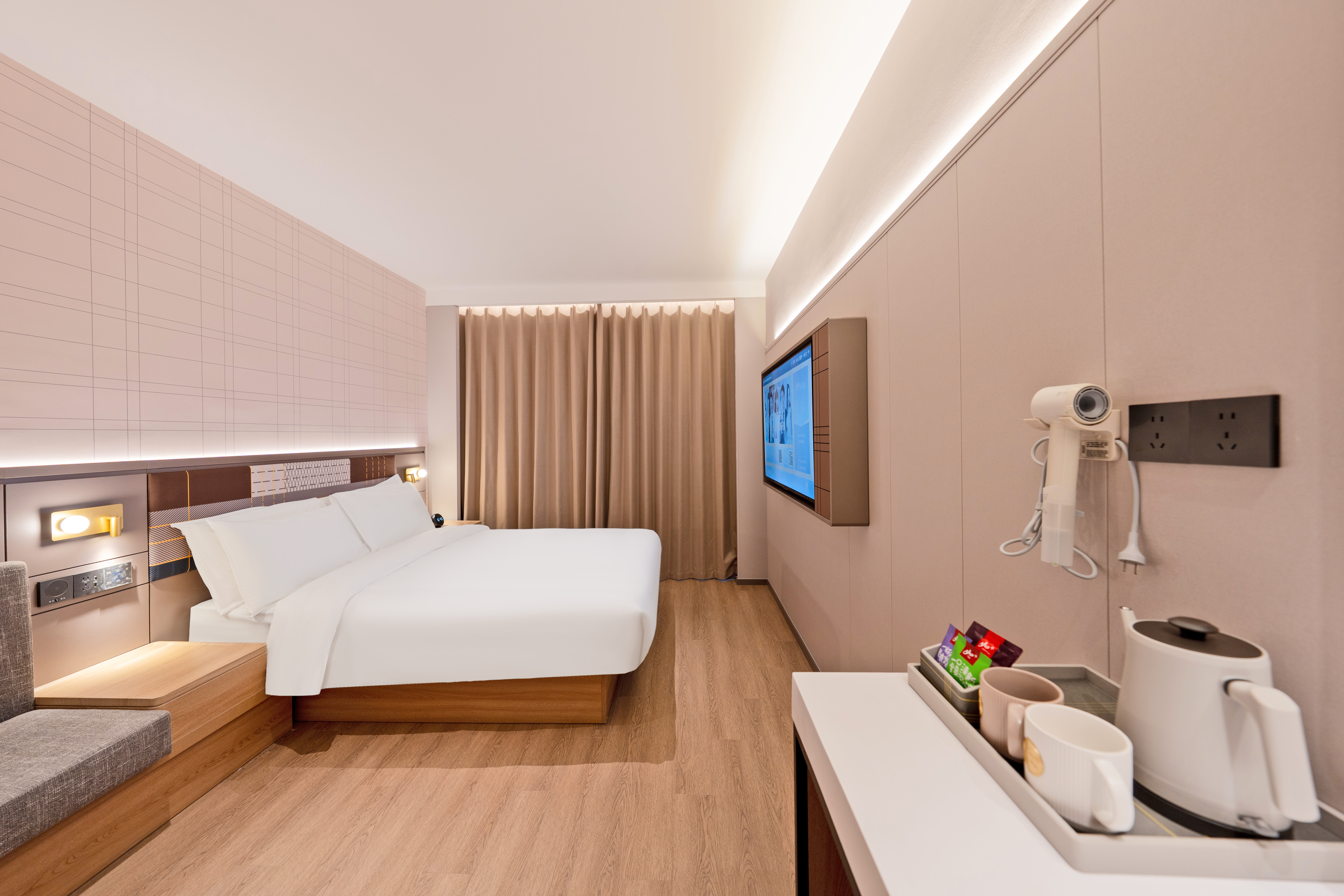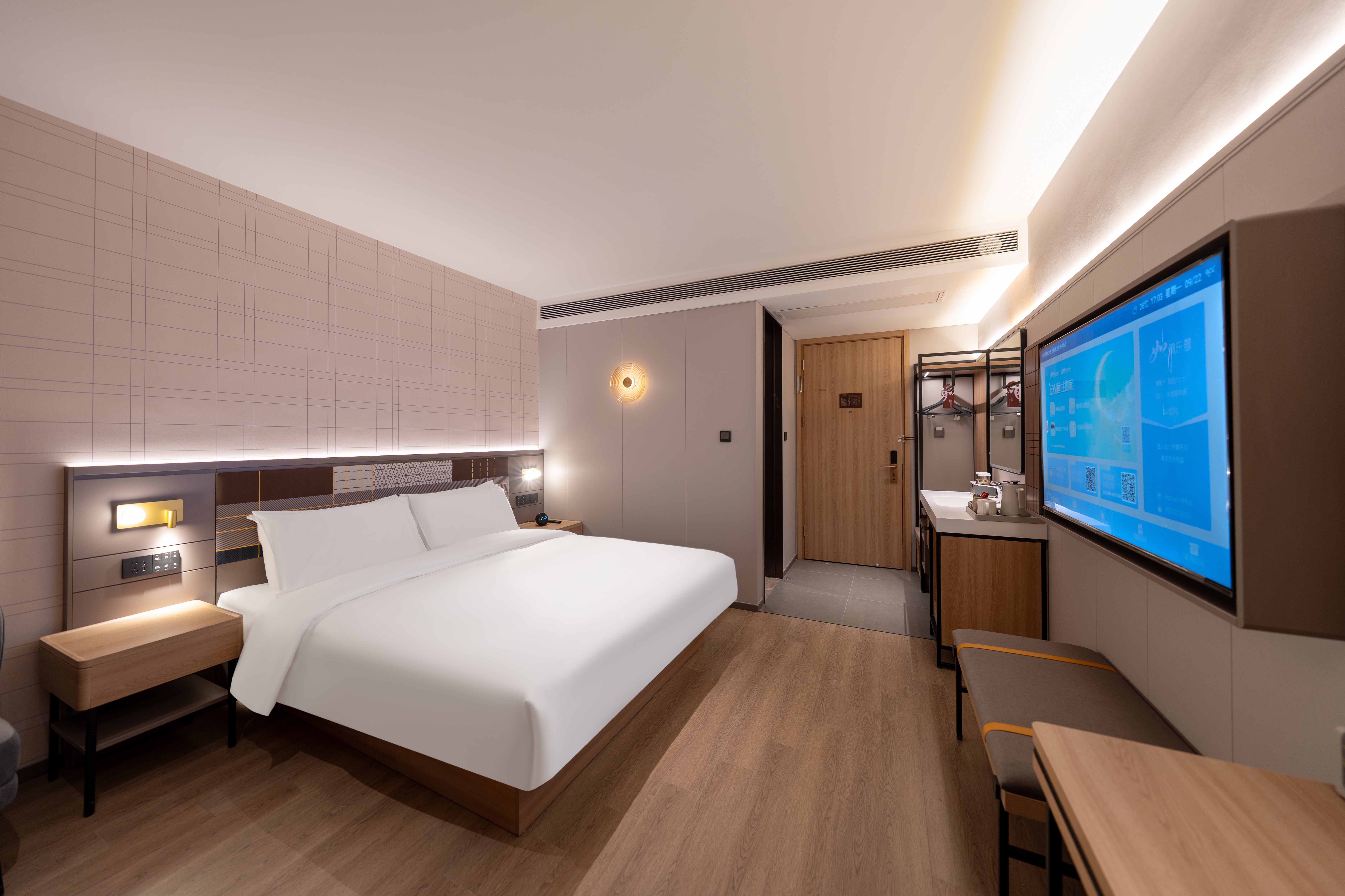 位于杭州市上城区庆春路38-1号金龙财富中心,坐落于杭州核心商业区,将智能科技与舒适体验完美融合,为商旅人士提供高品质的住宿服务。 得天独厚的地理位置 酒店地处庆春路金融商业核心地带,毗邻西湖风景区,步行可达湖滨银泰in77、解百城市奥莱等大型商业综合体。周边金融机构云集,距离浙江大学医学院附属第一医院仅咫尺之遥。交通便利,地铁1号线龙翔桥站和定安路站环伺周边,前往杭州东站、杭州站均十分便捷。 卓越的硬件设施与服务 酒店拥有百余间精心设计的客房,每间客房均配备智能控制系统、高品质床品、高速无线网络。酒店特别设有商务中心、会议室、健身区域等配套设施,满足商务人士的多元需求。24小时全天候服务包括自助入住系统、智能机器人配送、自助洗衣房等,为旅客带来便捷体验。 独具特色的住宿体验 酒店秉承如家精选品牌"精致、时尚、温馨"的设计理念,采用简约现代的装饰风格,营造出优雅舒适的住宿环境。餐厅提供营养均衡的中西式早餐,特别推出杭州特色美食,让宾客在品味美食的同时感受当地文化魅力。完善的配置与贴心的服务理念,必将成为商务出行和休闲旅游的理想下榻之选。