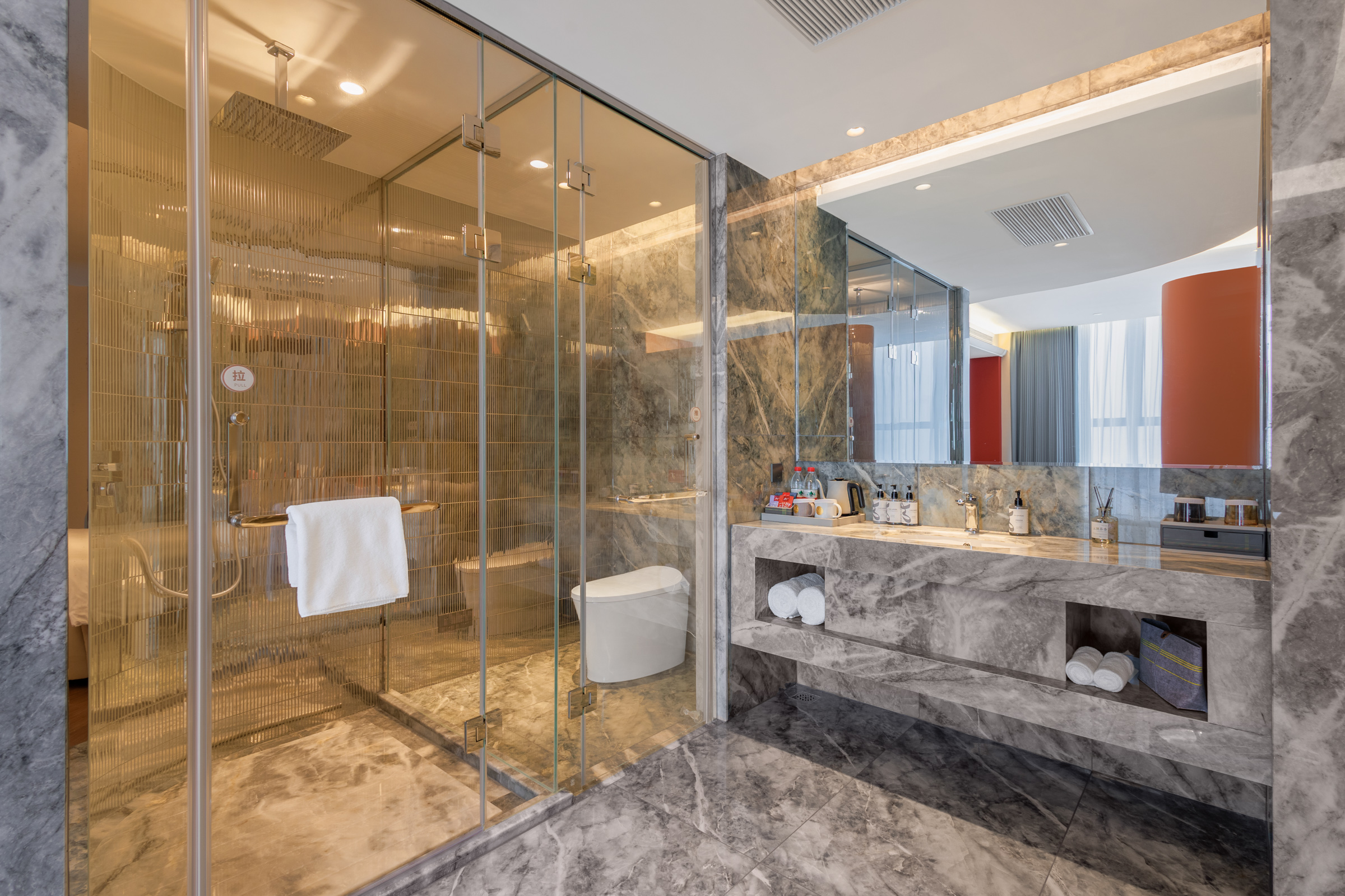 所有住店客人不限量供应免费矿泉水,如有需要可联系前台
