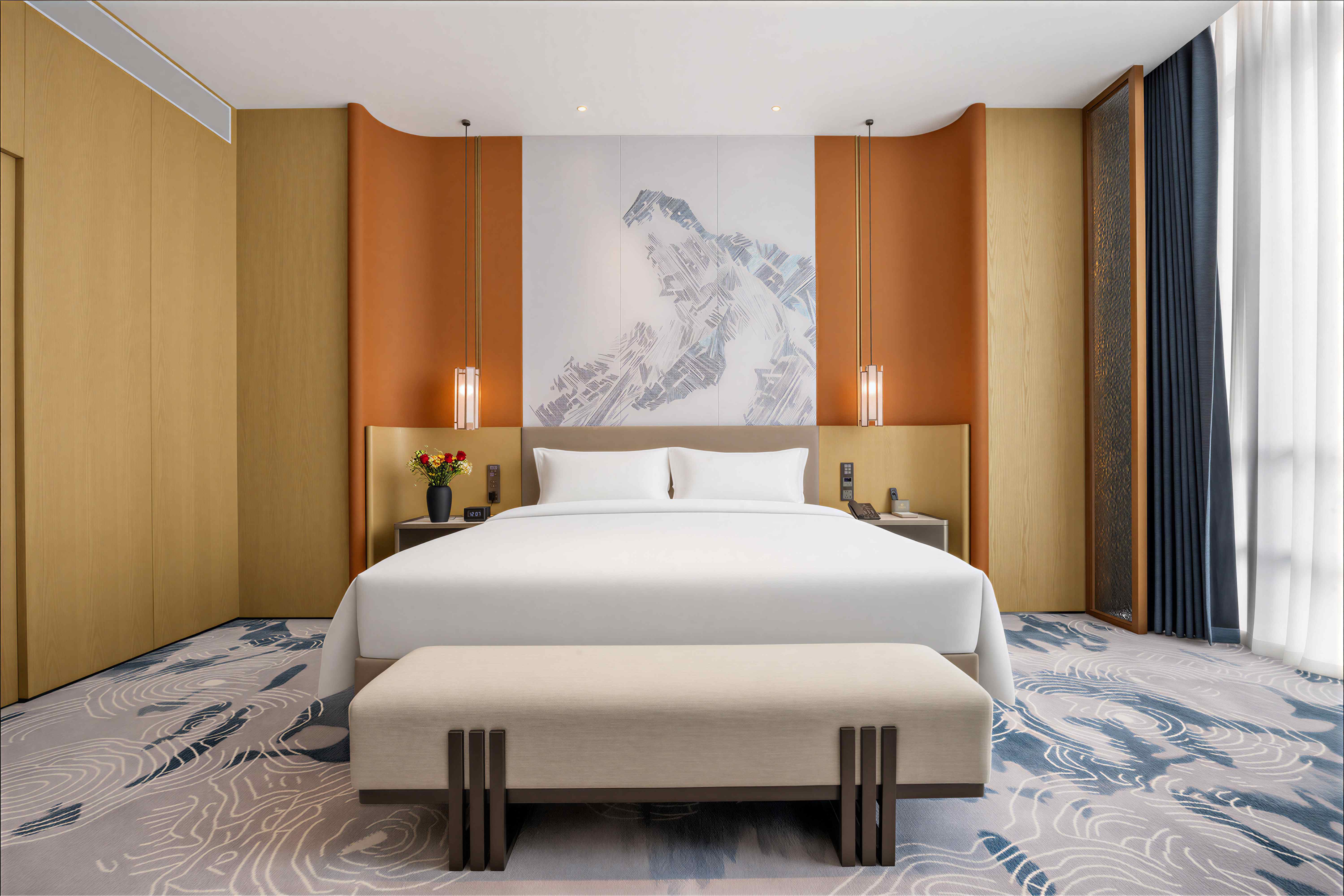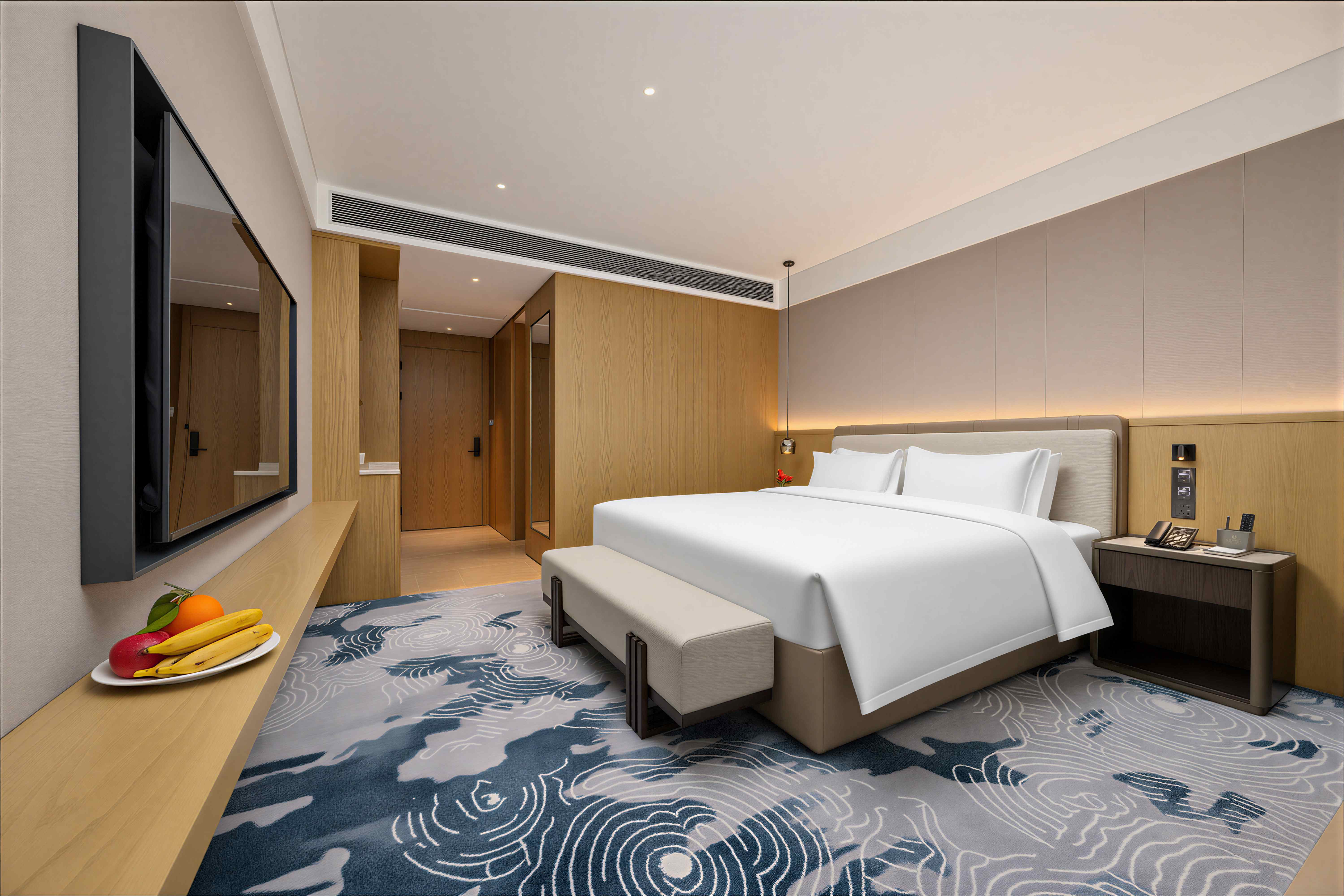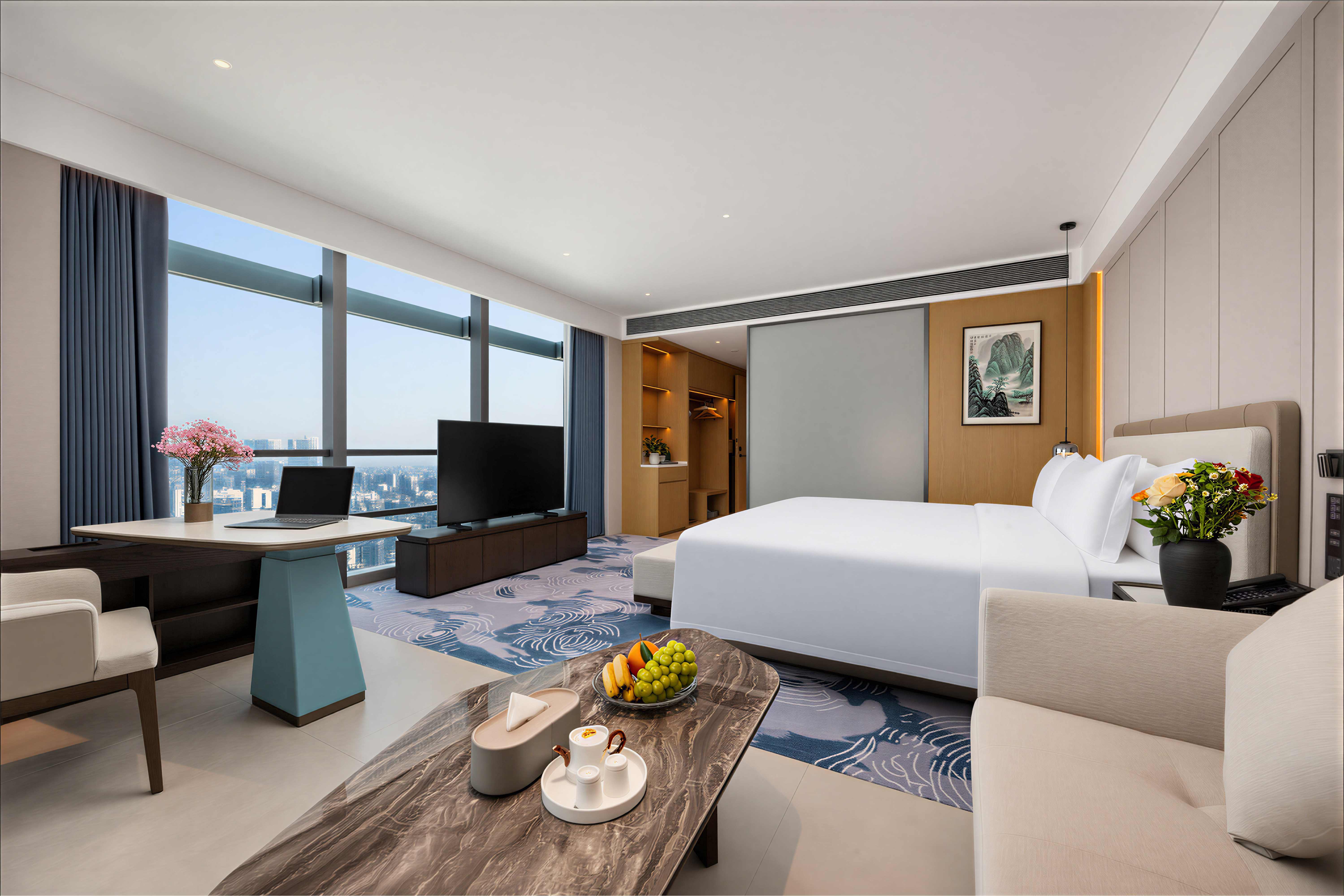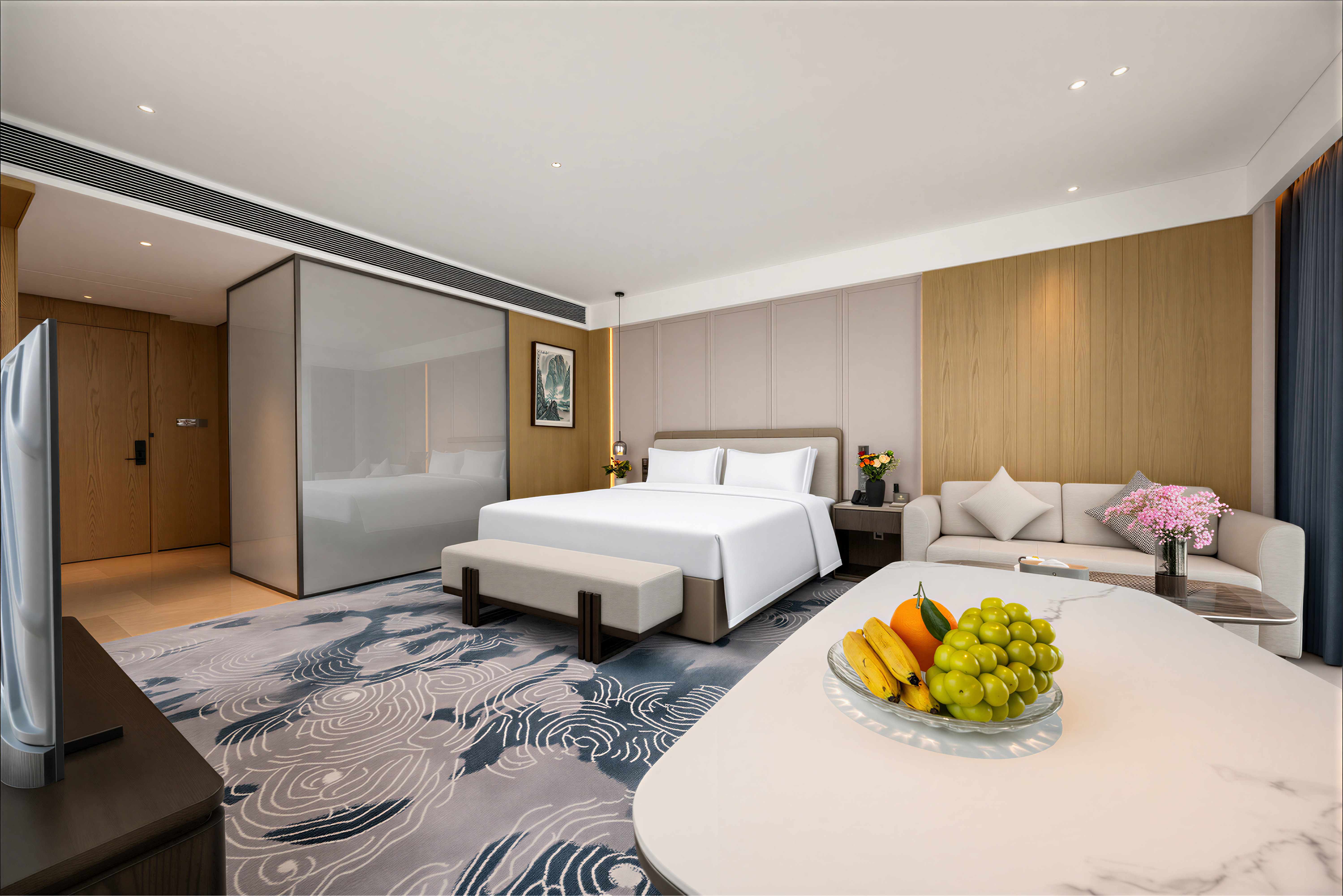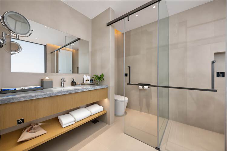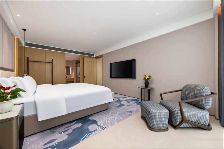 珠海华业建国饭店的设计由多家国际团队联袂担纲,酒店整体设计理念以岭南民居文化为主背景,融入金湾非物质文化遗产-渔民做耕元素符号和三灶编织作空间点缀,酒店配备完善的客房及套房,均配置独立的工作区、提供休闲躺椅及咖啡桌的休息区、步入式衣柜和可饱览优美城景或海景的全景落地窗。每间客房集功能、时尚、舒适于一体,优雅平衡空间设计美学和功能实用性。