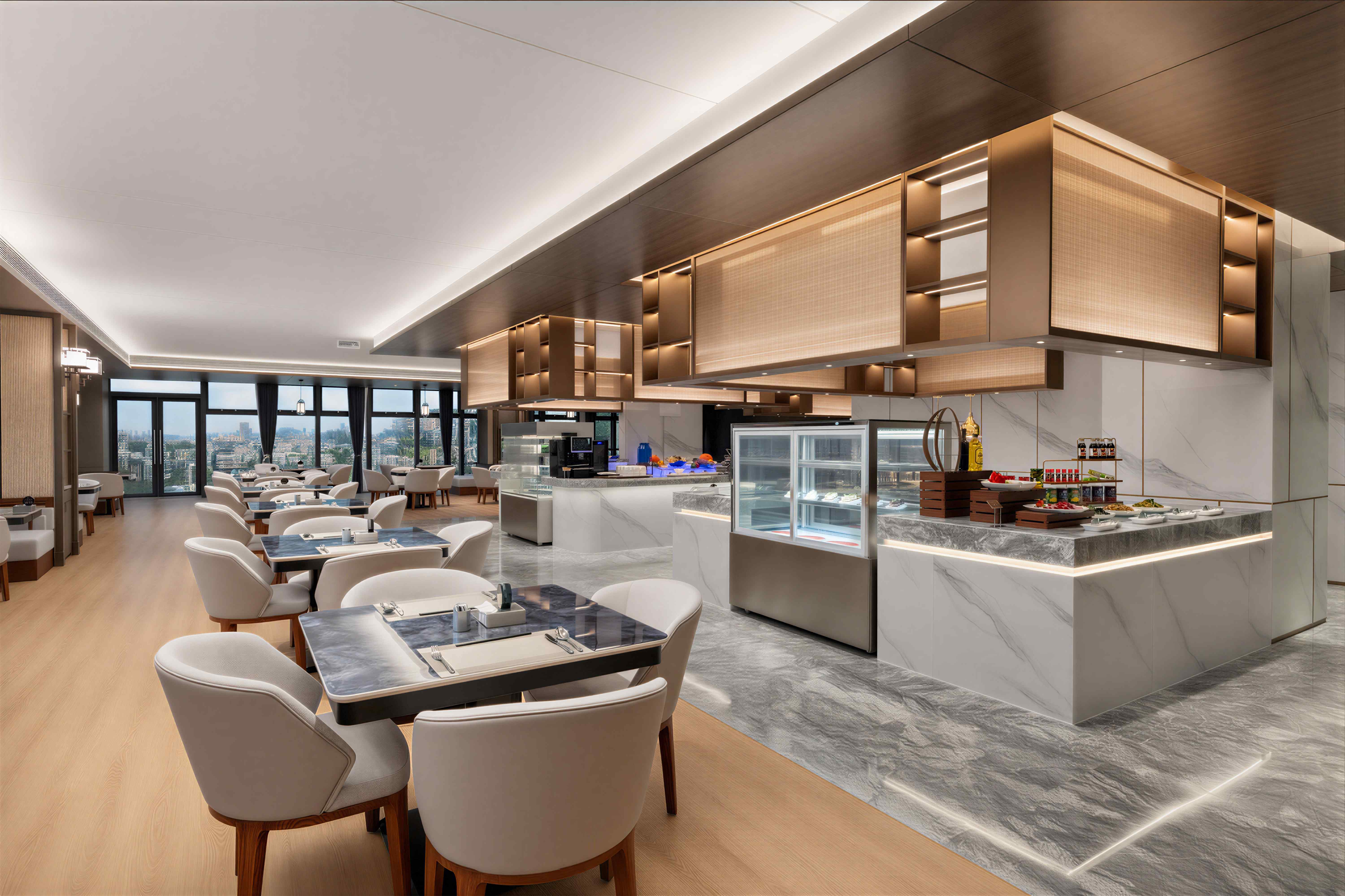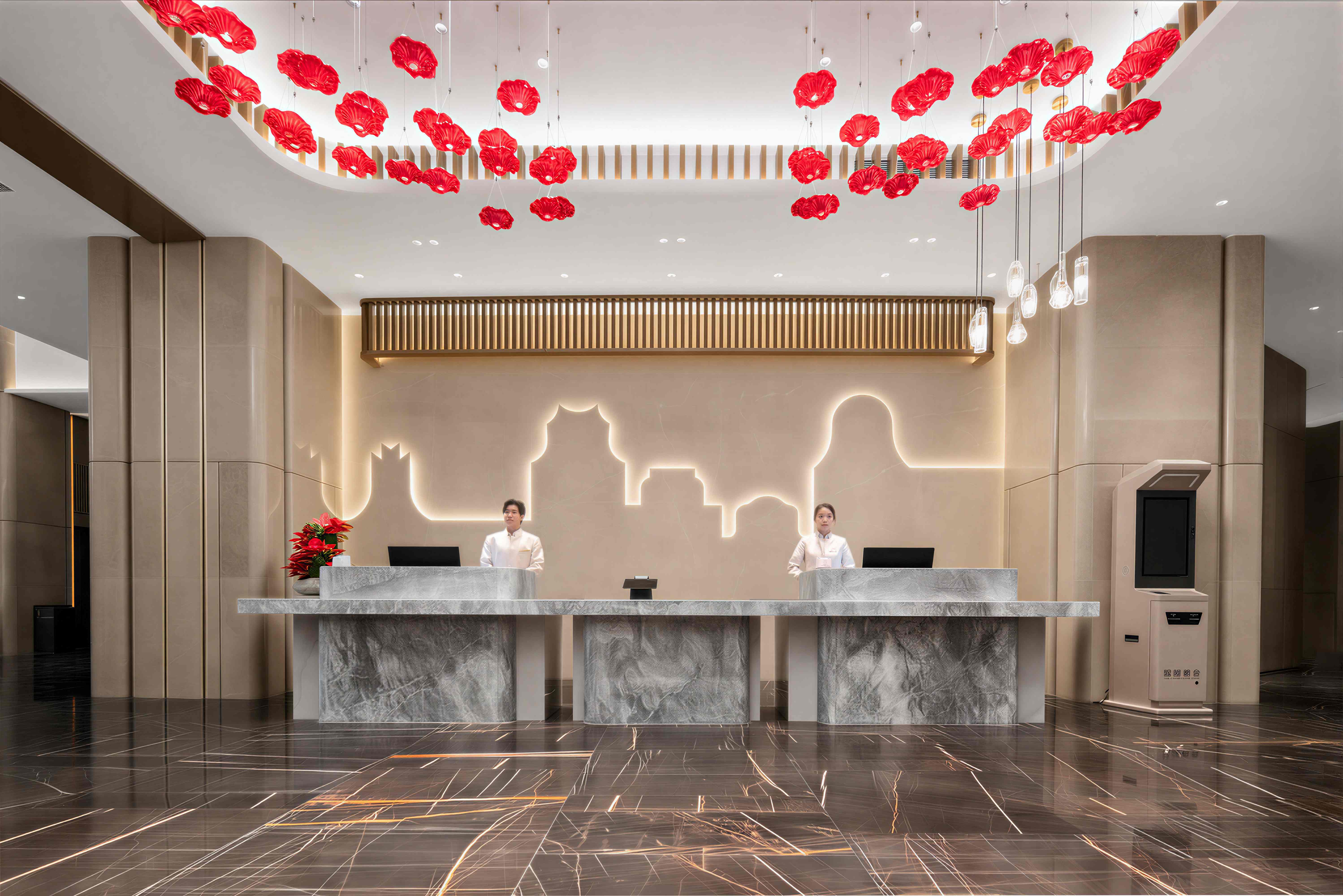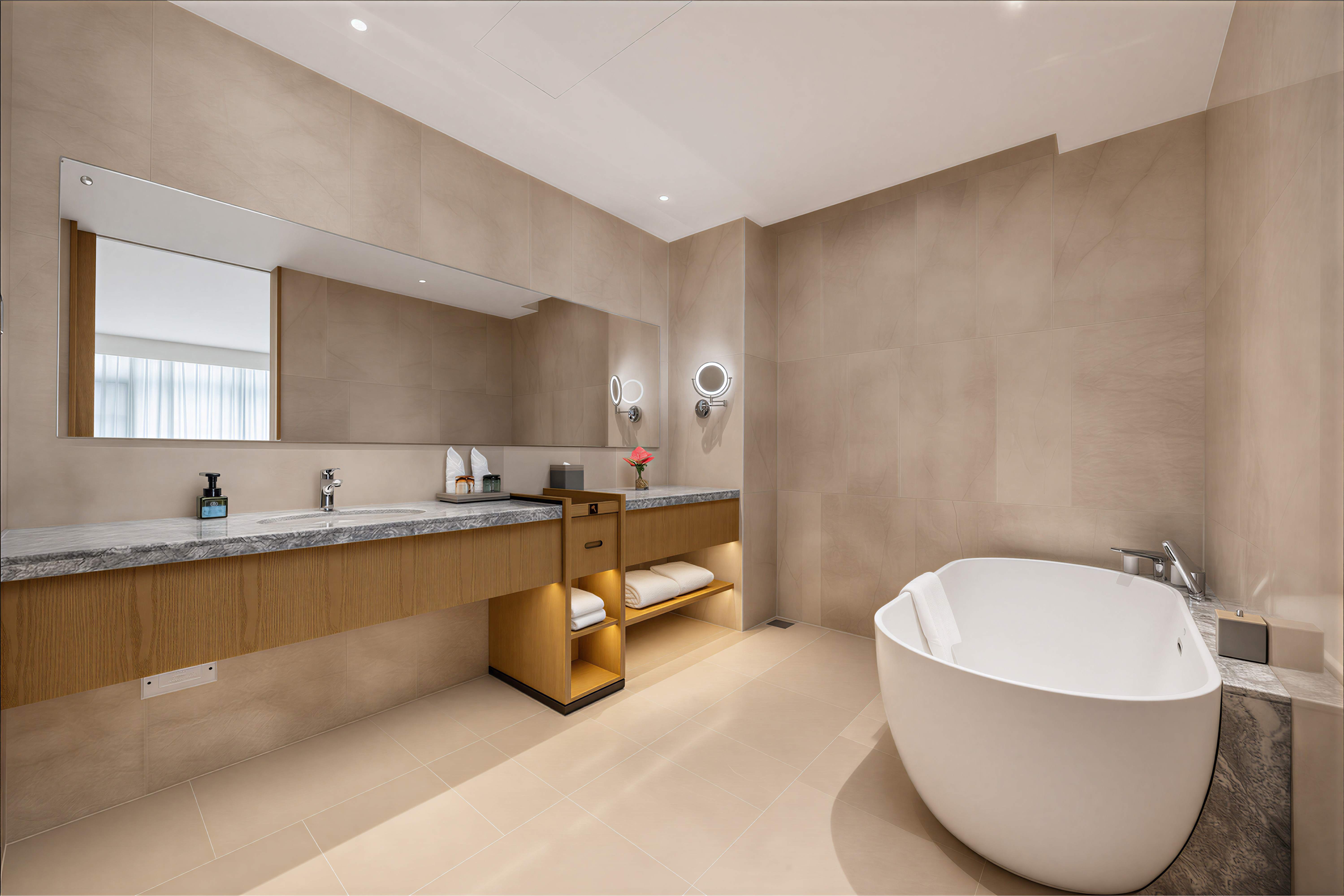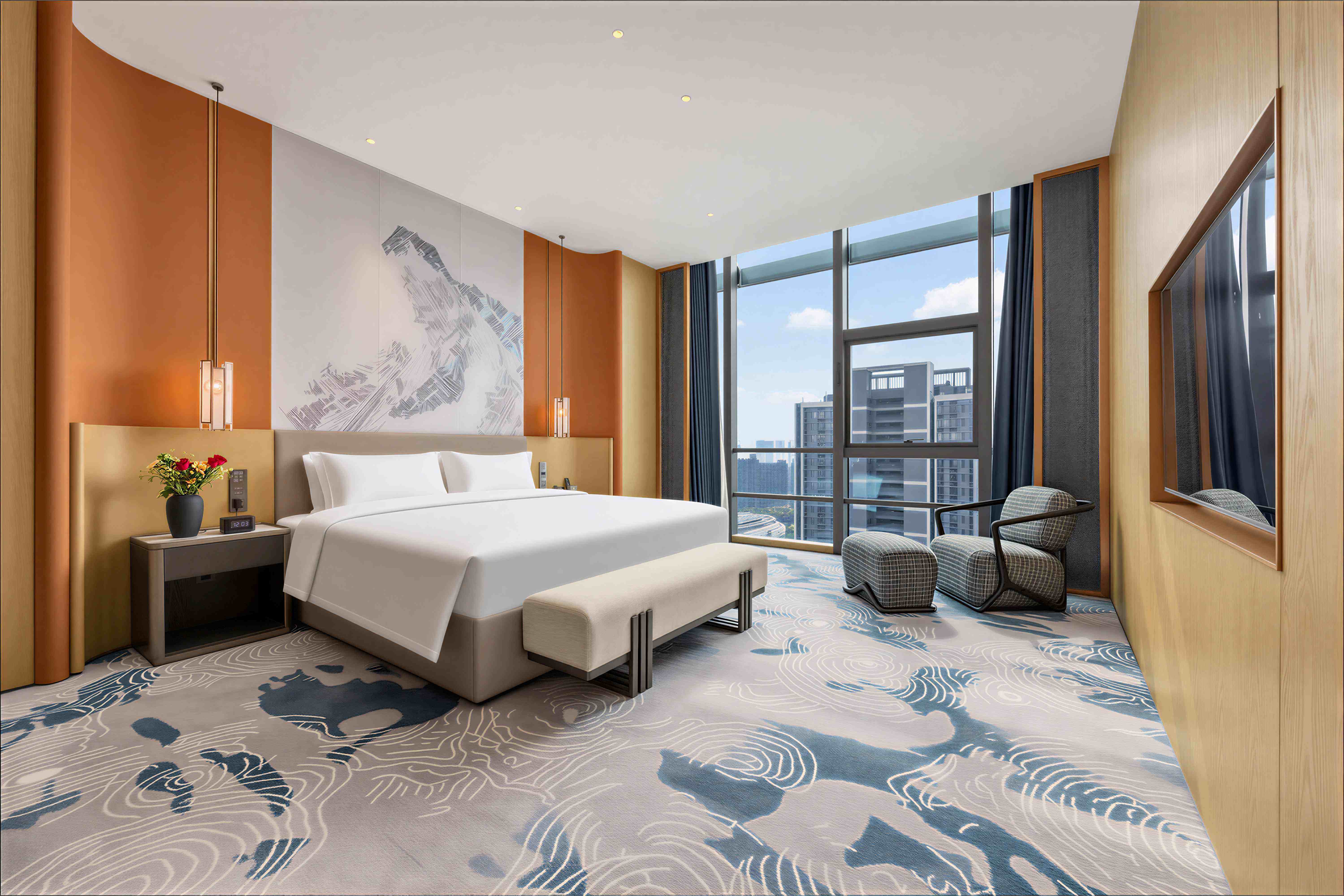 珠海华业建国饭店的设计由多家国际团队联袂担纲,酒店整体设计理念以岭南民居文化为主背景,融入金湾非物质文化遗产-渔民做耕元素符号和三灶编织作空间点缀,酒店配备完善的客房及套房,均配置独立的工作区、提供休闲躺椅及咖啡桌的休息区、步入式衣柜和可饱览优美城景或海景的全景落地窗。每间客房集功能、时尚、舒适于一体,优雅平衡空间设计美学和功能实用性。