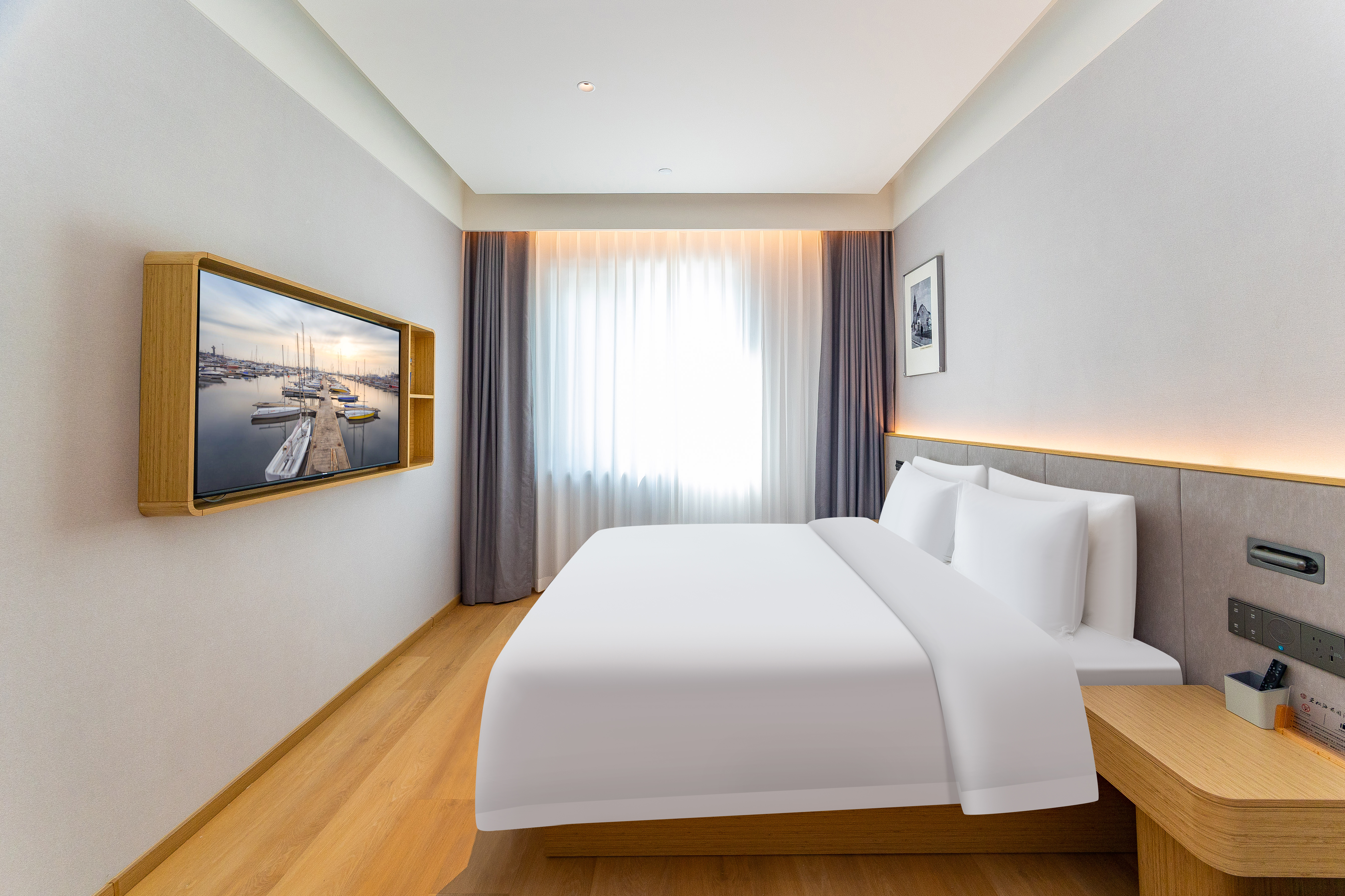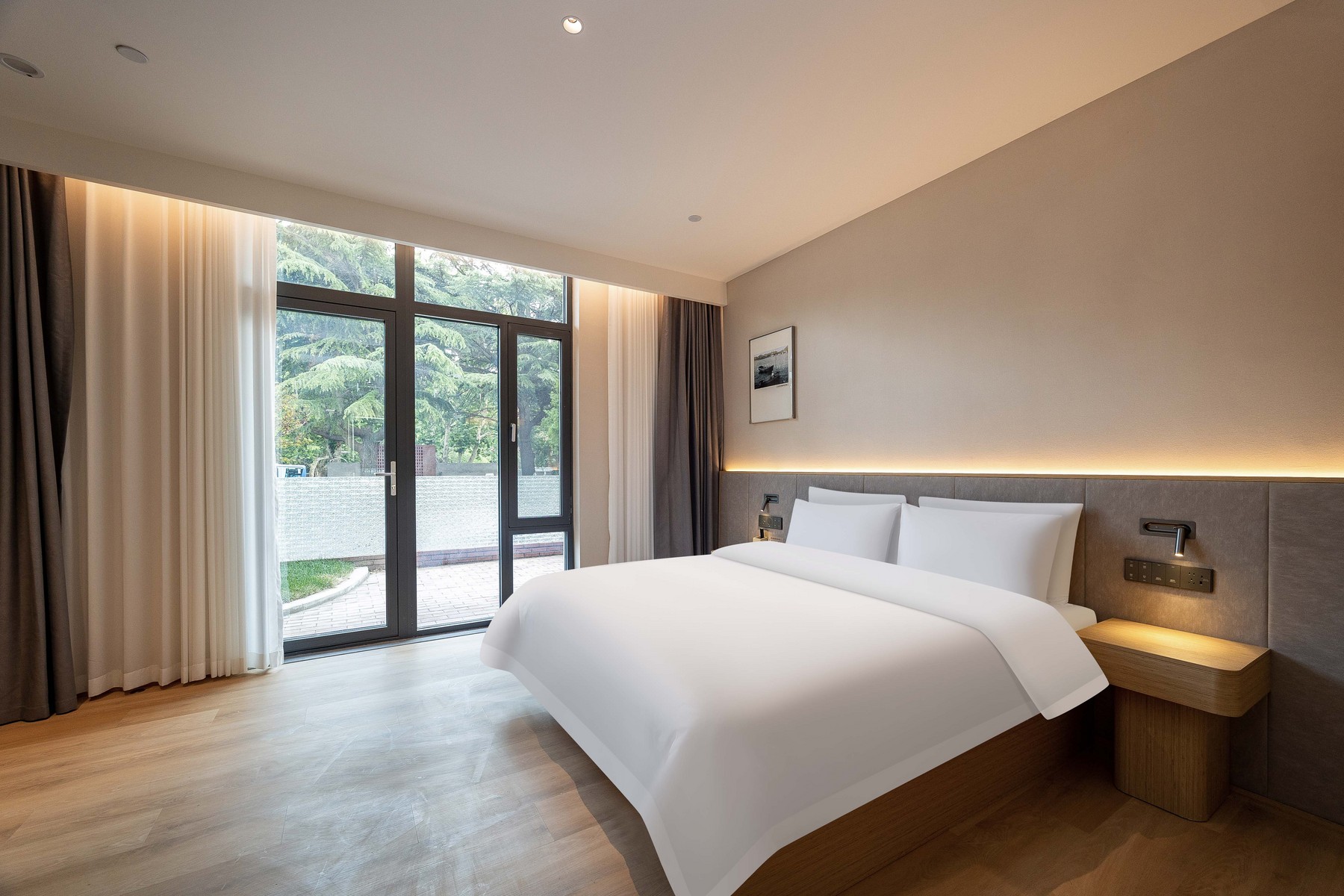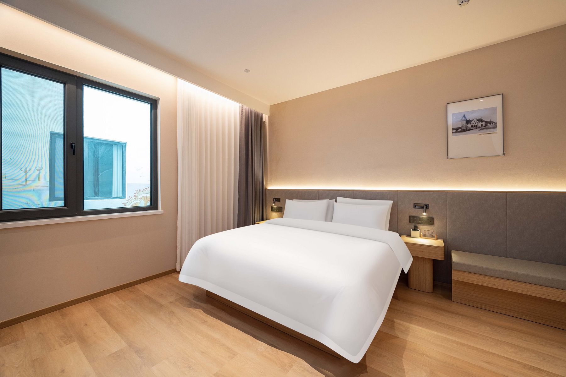 柏丽艾尚(青岛五四广场奥帆中心店),坐落在市南区太湖路21号,以优越区位与贴心服务,为旅人打造舒适旅居体验。 酒店地处城市核心,距宁夏路地铁站-C口步行仅520米,步行约8分钟,前往五四广场、奥帆中心、八大关风景区等地标约2km,毗邻购物中心 万象城约1.7km,满足您购物、餐饮、娱乐的一站式需求,交通便利,可轻松抵达市内各大商圈、景点及交通枢纽,轻松畅游全城,轻松感受海滨魅力与城市活力,探索青岛老城风情。 酒店位于城市核心繁华区域,却巧妙避开喧嚣主干道,为您提供一处难得的安静绿洲。 酒店院内设有专属停车场,为宾客解决自驾游停车难,出行无忧更省心。 精心设计的客房,注重隔音与舒适度,提供高品质床品,酒店内设并设有独立庭院客房,绿意盎然,是您晨间小憩或傍晚放松的宁静角落,确保您一夜安眠,消除旅途疲惫。 作为新开业酒店,其硬件设施亮点十足。客房配备智能客控系统,让居停更便捷智能;酒店配备洗衣房、健身房,让您在旅途的过程中健康生活,洗衣无忧。无论是商务出行还是休闲度假,都能在此享受惬意时光。是您青岛旅居的优质之选。