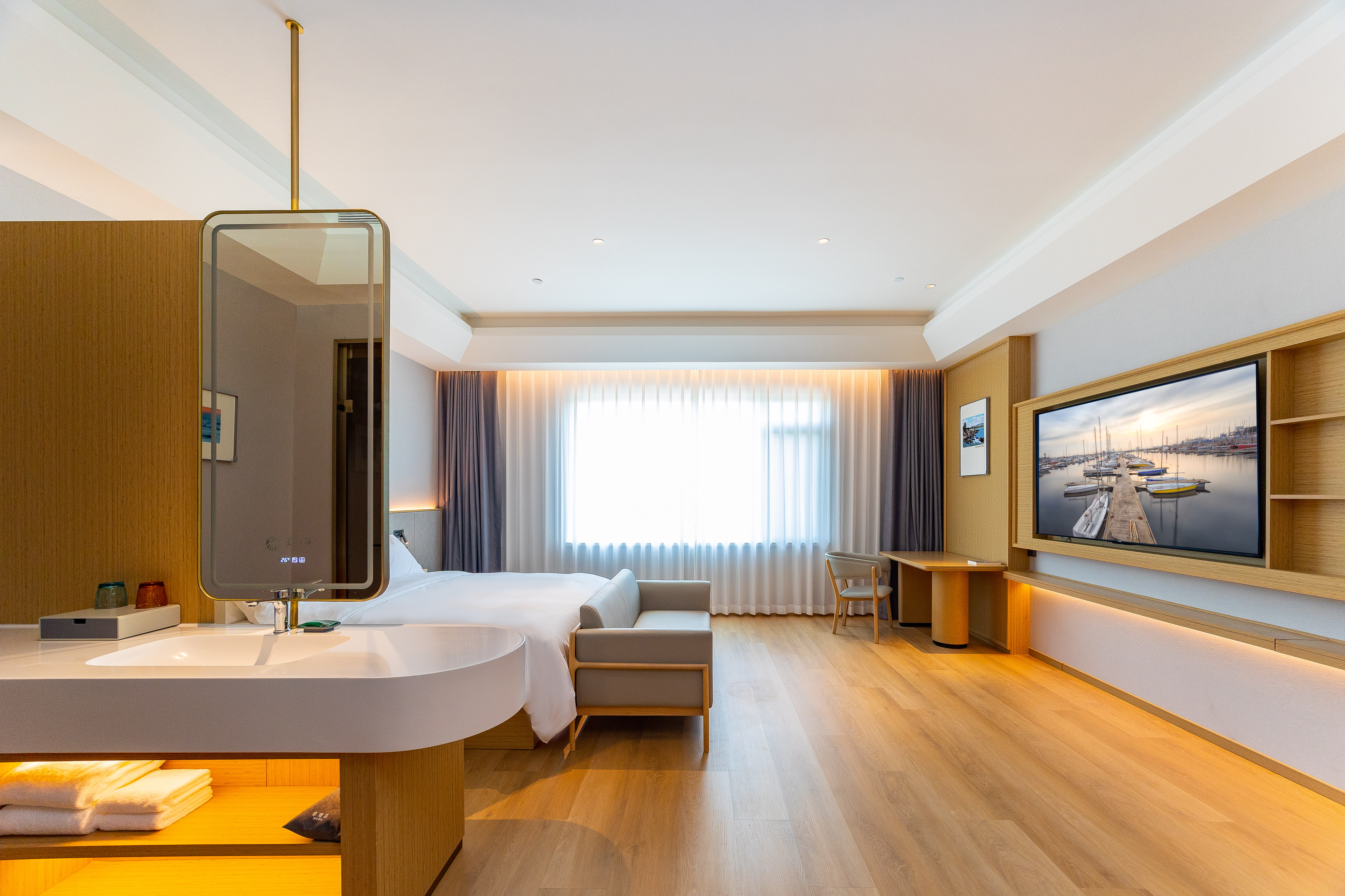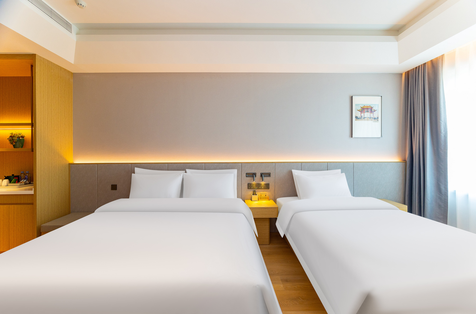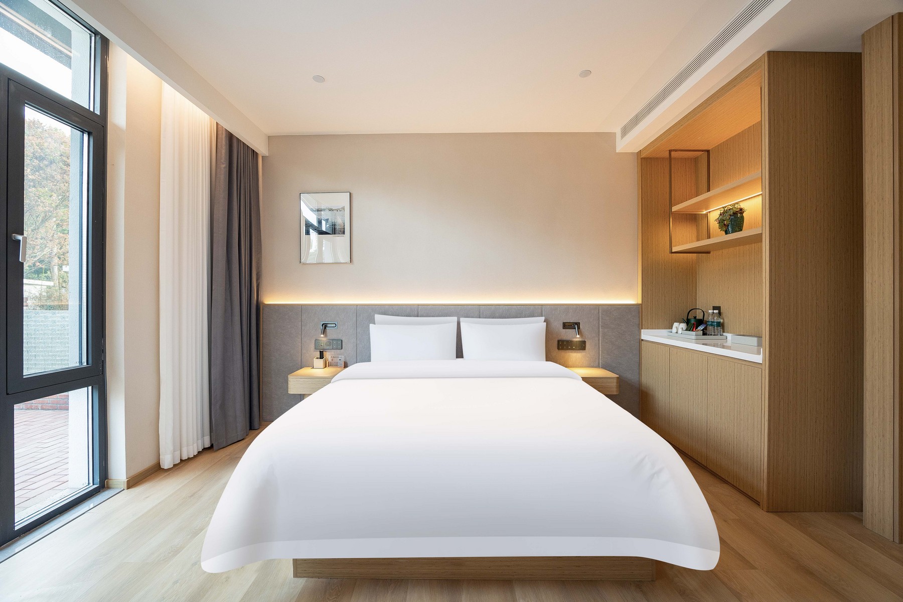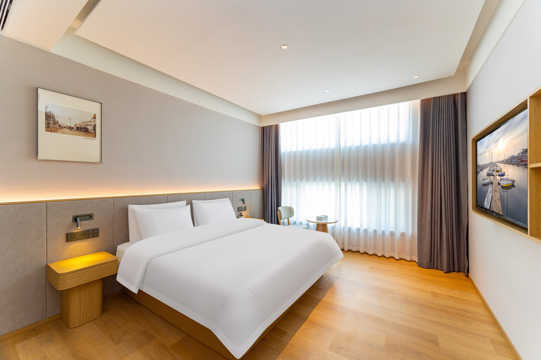 柏丽艾尚(青岛五四广场奥帆中心店),坐落在市南区太湖路21号,以优越区位与贴心服务,为旅人打造舒适旅居体验。 酒店地处城市核心,距宁夏路地铁站-C口步行仅520米,步行约8分钟,前往五四广场、奥帆中心、八大关风景区等地标约2km,毗邻购物中心 万象城约1.7km,满足您购物、餐饮、娱乐的一站式需求,交通便利,可轻松抵达市内各大商圈、景点及交通枢纽,轻松畅游全城,轻松感受海滨魅力与城市活力,探索青岛老城风情。 酒店位于城市核心繁华区域,却巧妙避开喧嚣主干道,为您提供一处难得的安静绿洲。 酒店院内设有专属停车场,为宾客解决自驾游停车难,出行无忧更省心。 精心设计的客房,注重隔音与舒适度,提供高品质床品,酒店内设并设有独立庭院客房,绿意盎然,是您晨间小憩或傍晚放松的宁静角落,确保您一夜安眠,消除旅途疲惫。 作为新开业酒店,其硬件设施亮点十足。客房配备智能客控系统,让居停更便捷智能;酒店配备洗衣房、健身房,让您在旅途的过程中健康生活,洗衣无忧。无论是商务出行还是休闲度假,都能在此享受惬意时光。是您青岛旅居的优质之选。