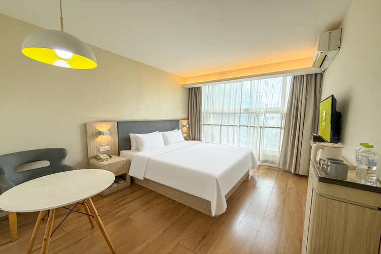 酒店距离高铁烟台站、芝罘站6公里,车程18分钟,乘坐公交3路/70路到(亚太婚庆文化产业园)下车,直达酒店门口;距离烟台山医院南院、电子商务创新港步行4分钟; 自驾20分钟可达烟台朝阳街、所城里、月亮湾、东炮台、海昌渔人码头等网红景点 酒店后院即是婚庆产业园大型停车场,由青年南路和荣尧街路口进入,出车请至前扫码,可享免费停车,酒店配备洗衣房,品牌洗衣机、烘干机,亲切友善的服务带领您体验商务旅行新乐趣,给旅途中的您温暖的陪伴。 酒店地处烟台中心位置,半小时车程可达福山区、莱山区,出行便利,周边餐饮娱乐配套齐全,300米内有超意兴快餐、 洪兴砂锅 、库迪咖啡 、可好便利店 铁记拉面等;酒店全部床位增加零压记忆棉床垫,40寸液晶电视,房型规整宽敞明亮感欢迎四方宾客商旅下榻。
