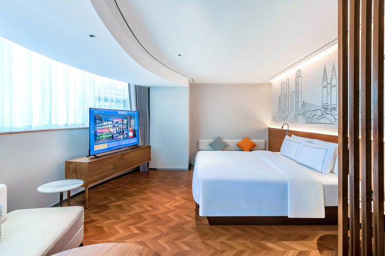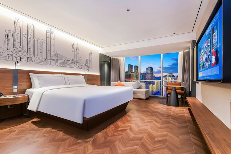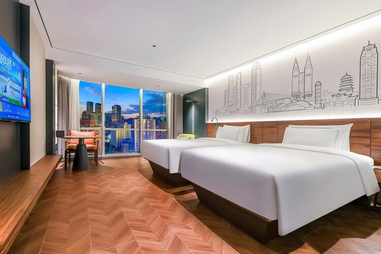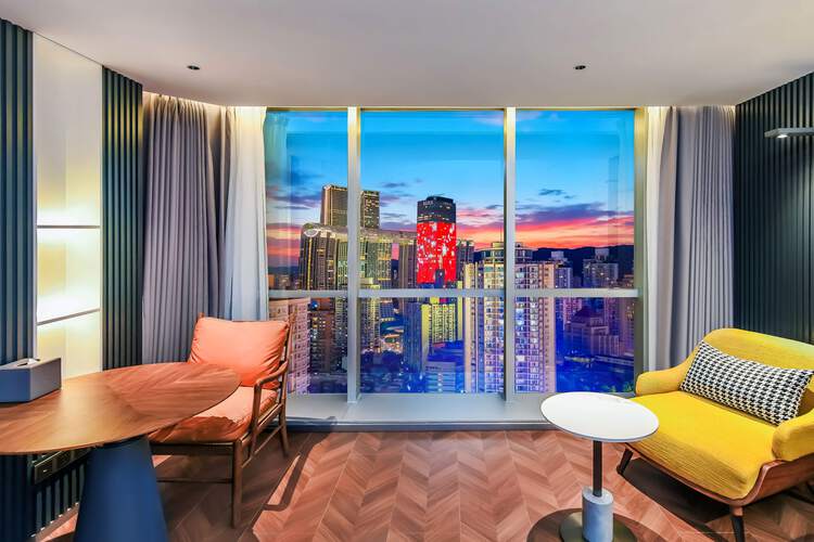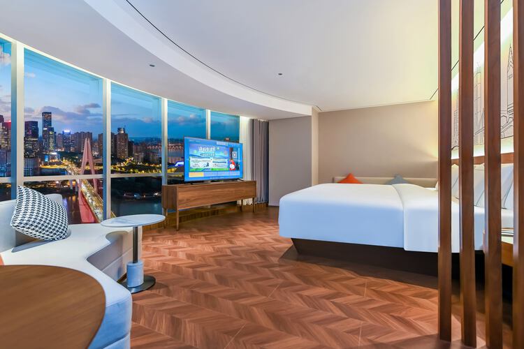 酒店位于渝中区民族路108号——重庆解放碑核心商圈,酒店与洪崖洞民俗风貌区咫尺相望,这里既是巴渝吊脚楼建筑美学的活态展馆,亦是山城霓虹与江岸灯火交织的魔幻舞台。 酒店周边轨道交通密集(1/2/6号线环绕),步行可达解放碑商圈;驾车20-30分钟覆盖机场、高铁站及新兴会展中心,40分钟直达主城各大热门文旅地标,兼具通勤效率与旅游便利性。 酒店拥有各式客房150间,装修豪华、温暖、智能化,免费迷你吧配有来自皮爷的胶囊咖啡及各式软饮,智能客房搭载机器人配送系统,配套24小时健身房、自助洗衣房、多功能会议室及创意餐饮区,是您商务出行、旅游度假的理想场所。 25层创逸空间构筑云端生活美学馆:晨间现磨咖啡唤醒灵感,午后茶席氤氲东方雅韵,入夜后精酿啤酒与法国红酒碰撞出微醺诗篇,辅以270度两江夜景幕布,实现商务休憩与在地文化体验的沉浸式共生。