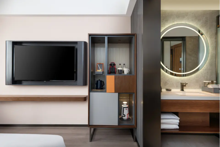 西安雁塔高新逸扉酒店坐落于繁华的西安高新技术产业园区,毗邻西安软件园,四周环绕多家全球企业、购物中心、高档办公楼、知名高校、三甲医院。酒店旁即是地铁科技路站,3号线、6号线双地铁可快速抵达小寨、雁塔商圈及知名景点钟鼓楼、回民街、大雁塔、大唐不夜城、秦始皇陵兵马俑博物馆等,为您游历十三朝千年古都提供出行便利。酒店配备全日餐厅、24小时健身房、自助洗衣房以及159间轻松自在的客房,客房均配备65英寸智能电视、智能马桶、智能音箱、胶囊咖啡机。酒店大堂智能机器人、“创逸空间”、咖啡轻食、中式品茗、特选精酿啤酒、甄选法国红酒,打造专属于您的24小时“创逸空间”,是您商务出行和家庭出游的理想选择。 UrCove by HAYTT Xi'an Hi-Tec is located in the bustling business district of the High-tech Zone, adjacent to Xi'an Software Park and surrounded by shopping malls, high-grade office buildings, well-known universities and top-class hospitals. Our hotel is next to Kijilu Metro Station. With Metro Line 3 and Line 6, guests can travel easily to visit the ancient capital of 13 dynasties and well-known scenic spots such as The Terracotta Warriors museum, The Drum and Bell Towers, Tang Paradise, Giant Wild Goose Pagoda. The hotel features 159 elegantly designed modern guestrooms, all equipped with smart speakers, intelligent toilet seat, 65-inched flat screen TV and capsule coffee machine. From the all-day dining restaurant to the 24h gym, from the laundromat to the multi-functional UrCove Space, we have all of your needs covered. UrCove by HYATT Xi'an Hi-Tec is an ideal place for your business, leisure trip and friends' gatherings.