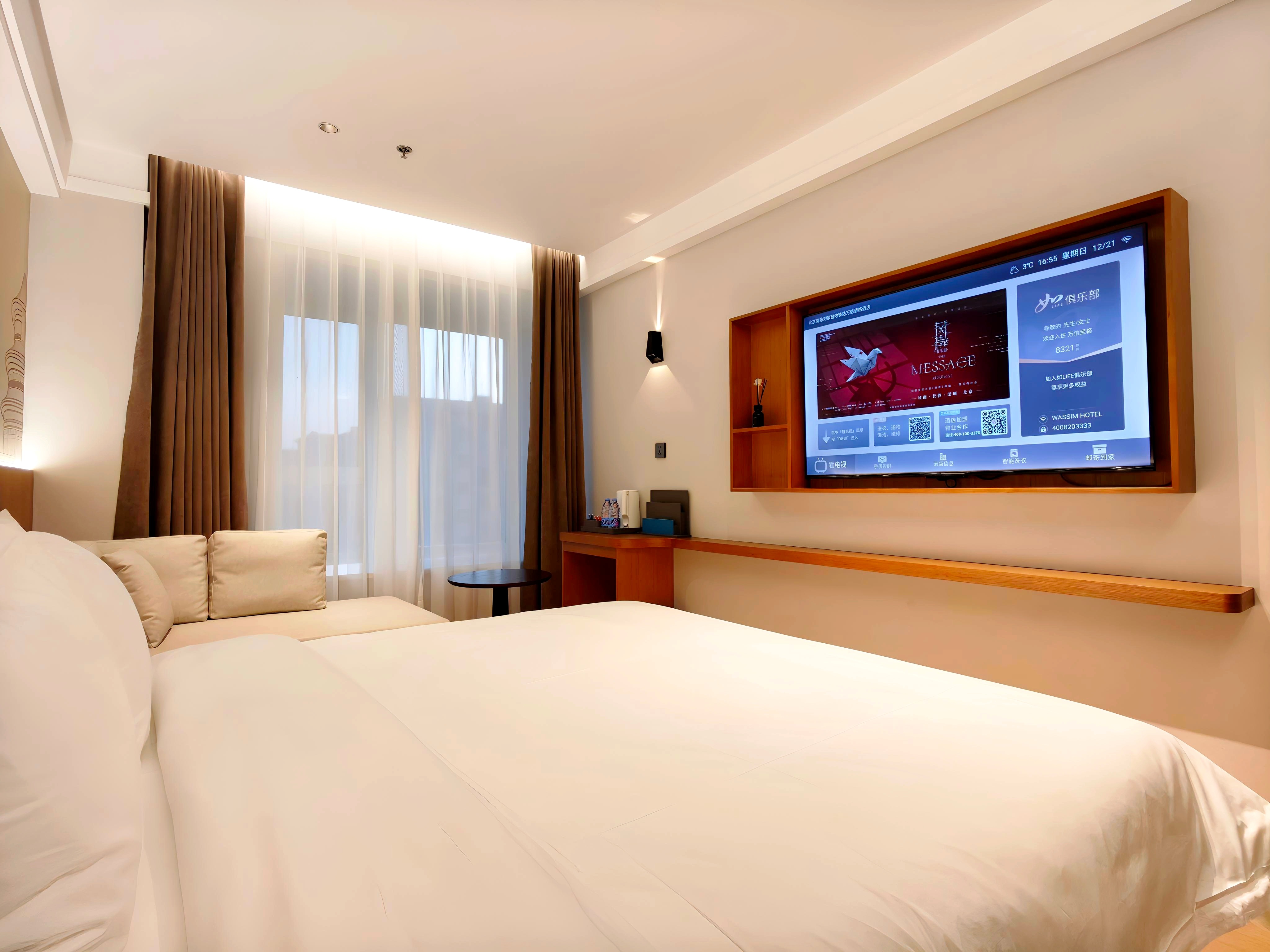 ASSIM 万信至格酒店 北京万信至格酒店(WASSIM HOTELS & RESORTS)"精致格调·唯尔不凡",是首旅如家旗下中高端精选服务品牌; 一夜好眠,从此刻开始,房间设计融合了现代美学与舒适体验,从精选床品到智能温控系统,每一处细节都经过千锤百炼,确保您躺下那一刻,便能感受到家一般的温馨与安心。 万信至格酒店打破传统精品酒店的功能设计思维,将公共空间设计为舒适宽敞的共享化空间,一楼大堂连接行政餐厅,宜浅酌小憩,宜相约闲谈,提供精美咖啡、中国茶、葡萄酒、鸡尾酒、小食及茶点,更可共度下午茶的悠闲时光。精心挑选的食材结合精湛厨艺,同时可通过落地窗俯瞰新老北京的历史与繁华。24小时全天候健身中心,入住贵宾可畅享更为便捷的尊崇服务。引入时下流行的休闲元素,舒缓压力。以及来自各地的小艺术品,客房精选家具及装修材料均使用环保材料,智能灯控系统,智控随心调节,国际品牌卫浴。客房新风室内净化全覆盖。