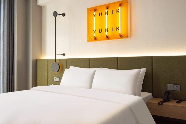 YUNIK酒店(沈阳中街地铁站大悦城店)是首旅如家集团旗下拥有年轻生活态度的中高端品牌,超越网吧的高质量电竞客房为新生代青年打造多元化社交空间和居住体验。酒店位于沈阳市大东区小东路7号大悦E魔方,地处中国第一条商业步行街—中街;南邻世界文化遗产沈阳故宫博物馆、张学良帅府、金融博物馆、太清宫、小南天主教堂等。周边商圈云集,吃、喝、玩、乐、一应俱全。酒店藏身于中街大悦城E馆内、临近吾悦广场、新玛特商场、盾安新一城、恒隆广场、沈阳春天等各大购物中心;被中街冰点店、老边饺子、马家烧麦、头条胡同、李连贵熏肉大饼、中华老字号宝发园名菜馆(四绝菜)等美食环绕,以及网红打卡地“小河沿早市”和“彩电塔夜市”。周边休闲娱乐有电玩城、剧本推理游戏俱乐部、密室逃脱等;距刘老根大舞台2公里。交通便利:酒店距沈阳北站约15分钟车程,距桃仙国际机场约40分钟车程。附近公交线路20余条,四通八达,通往沈阳各个区域;周边医疗机构:沈阳市骨科医院、辽宁省肿瘤医院、解放区北部战区空军总院等距酒店2公里内。