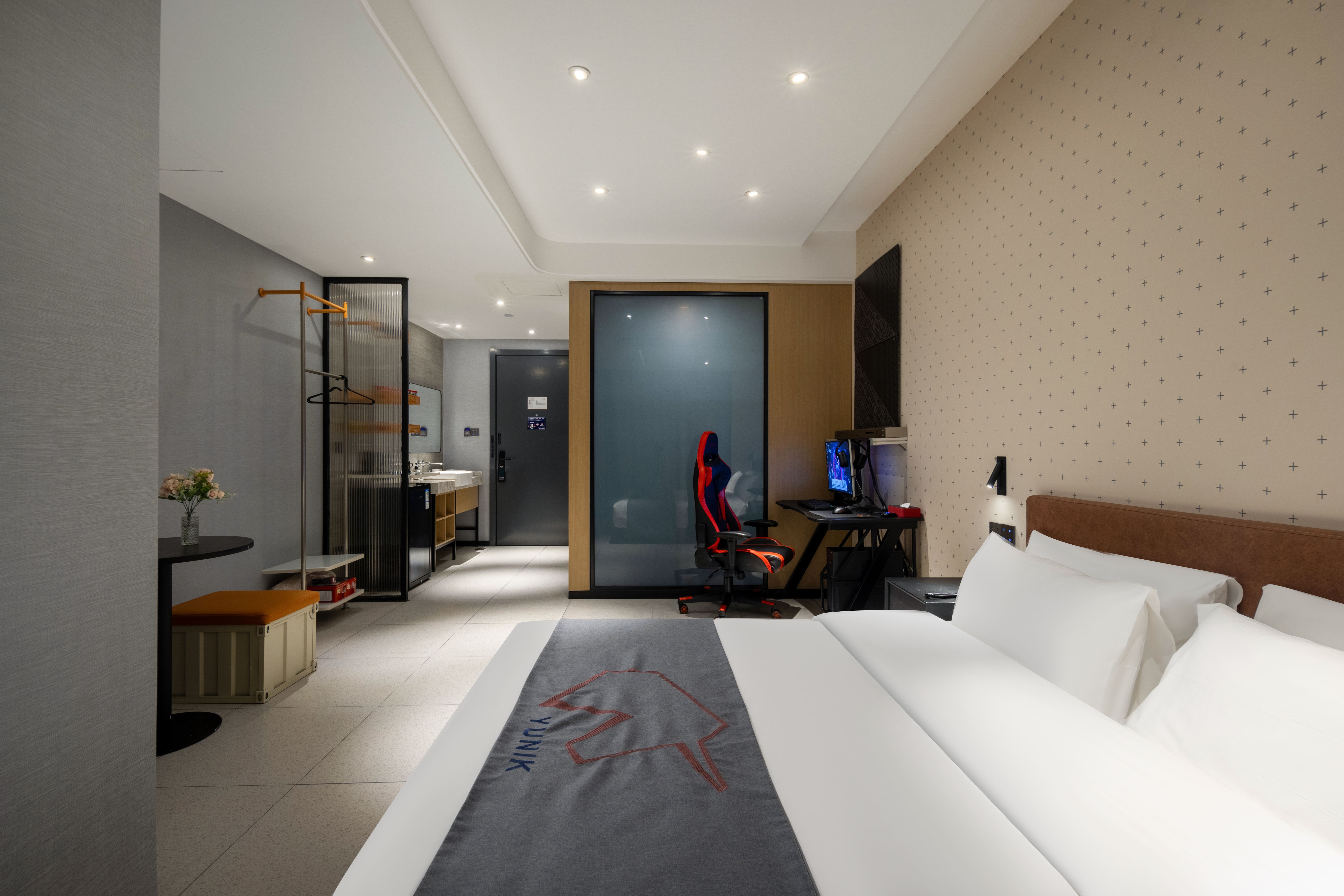 YUNIK杭州国际会展中心店是首旅如家旗下的新潮品牌,位于杭州市拱墅区花园岗街310号,属于杭州汽车北站、国际会展中心商圈,附近有万达广场、乐堤港、城市银泰、大悦城等众多时尚购物中心、齐聚了各种名品小吃。是一家时尚潮玩的设计酒店,霓虹灯光、涂鸦、镜面,随处都是打卡瞬间,超级出片;大厅融合酒吧、咖啡吧,咖啡、鸡尾酒、饮品都可点,超大空间可以桌游可以观影;可举办民谣小剧场,电竞比赛、节日轰趴;是拱墅区最具特色的酒店。更有智能机器人送货,自助洗衣房。酒店自带网红餐厅可以满足客户早、中、晚餐及夜宵服务。酒店拥有多种风格房型可以选择:配置高端电竞设施设备的电竞双床房、电竞高级大床房,电竞三人间、电竞开黑四人房,沉浸体验开黑时光。 酒店周边就是京杭大运河、亚运公园等驰名中外的景点。 距离杭州西湖景区9公里,开车20分钟。距离钱江新城(亚运会主会场、奥体中心)17公里,开车35分钟;距离西溪湿地12公里,开车20分钟。距离杭州茶文化小镇 龙坞茶镇17公里,驾车30分钟左右。 更有国际会展中心坐落在酒店背面。