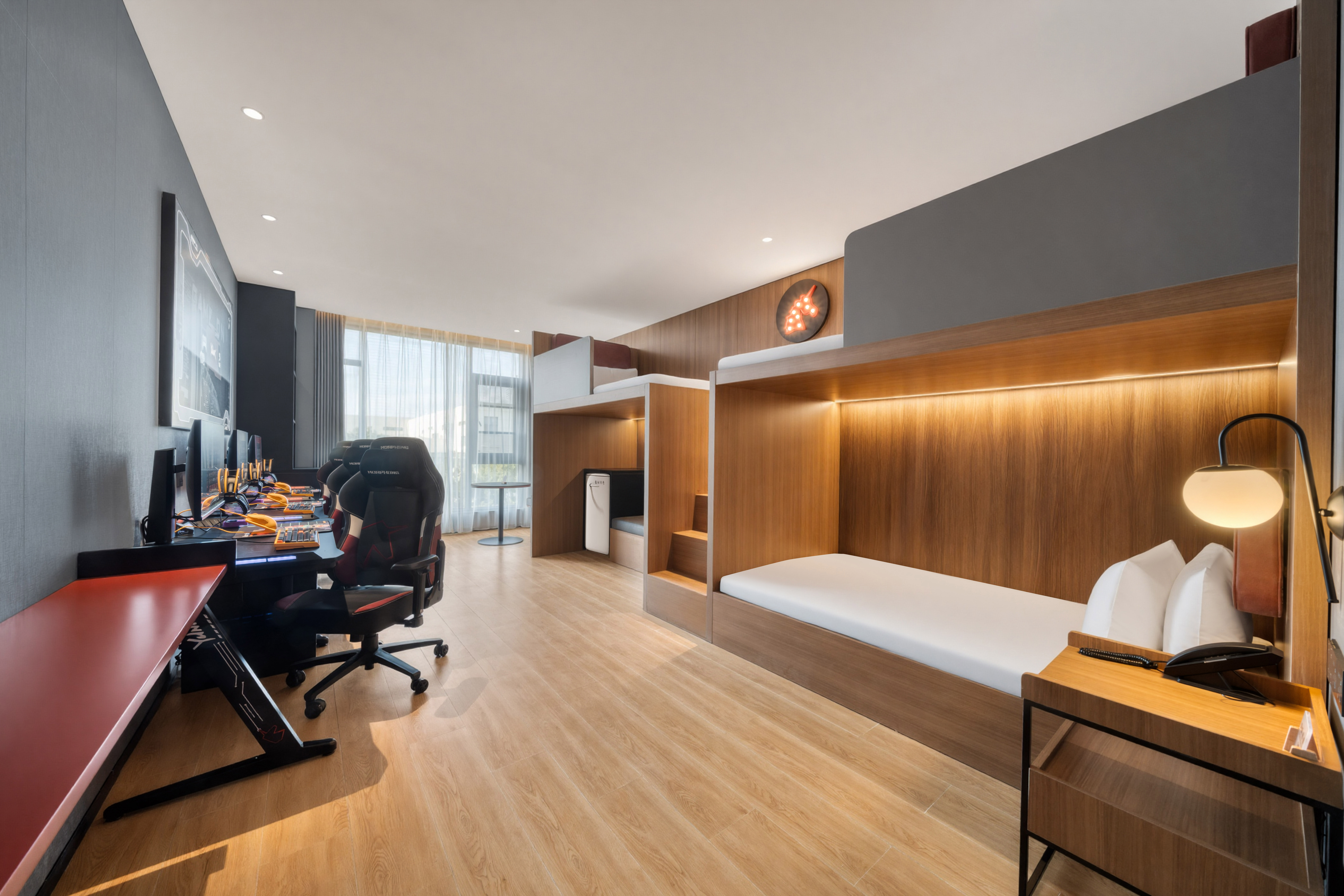 酒店坐落于奉化三横工业区核心生活区汇明路108号,步行可达亚德客等周边工厂,是企业商务出行与电竞爱好者休闲开黑的优选。酒店配备高配电竞设施与千兆专线网络,多款开黑房型满足不同需求;含中西式营养早餐,24小时海尔洗衣服务贴心随行,更有新能源汽车充电桩、自助入住、无等待退房、机器人送物等智能便捷服务,让入住全程省心。酒店紧邻沈海高速奉化出口,交通便捷,8分钟车程可达奉化万达广场,30分钟至溪口风景区、雪窦山等景点,周边商超、餐饮、医院等生活配套齐全,轻松兼顾商务办公与休闲娱乐。